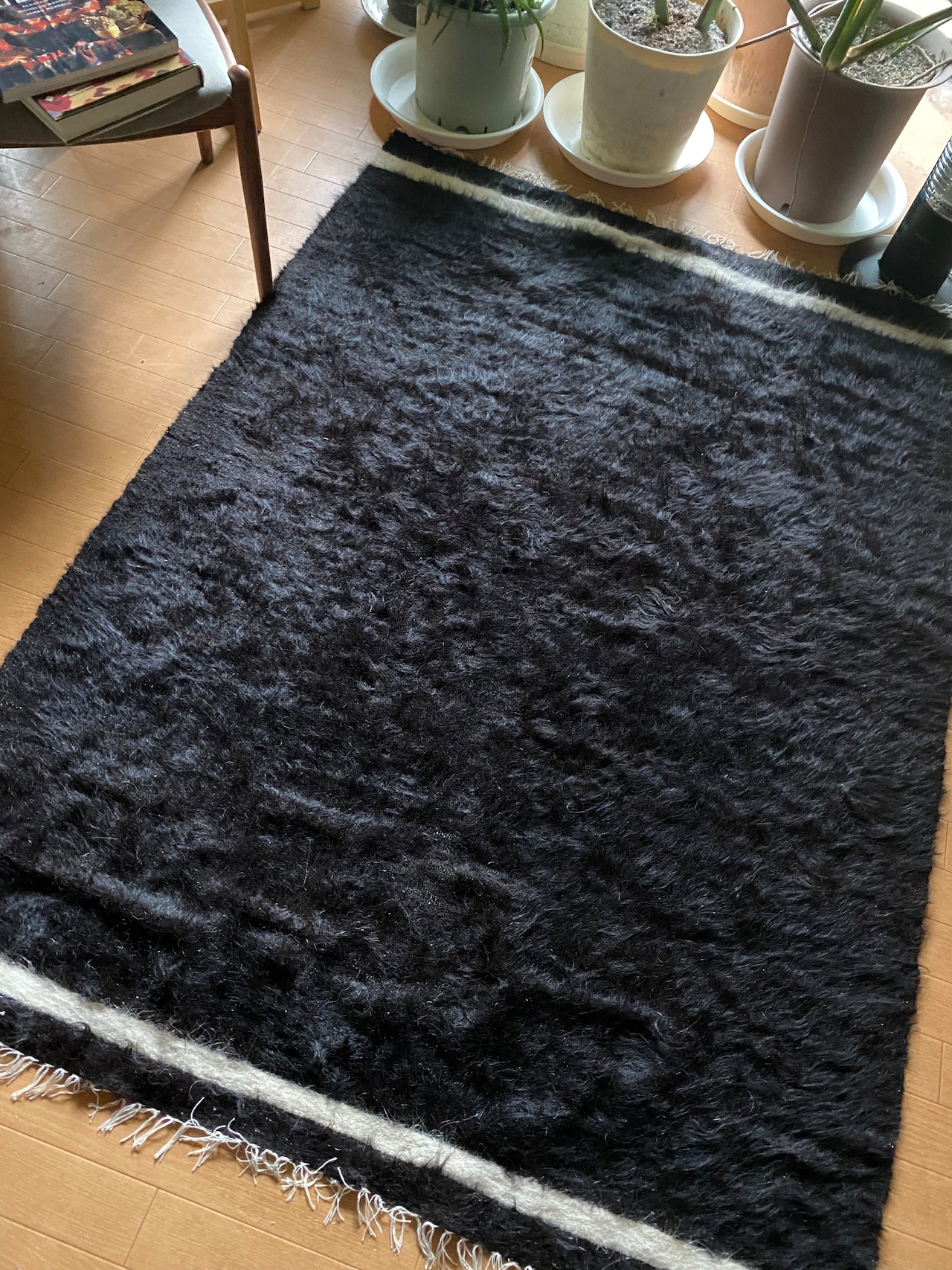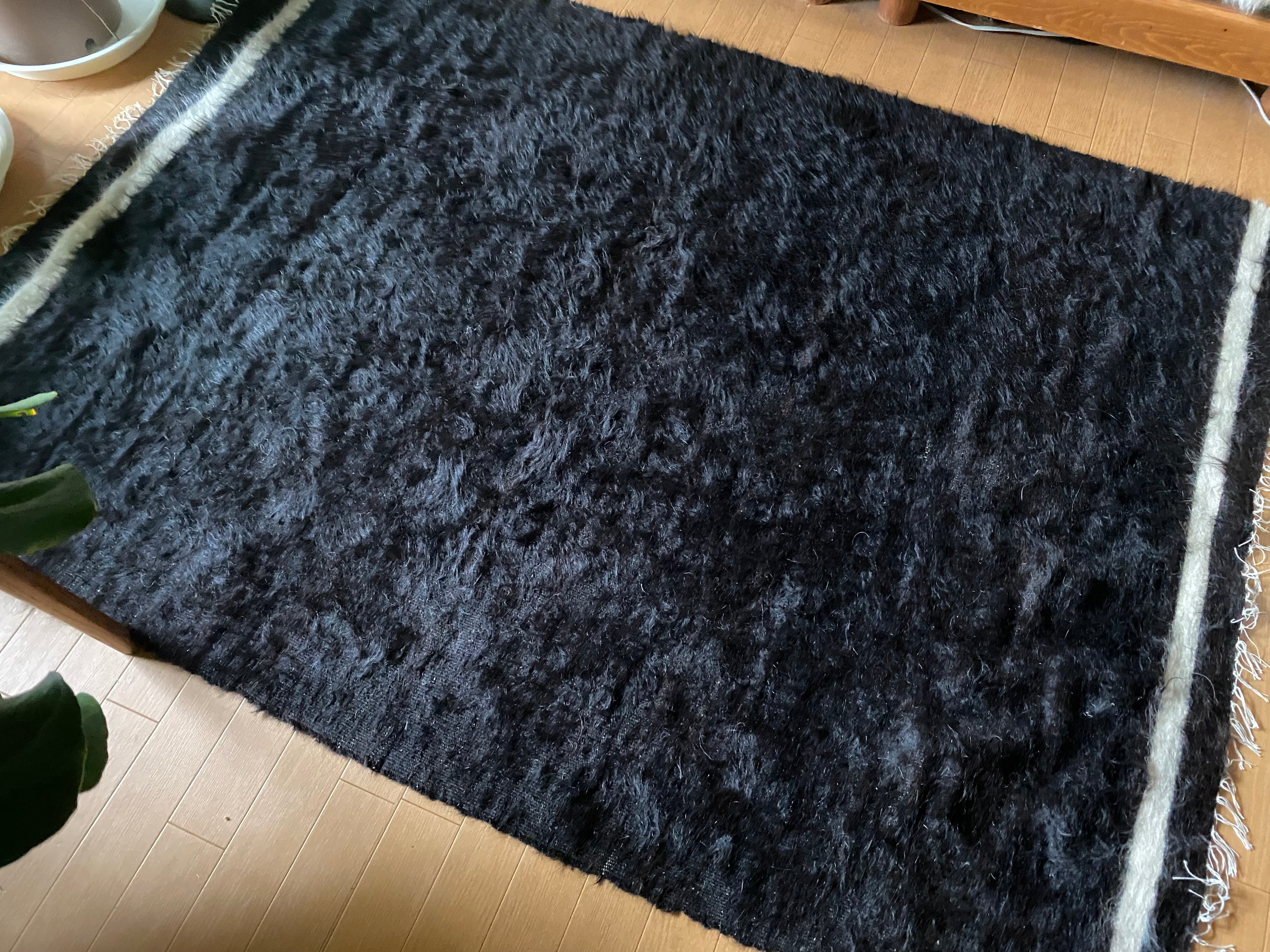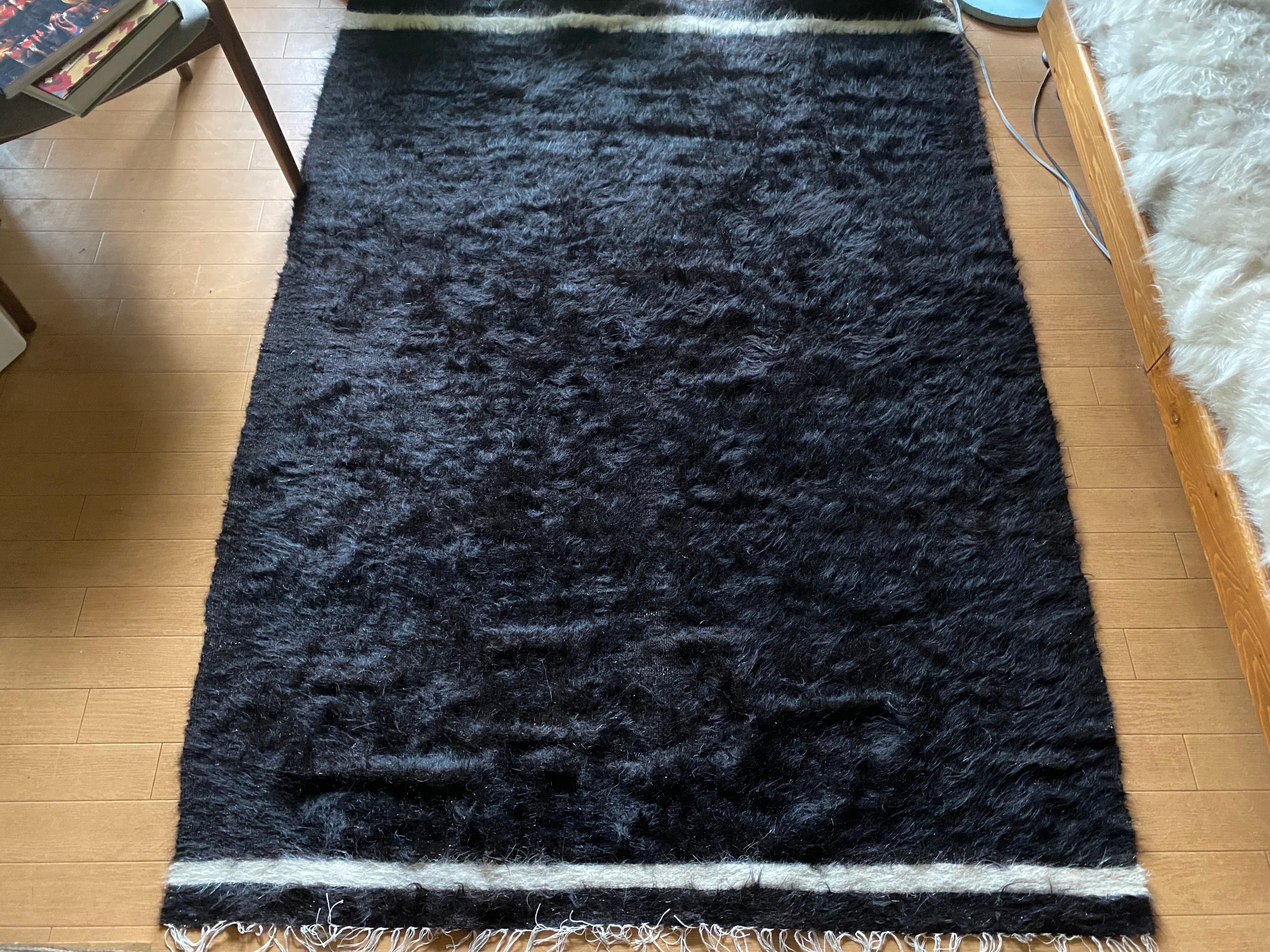 今の新しいものにくらべ、アンティークのバッタ二エと同じくらい密度が濃く、毛の艶がさらに良い山羊の毛で織られています。 未使用ですが、 ご覧いただけますように毛足も長めでつやつや