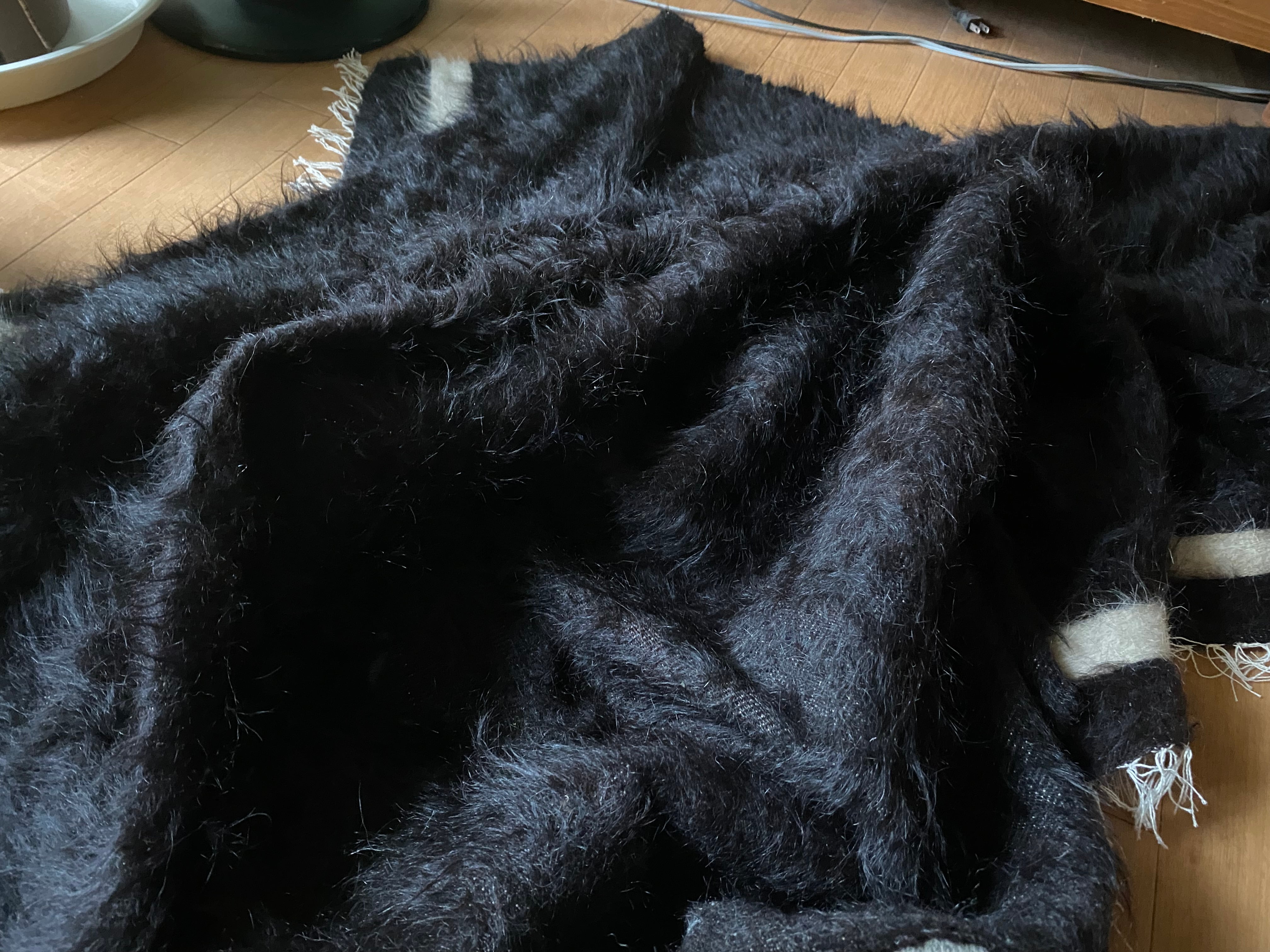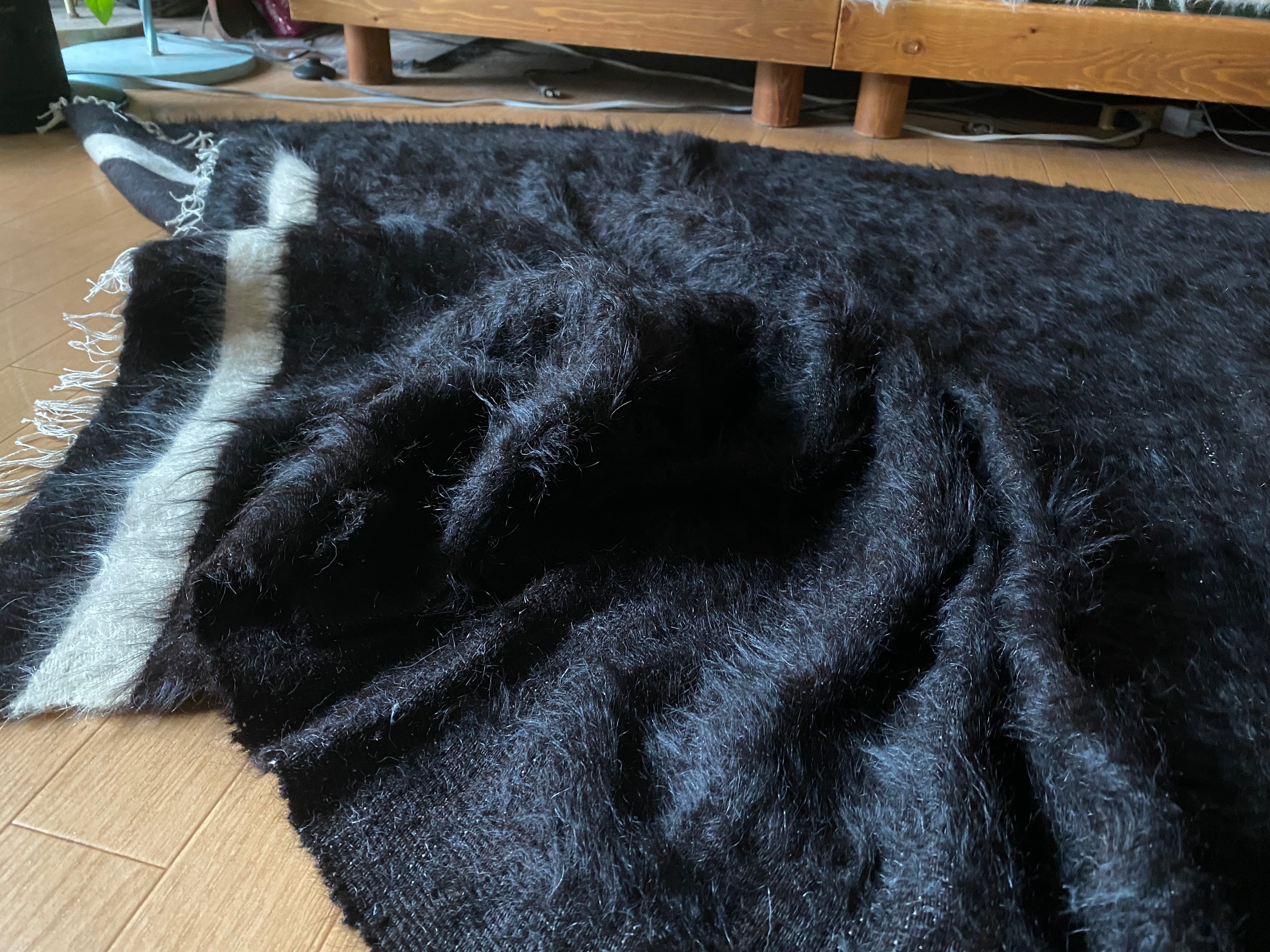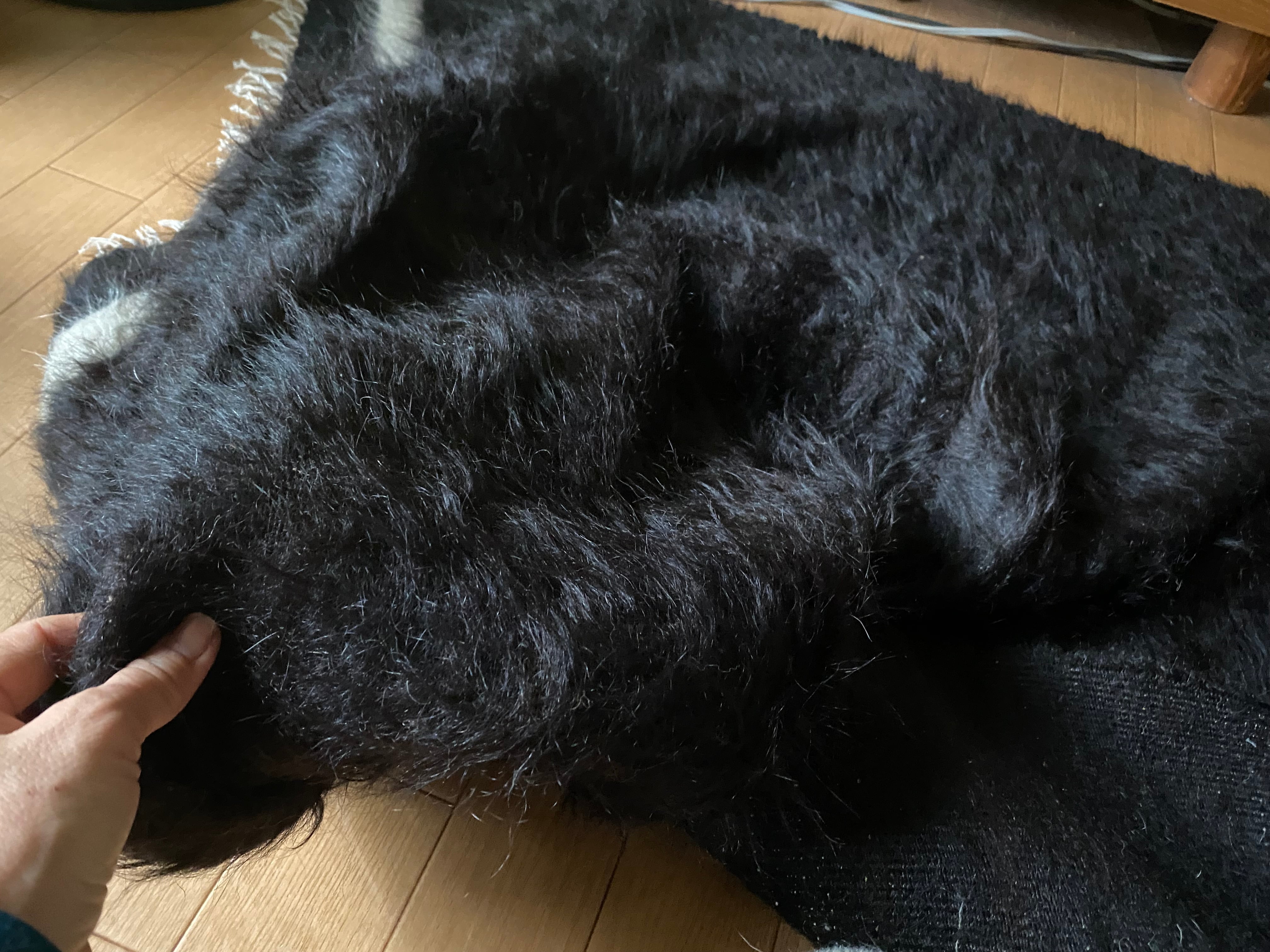 アンゴラヤギのモヘアで織られたほぼ新品未使用ですが、40年ほど織られたもので今織られたものよりさらに密でモヘアの質が大変良いです。新古品です。