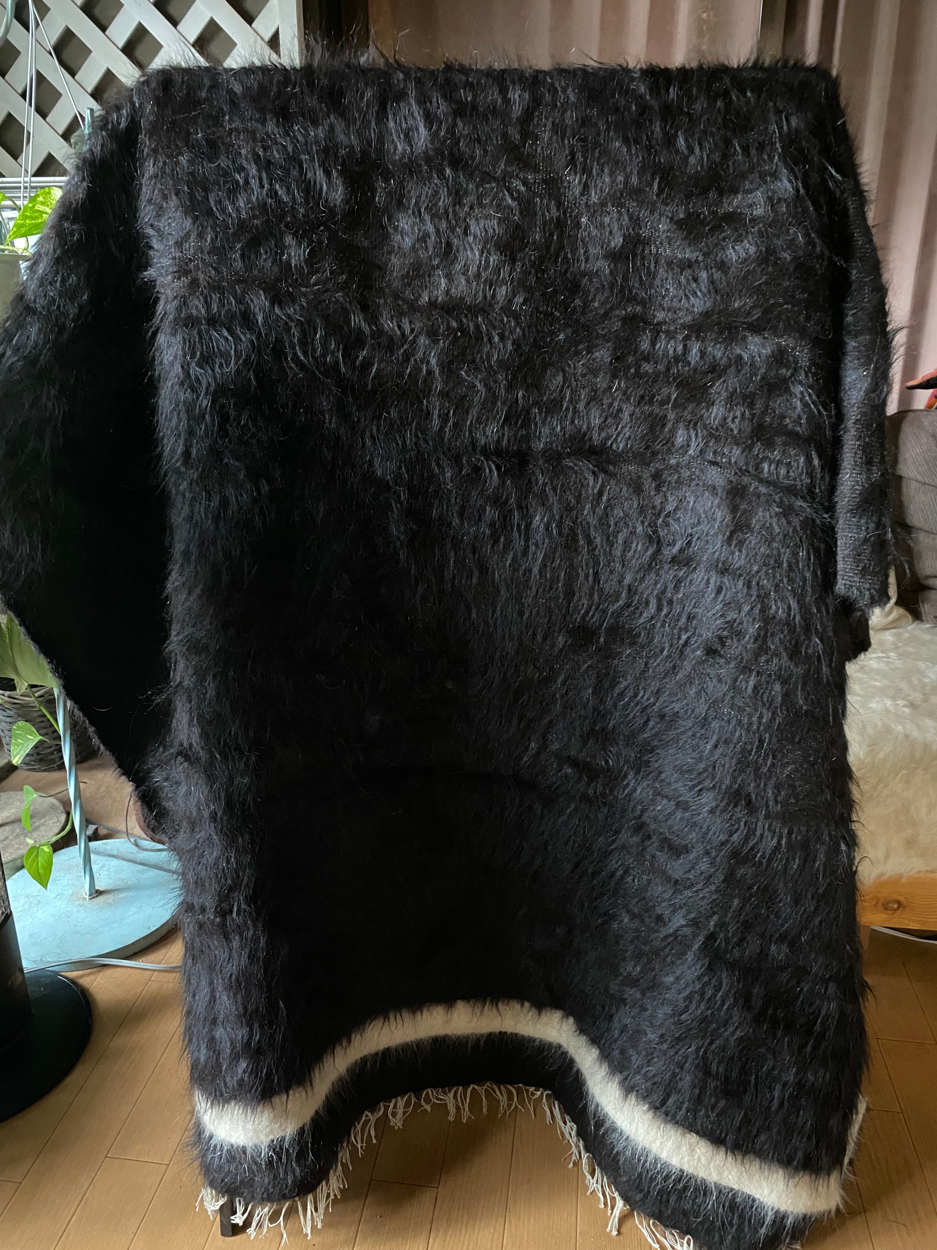 セミアンティーク黒のシイルトバッタニイェ!艶々!アンゴラ山羊のモヘアの中でも特に貴重な黒山羊のモヘア使用!181×130大判ソファカバーやベッドカバーに!四季を通じて色々便利に使える人にも動物にも優しい最高に暖かい逸品!27年来トルコ直輸入当店のみ実現の価格です
