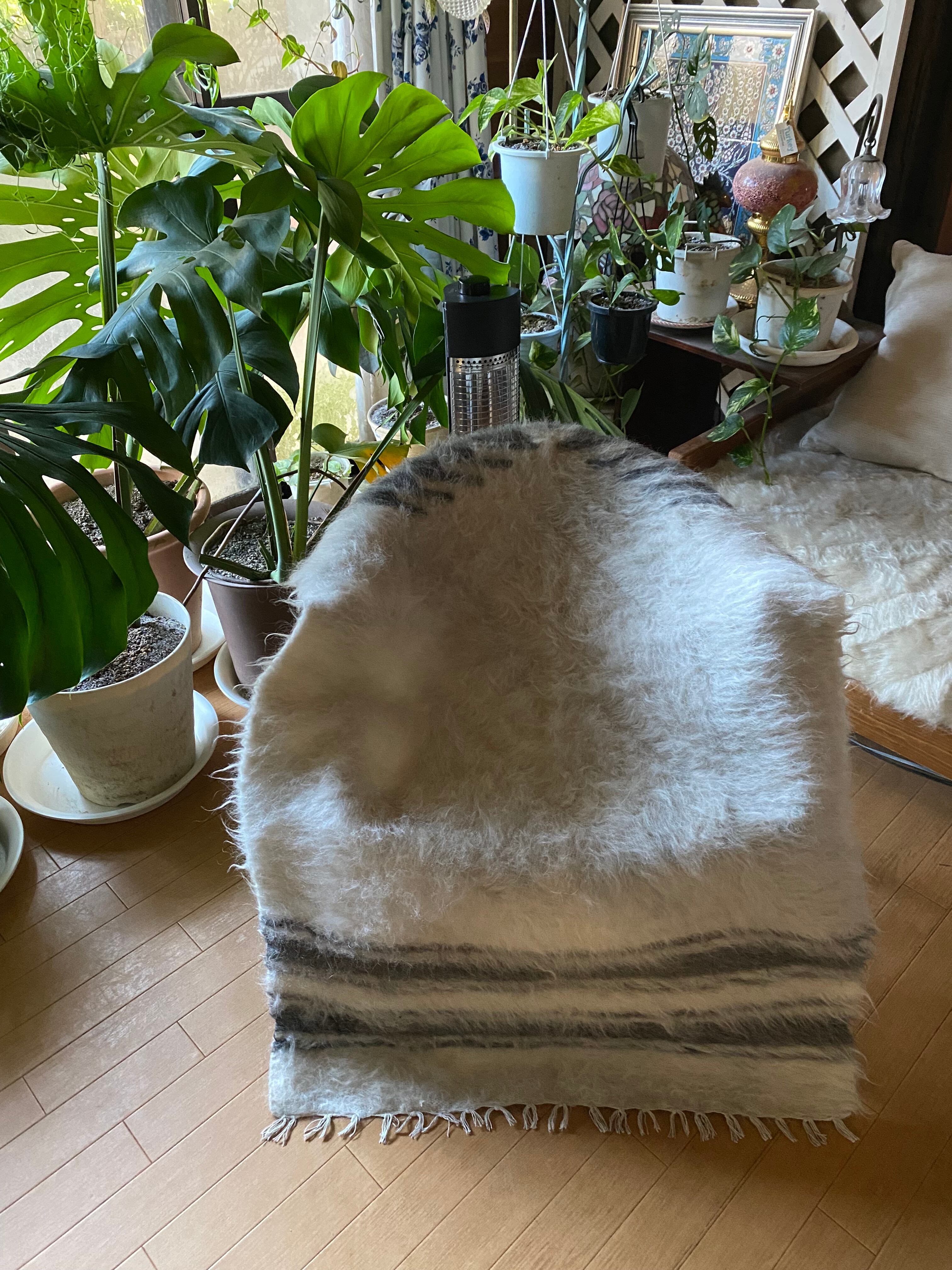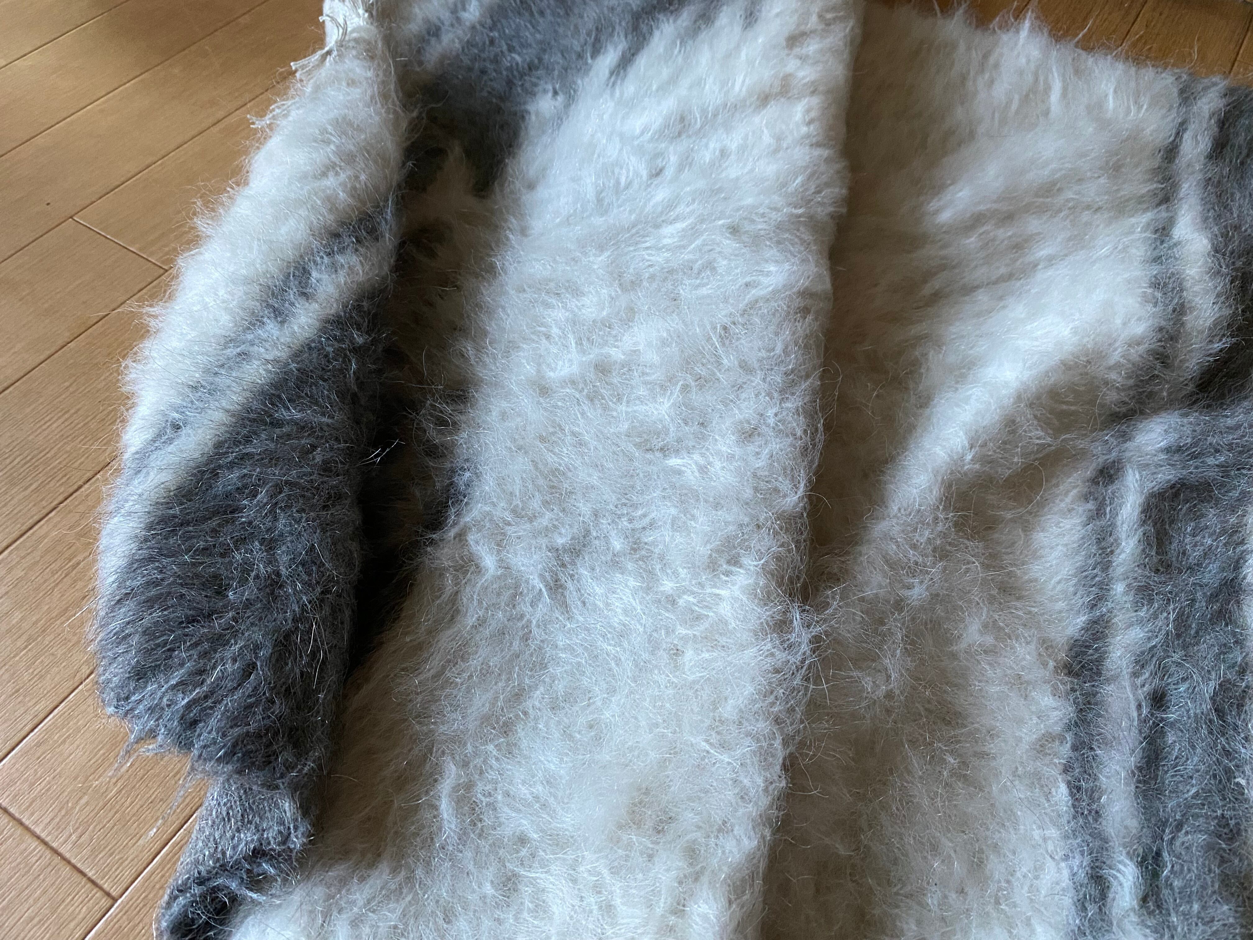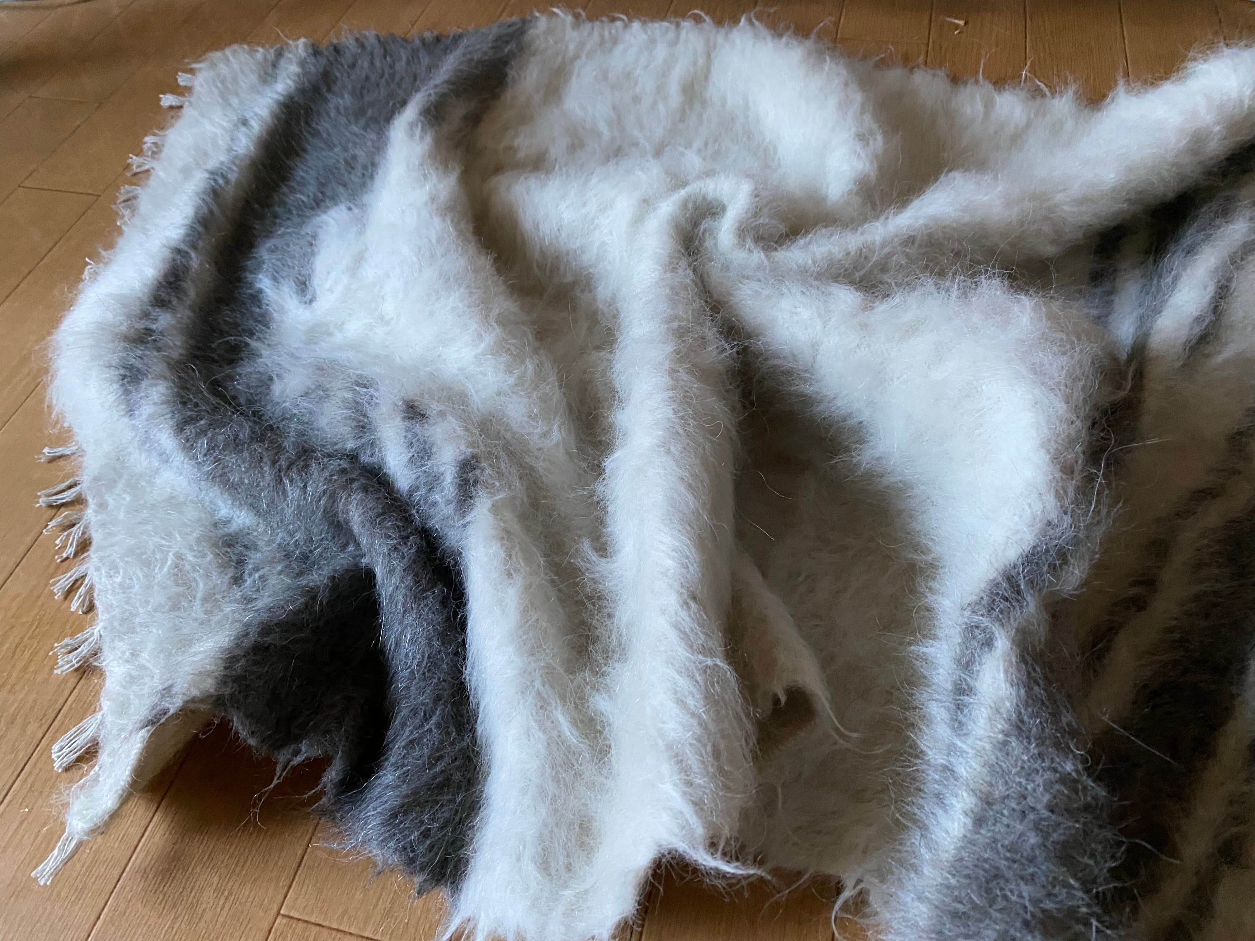 アンゴラヤギのモヘアで織られたほぼ新品未使用ですが、40年ほど織られたもので今織られたものよりさらに密でモヘアの質が大変良いです。新古品です。