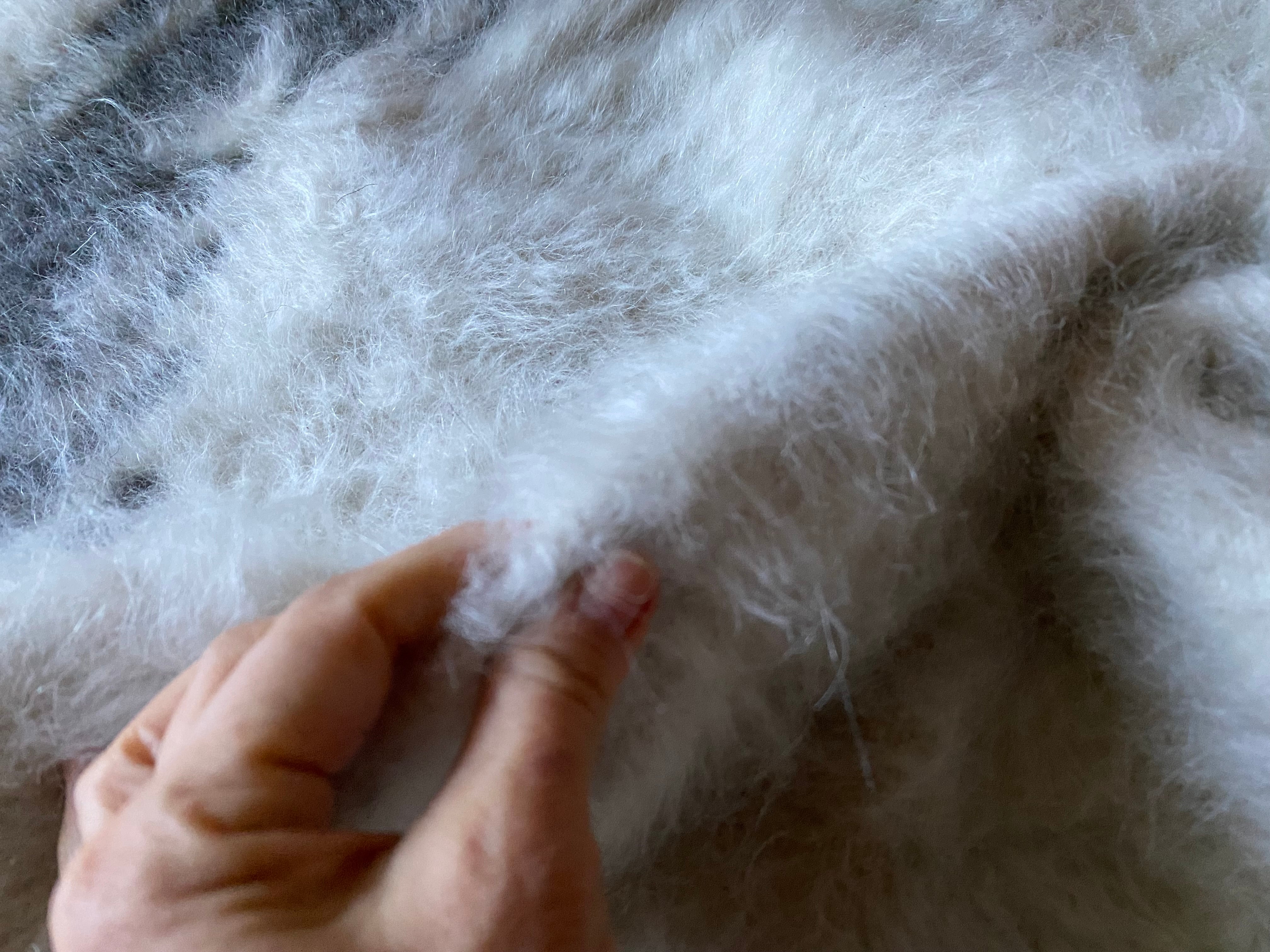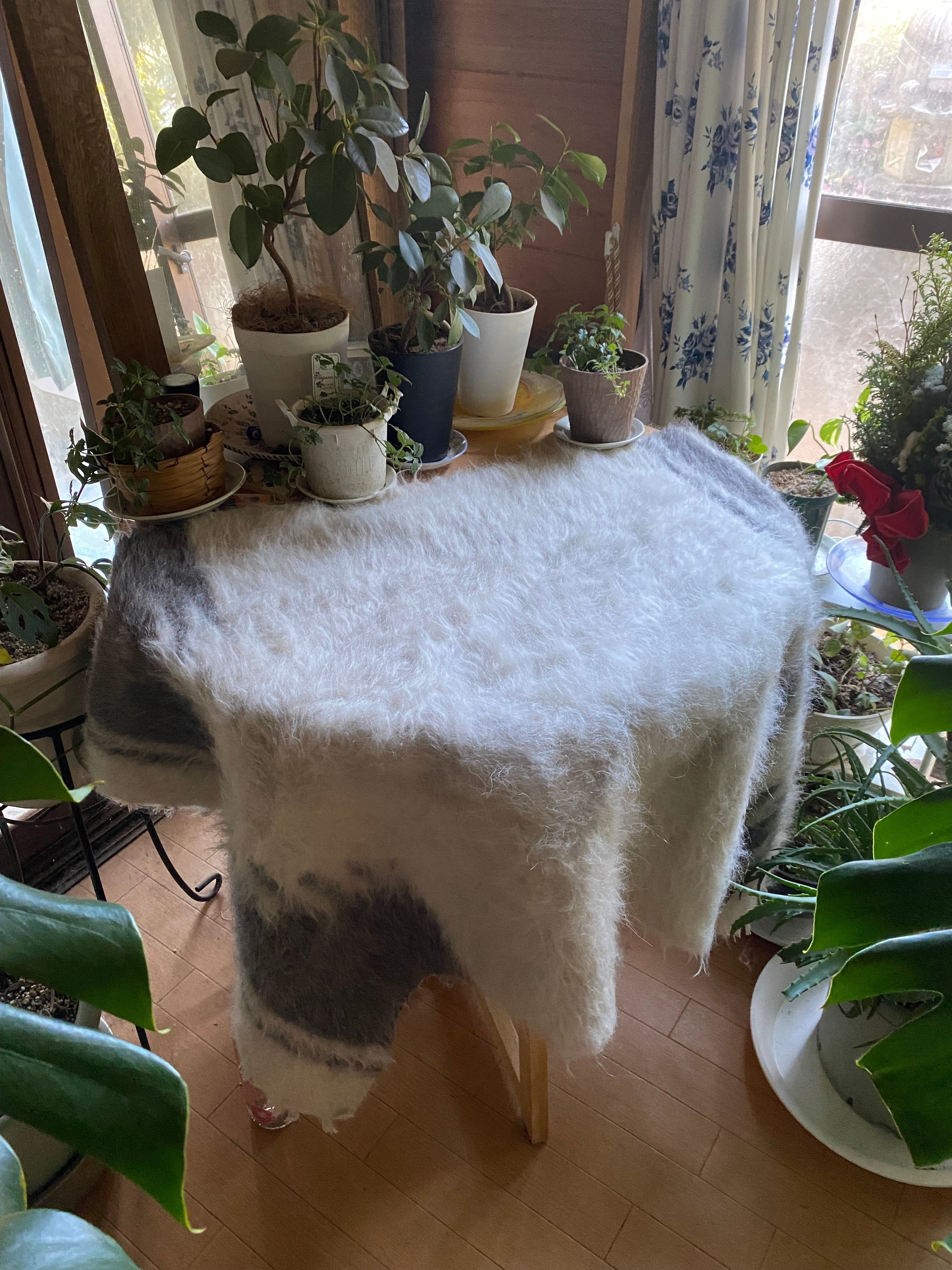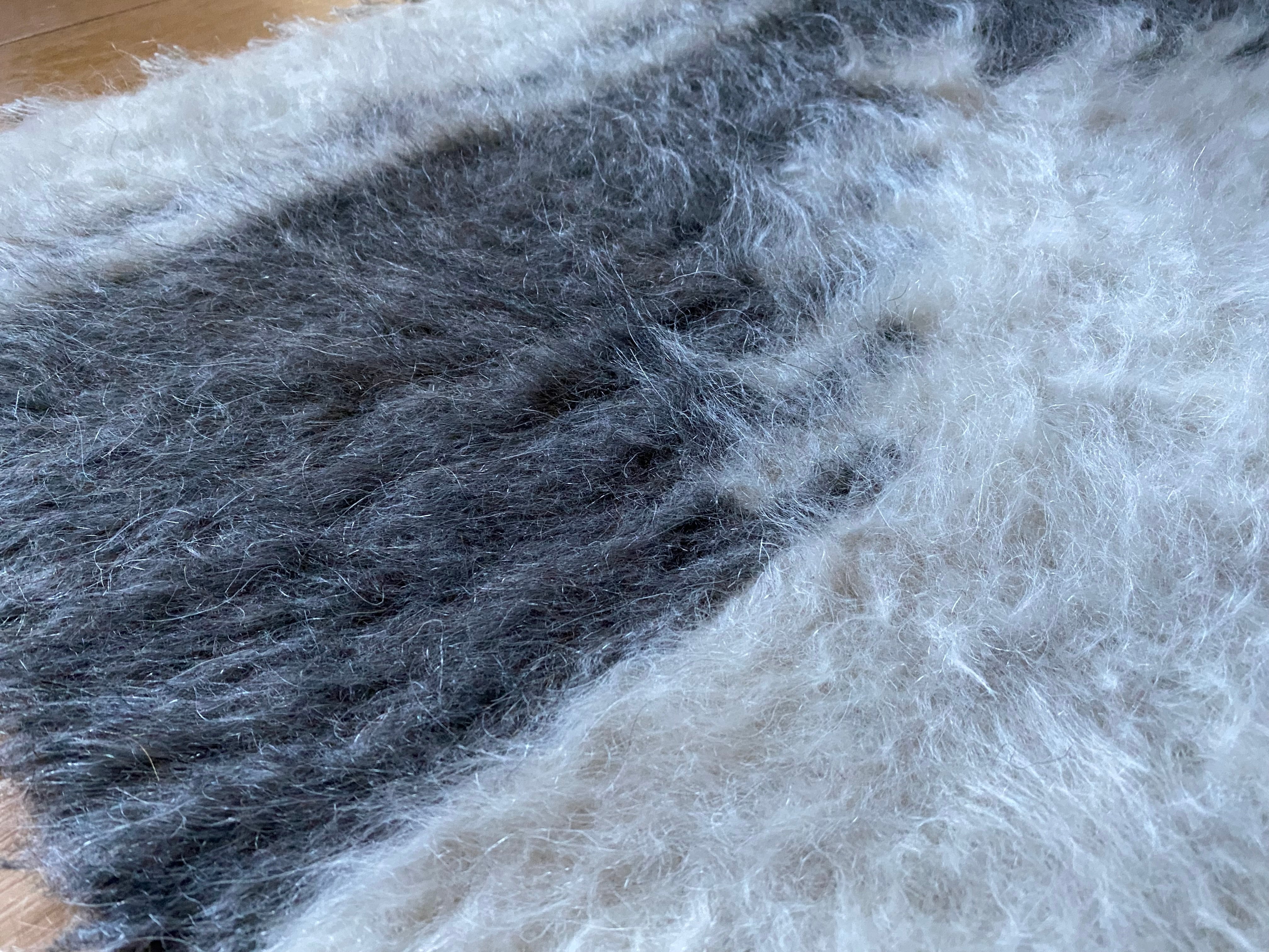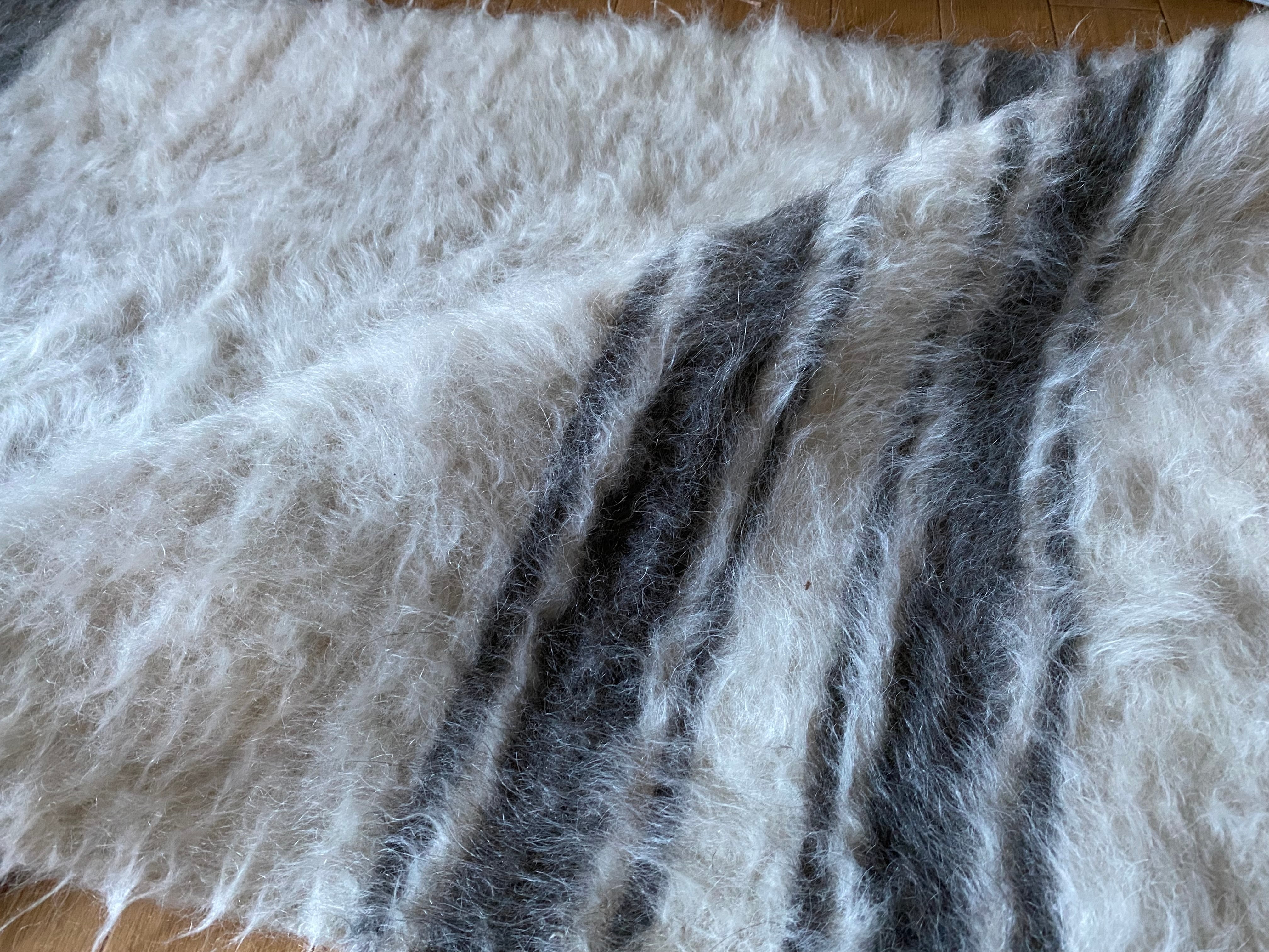 アンゴラヤギのモヘアで織られたほぼ新品未使用ですが、40年ほど織られたもので今織られたものよりさらに密でモヘアの質が大変良いです。新古品です。