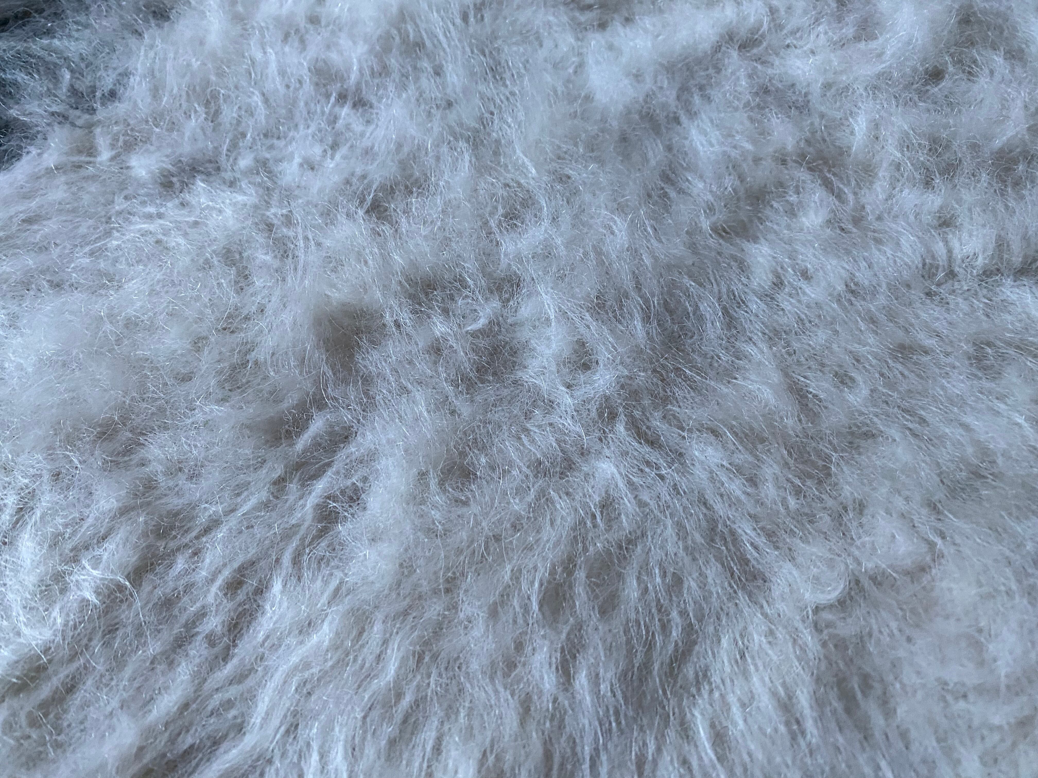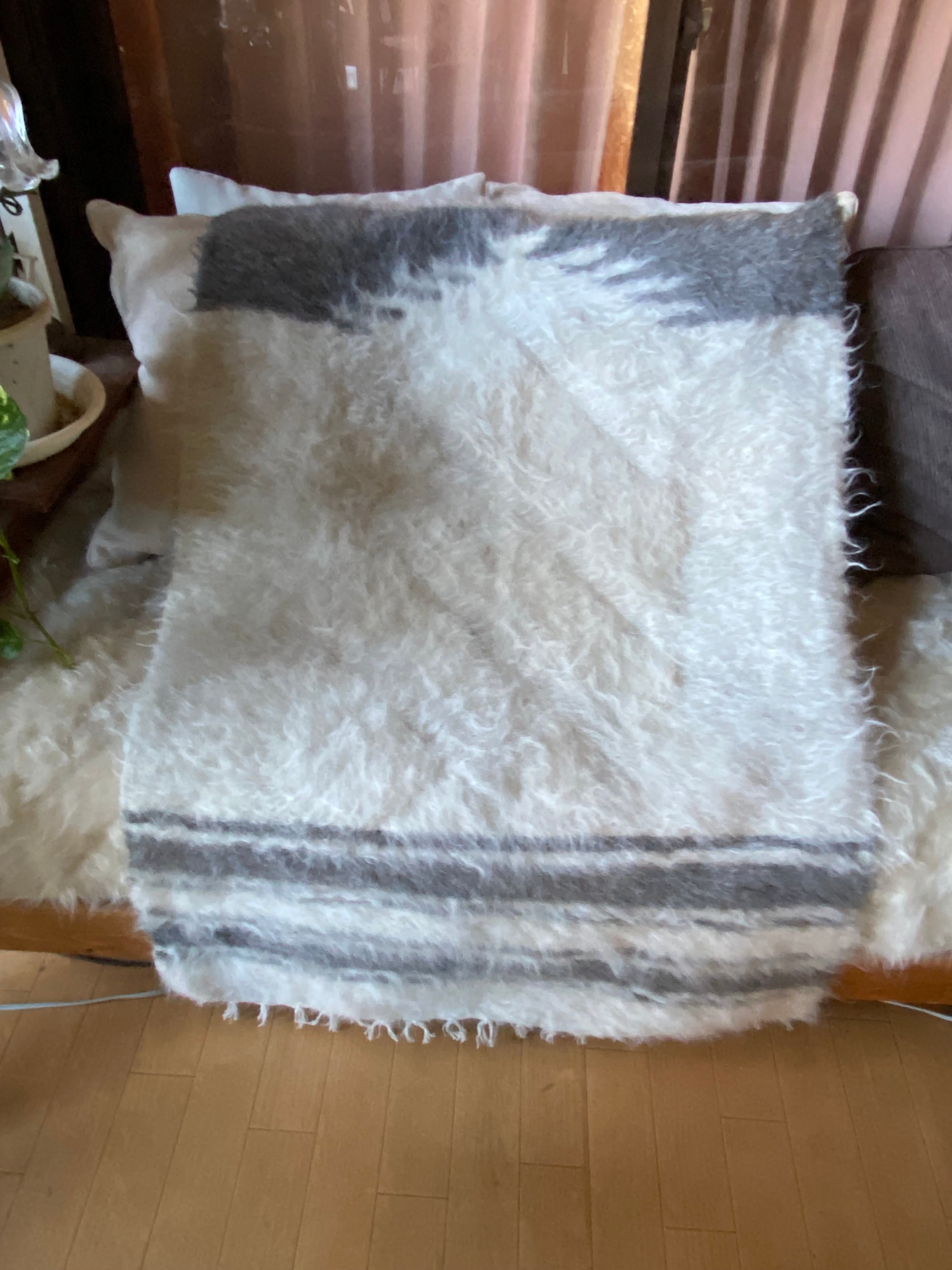 こちら通常の新しいシイルトバッタ二エにくらべ、毛量が多めの素晴らしいアンゴラ山羊100%のシイルトです!