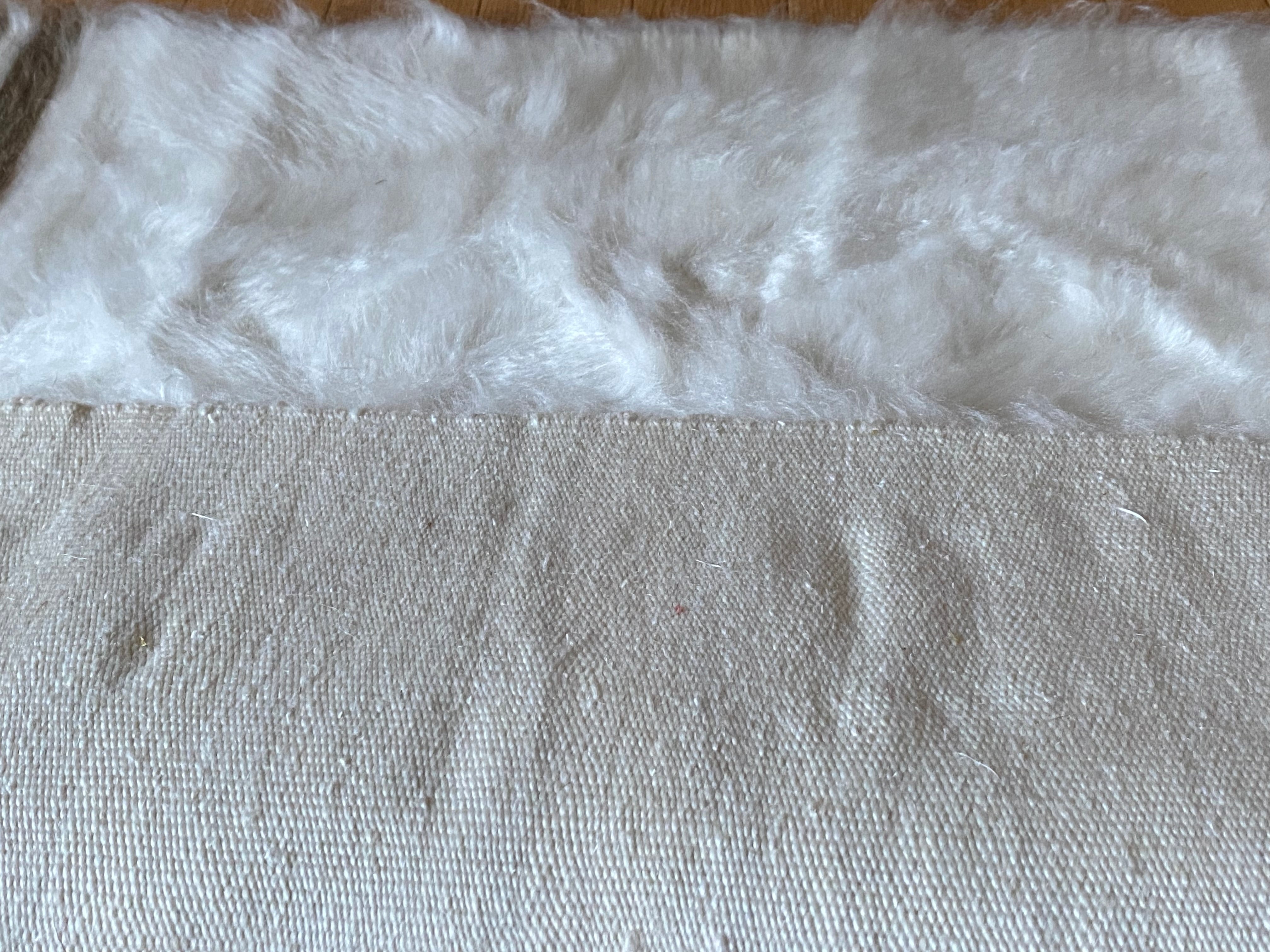 また、毛をけば立てて幾何学模様が入っておりますが、ウールではこのような毛羽立ちの模様はできないそうです。