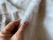 自然のヤギの毛で織られていますので、独特のくるくるとした感じも可愛く、とてもナチュ ラルな感じです。アンゴラ山羊は18世紀の中ごろまでオスマントルコが飼育を独占していたらしいです。 その後改良され、良質のモヘアとして世界的に発展していったそうです。モヘアと言えば、カシミヤと並ぶ素材ですね。山羊の毛ですので、羊より高級で暖かです。