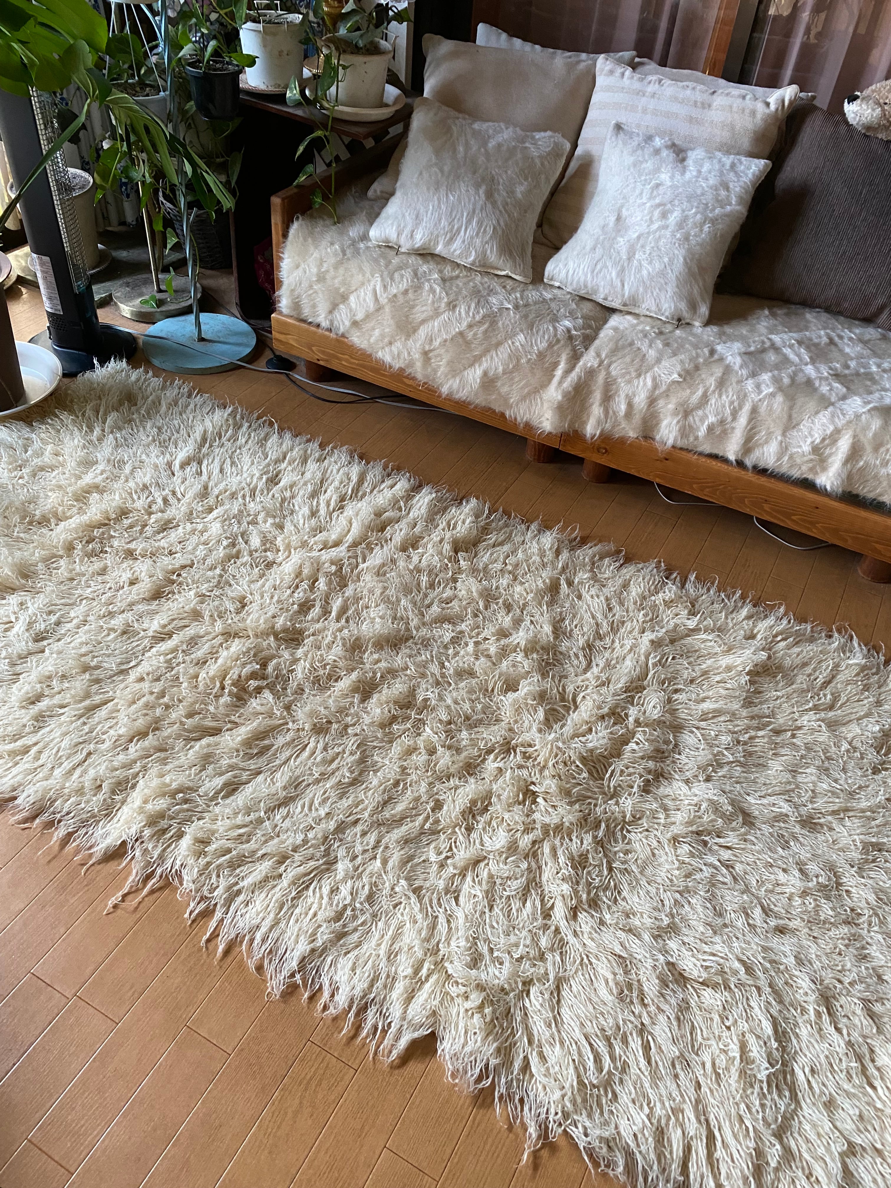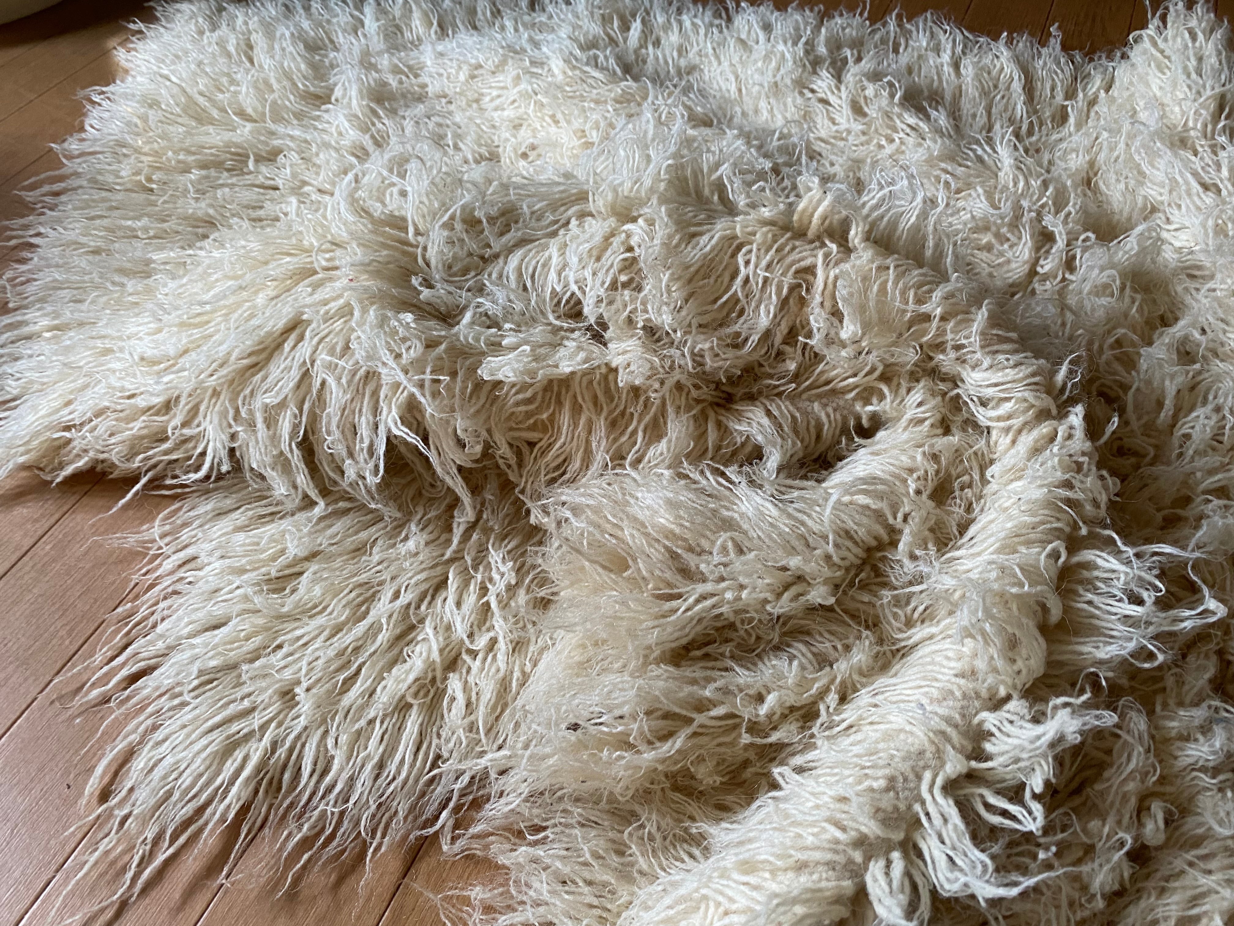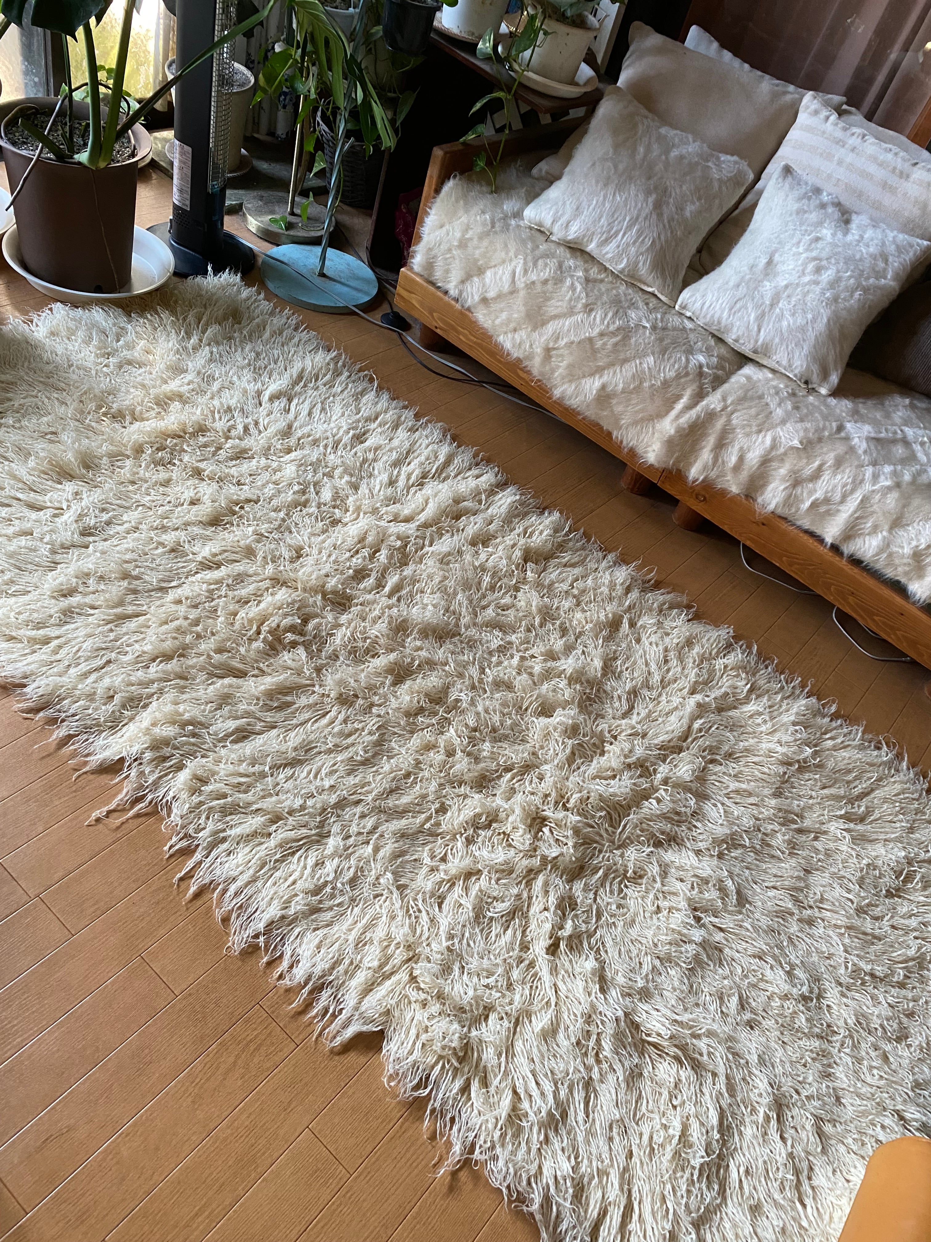 トルコの素晴らしい羊毛のラグTULUをご存知ですか!貴重なコンヤ産びっしり作るのに時間ぎかかった素晴らしい1枚!大判サイズ102×220ソファの前にもジャストサイズ!羊さんを傷つけない手織りムートン!人にも動物にも優しい遊牧民の知恵から生まれた暖かいうっとりのTULU!
