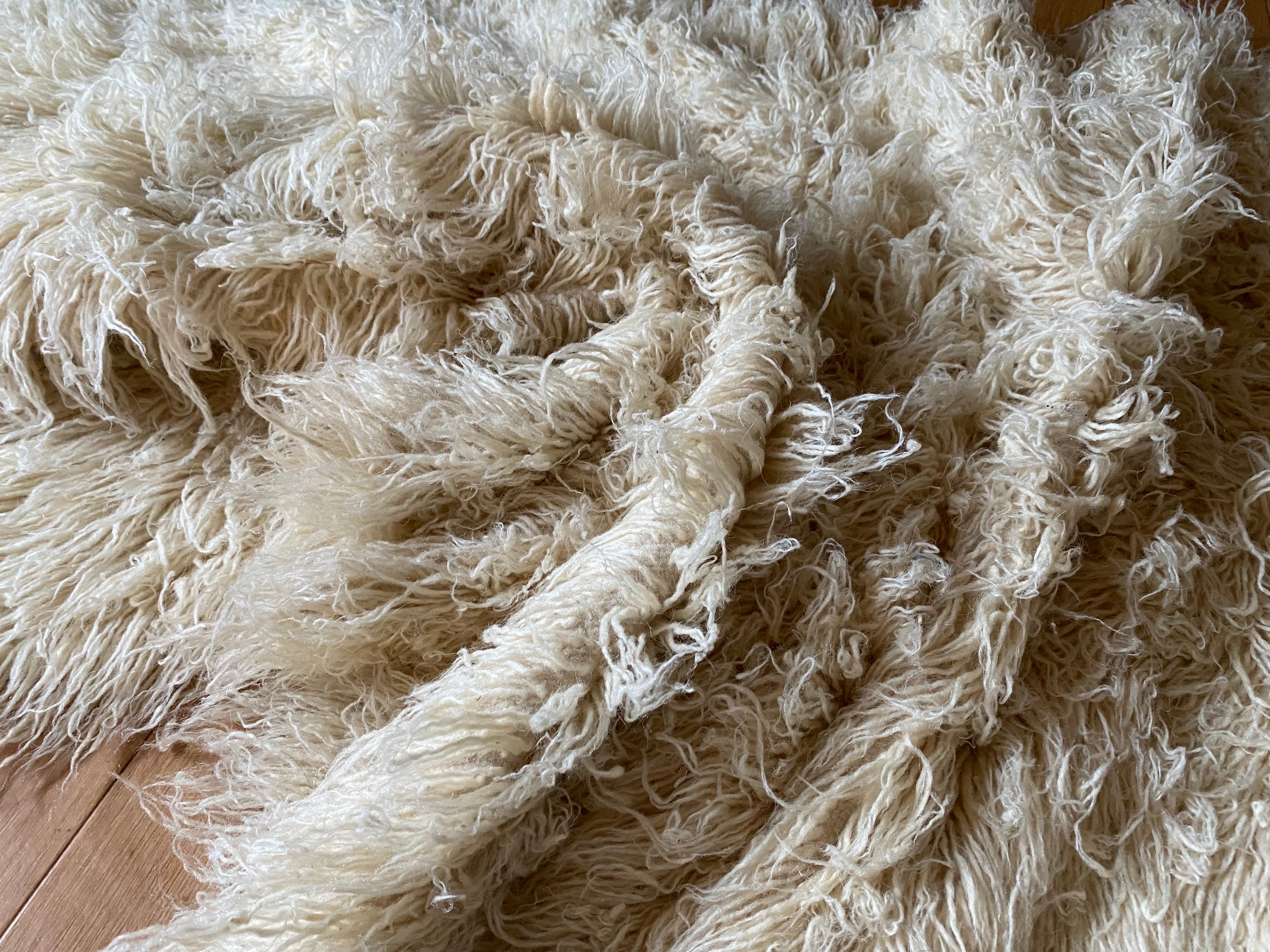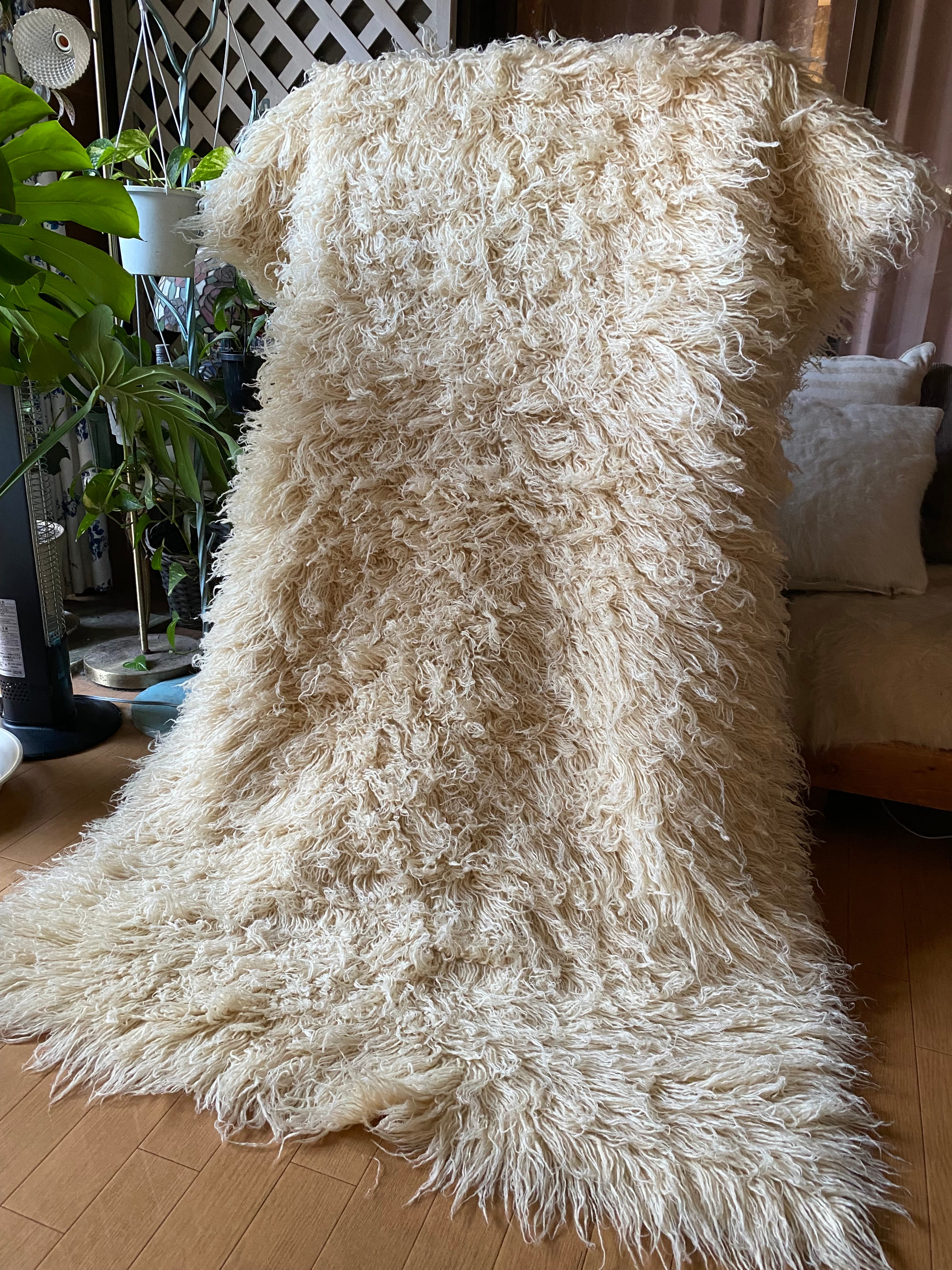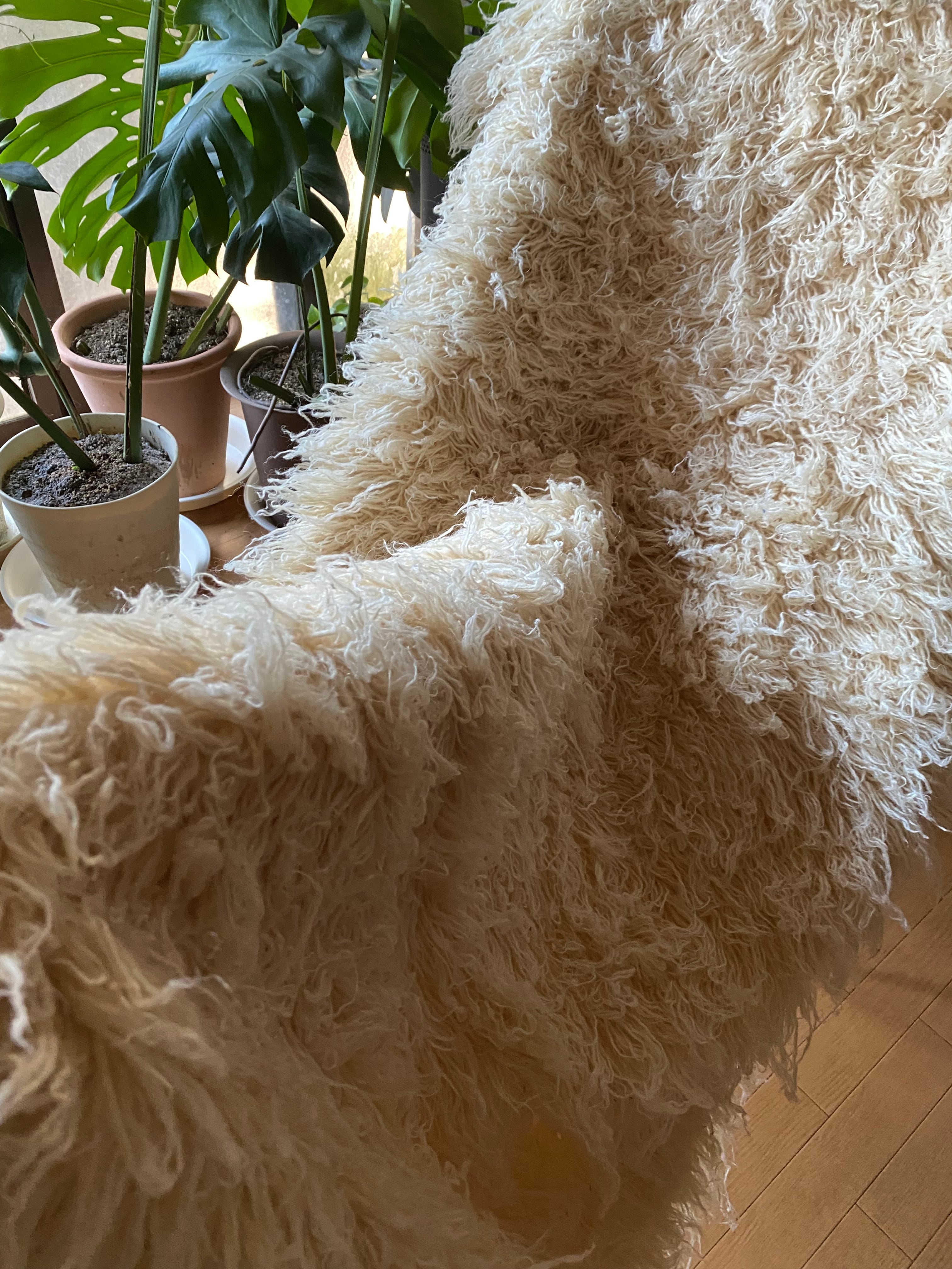 トルコの素晴らしい羊毛のラグTULUをご存知ですか!貴重なコンヤ産びっしり作るのに時間ぎかかった素晴らしい1枚!大判サイズ102×220ソファの前にもジャストサイズ!羊さんを傷つけない手織りムートン!人にも動物にも優しい遊牧民の知恵から生まれた暖かいうっとりのTULU!
