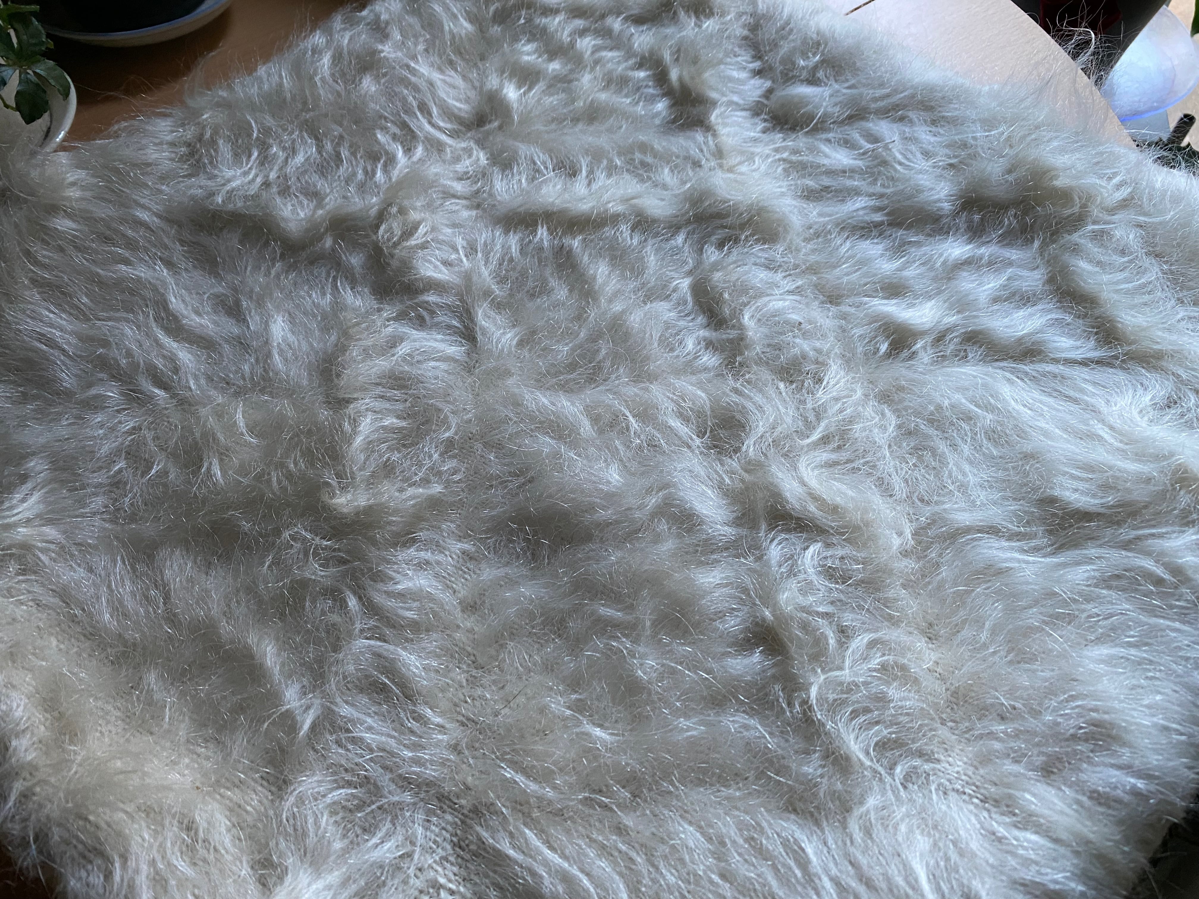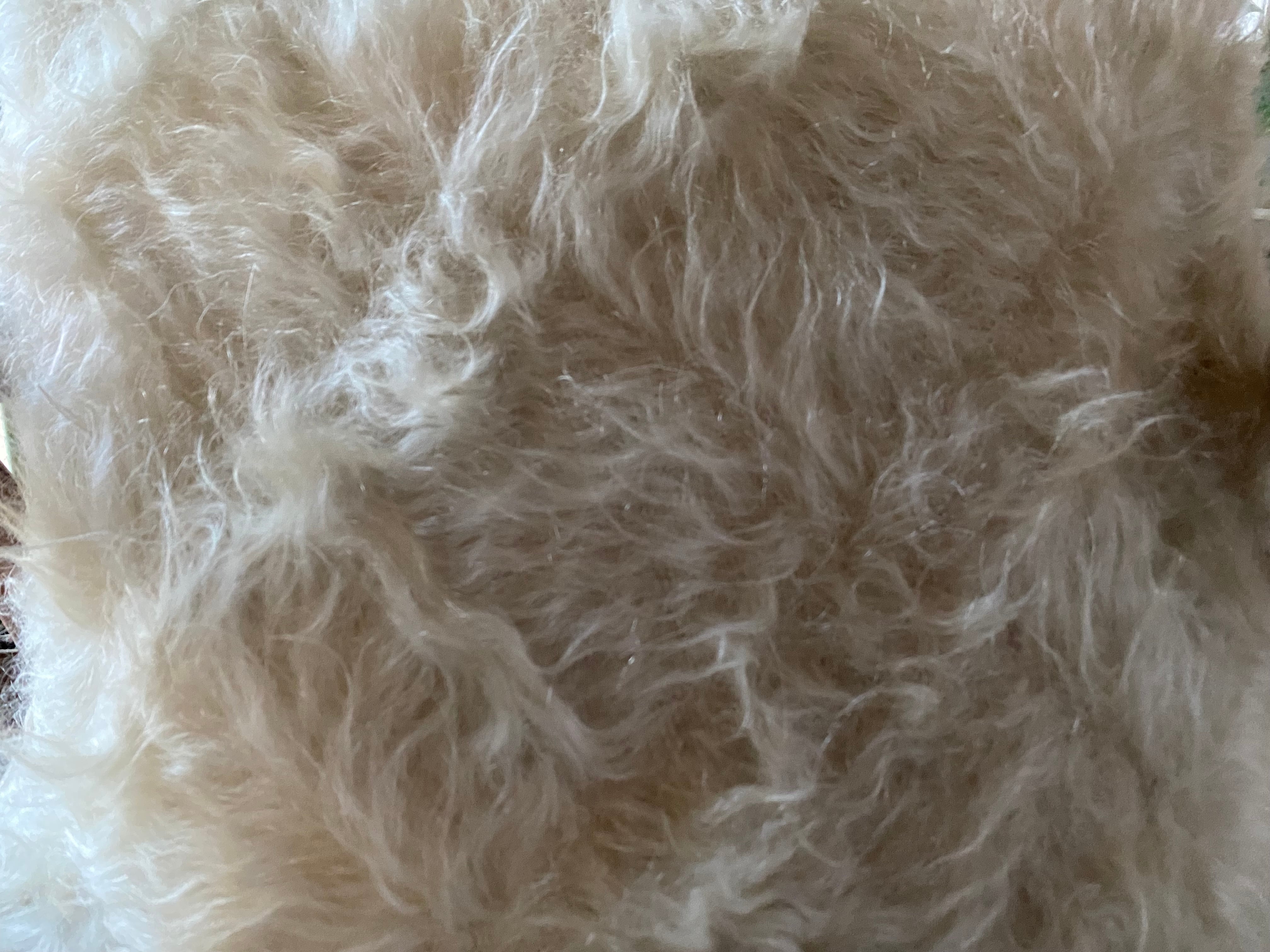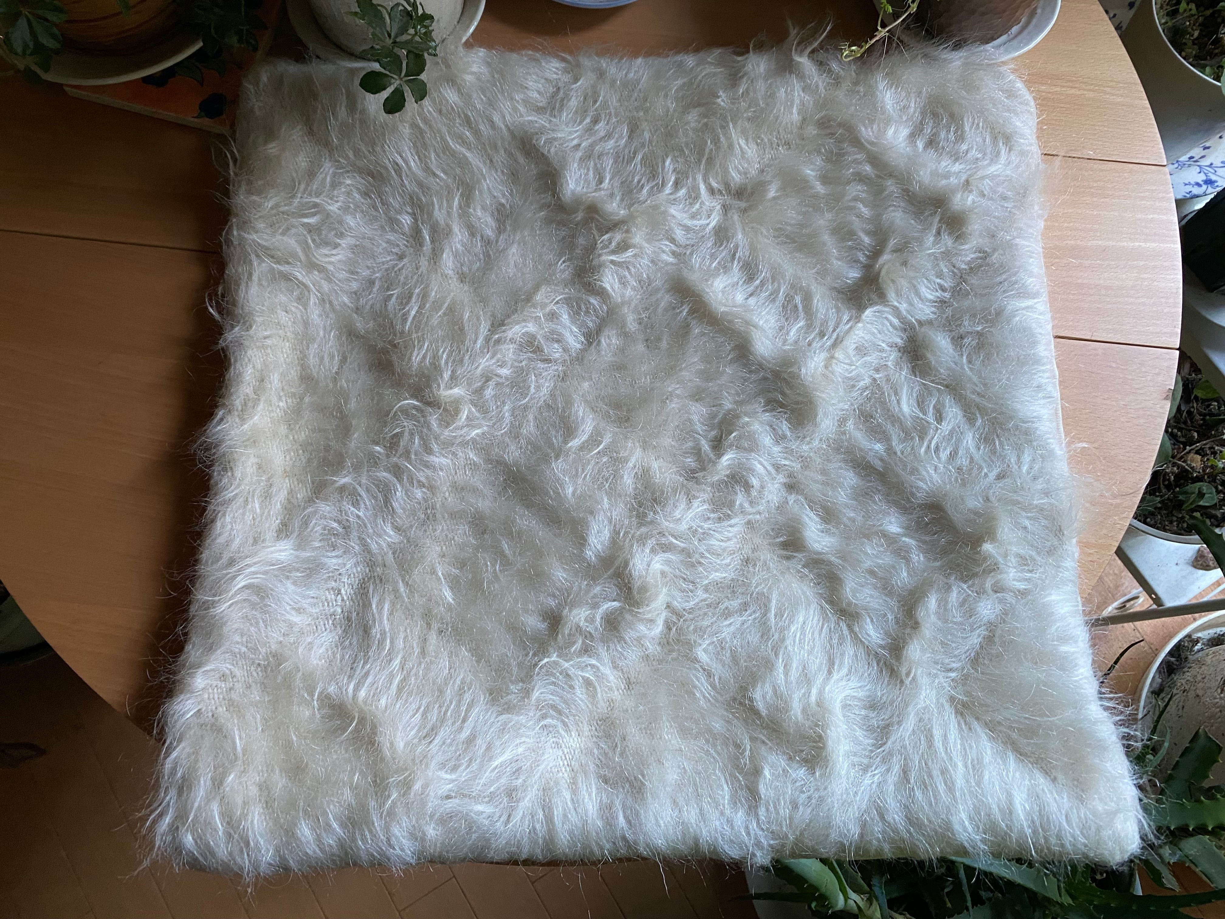 こちら通常の新しいシイルトバッタ二エにくらべ、毛量が多めの素晴らしいアンゴラ山羊100%のシイルトです!
