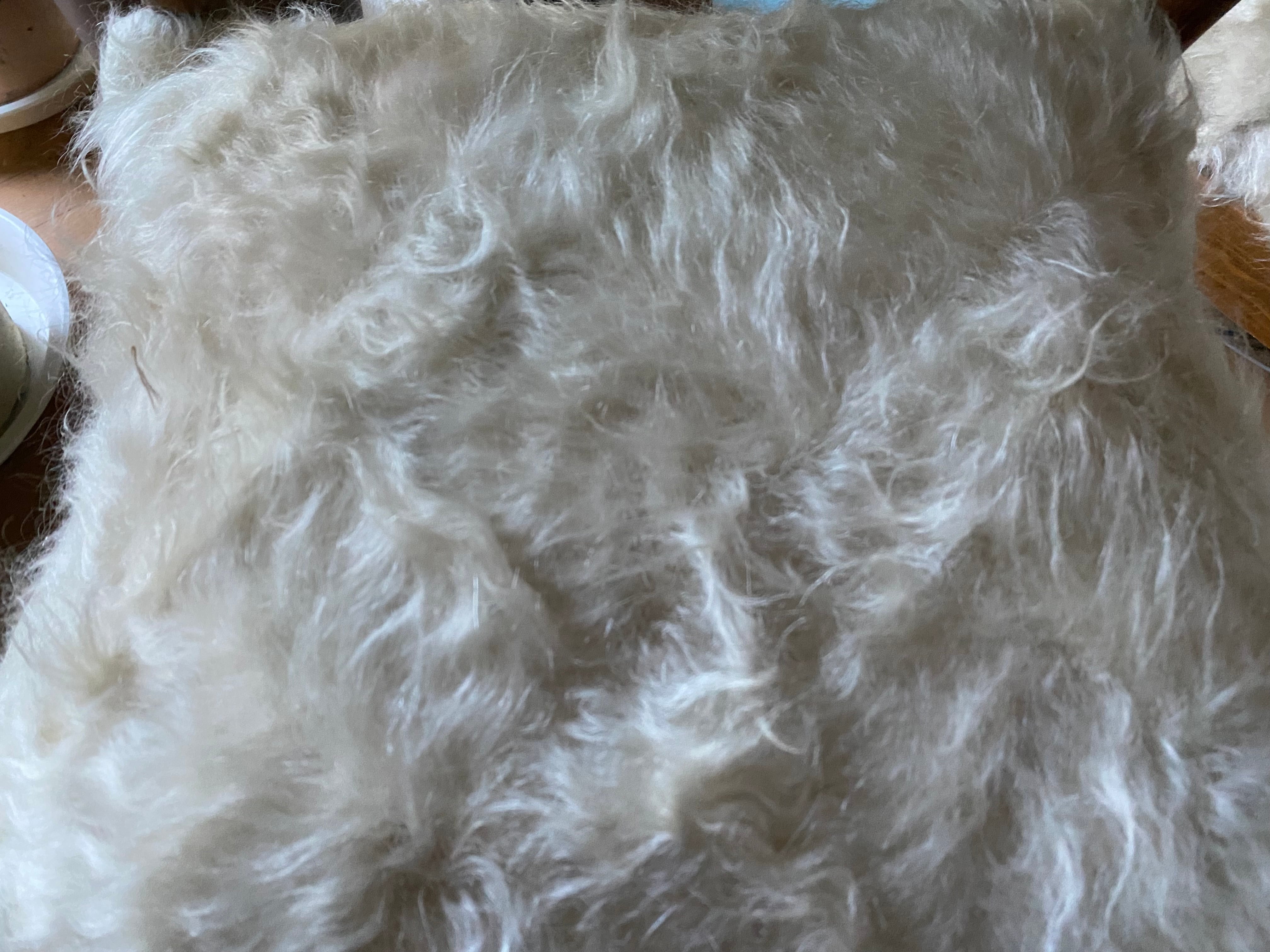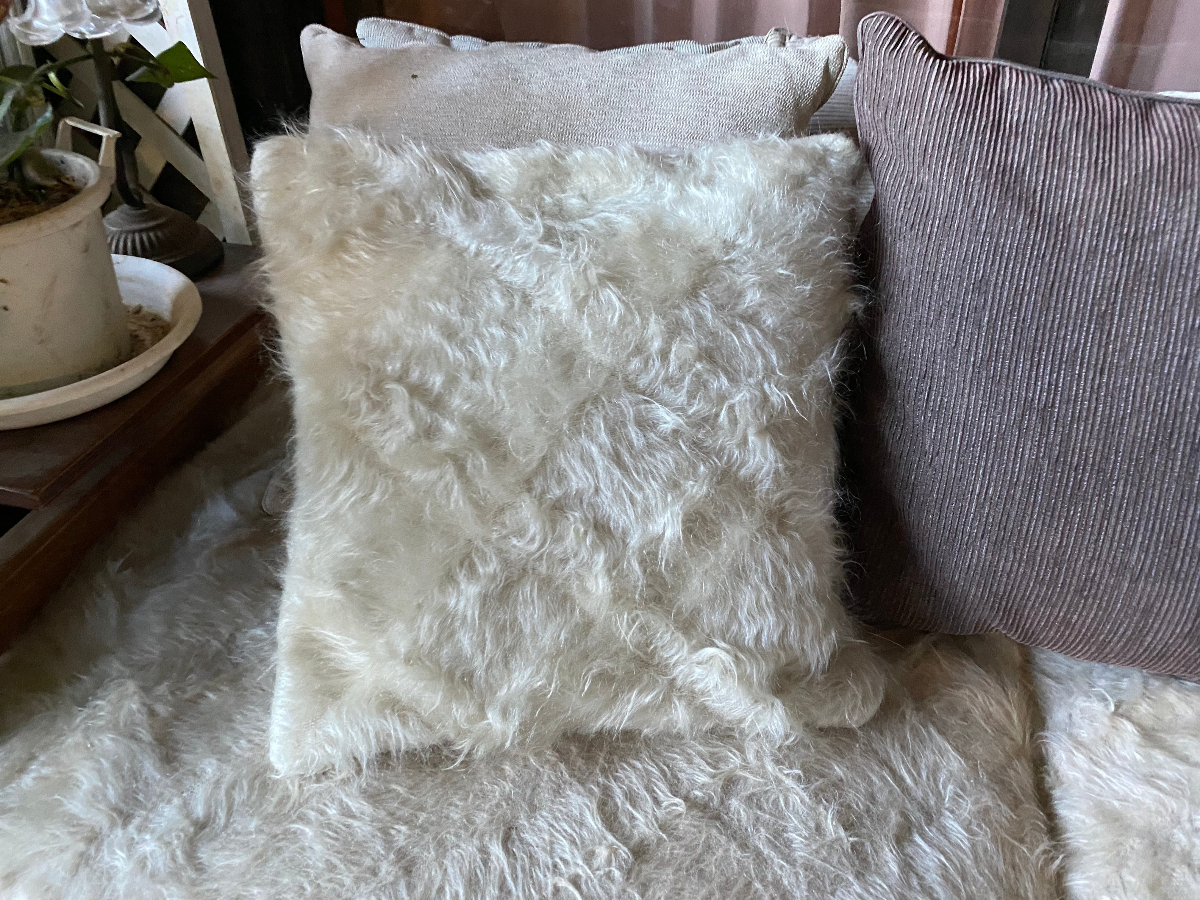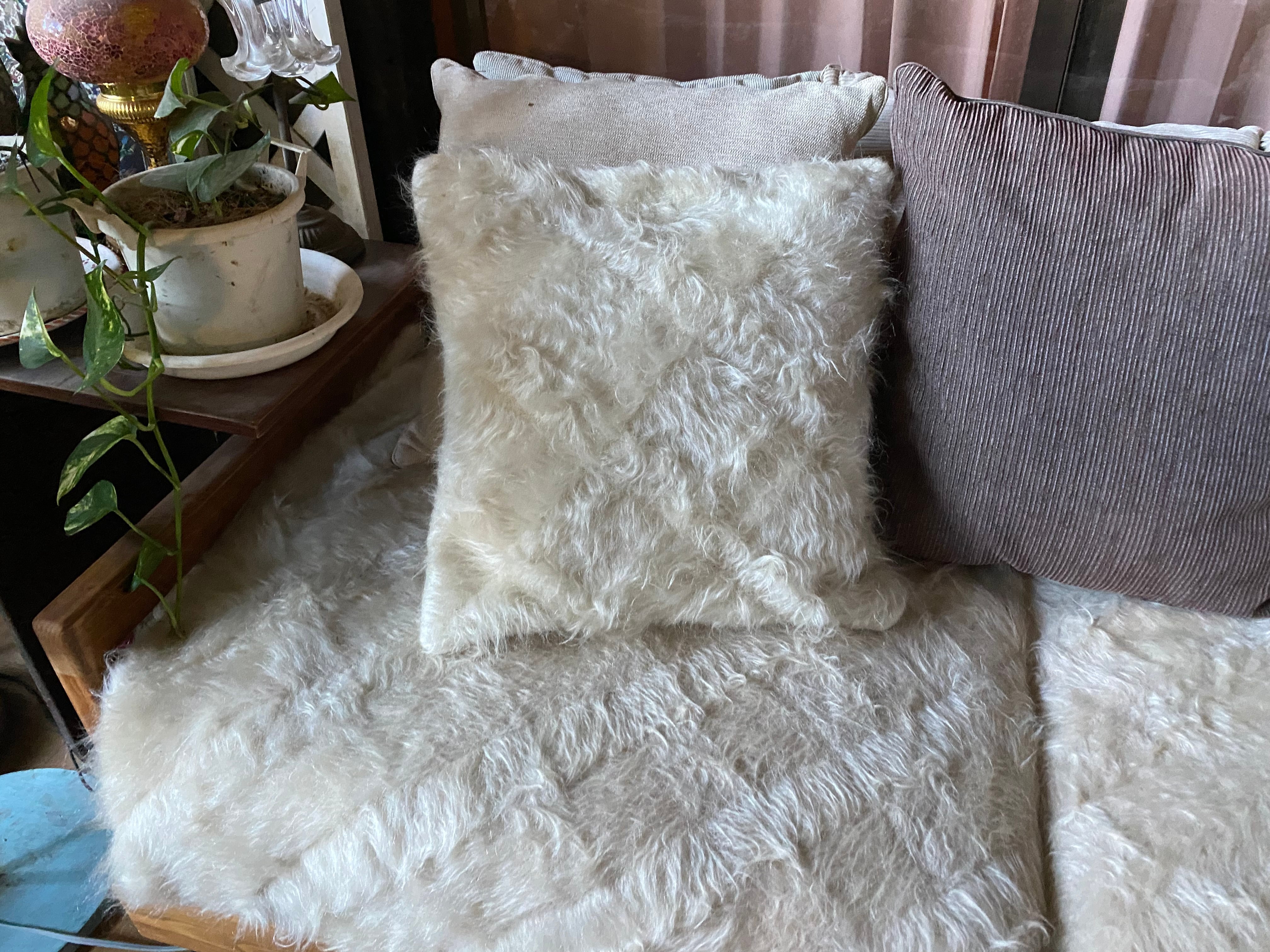 こちら通常の新しいシイルトバッタ二エにくらべ、毛量が多めの素晴らしいアンゴラ山羊100%のシイルトです!