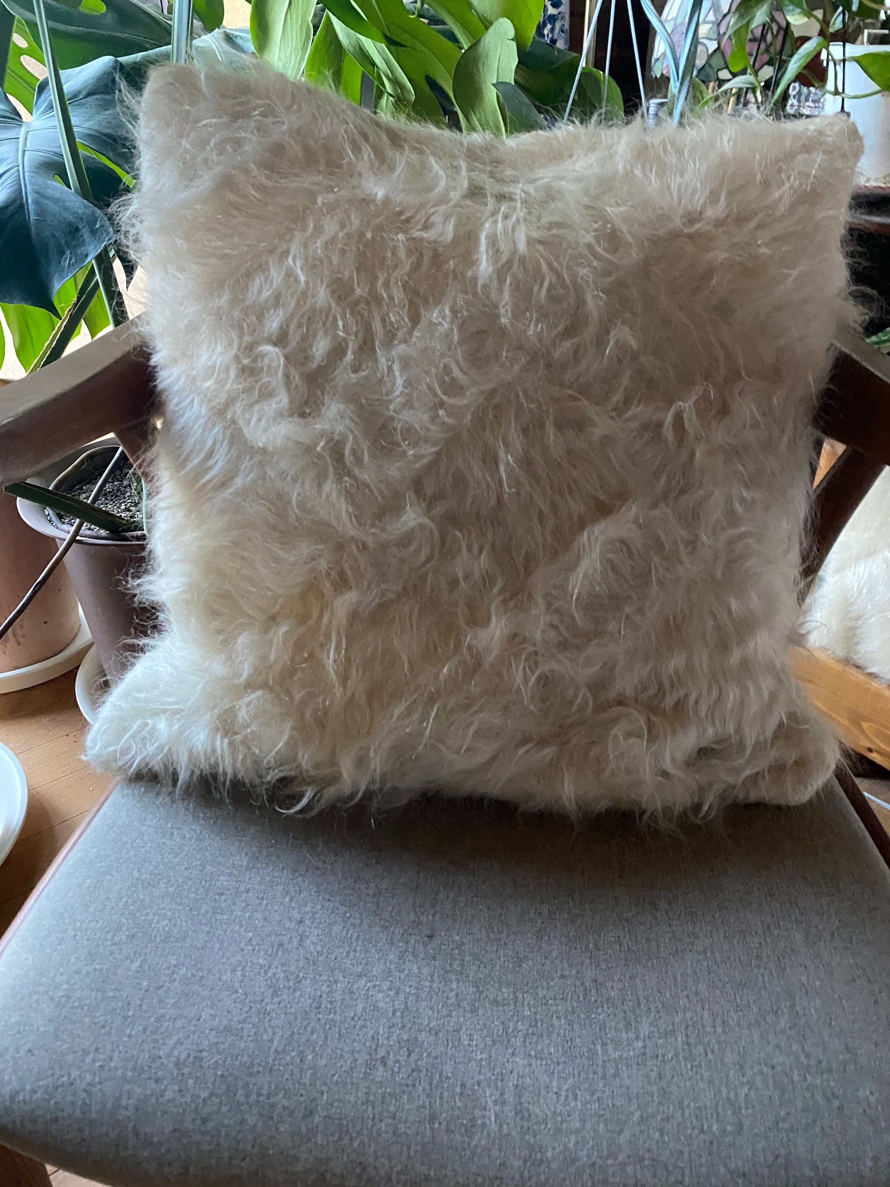 とても素敵なシャンパンホワイトの最高級のシイルトバッタニイェのクッションカバー46×46贅沢アンゴラ山羊のモヘアの手織物!人にも動物にも優しい遊牧民の生活の知恵シイルトバッタニイェのクッションカバー是非おすすめです!