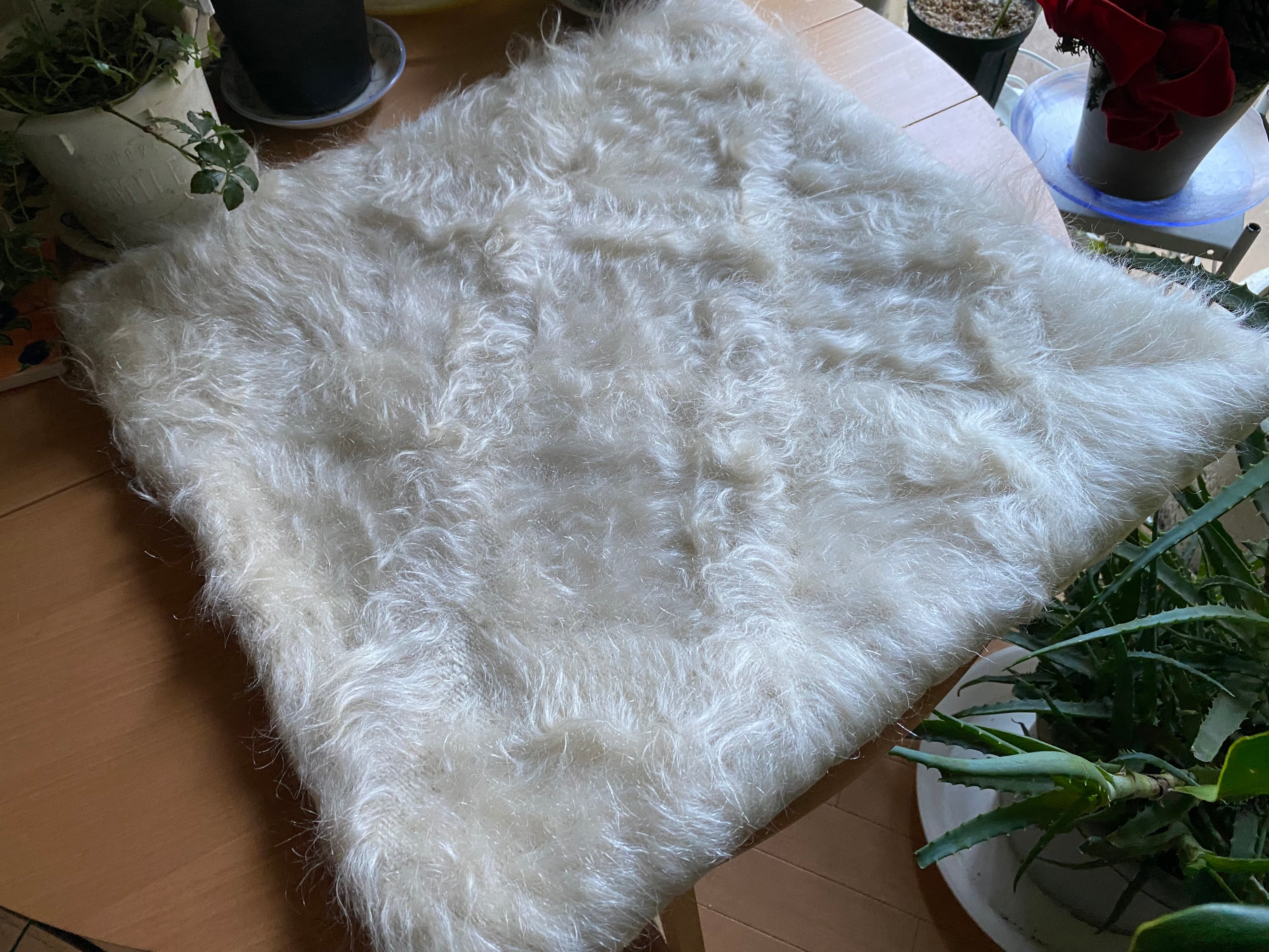 アンゴラヤギのモヘアで織られたほぼ新品未使用ですが、40年ほど織られたもので今織られたものよりさらに密でモヘアの質が大変良いです。新古品です。