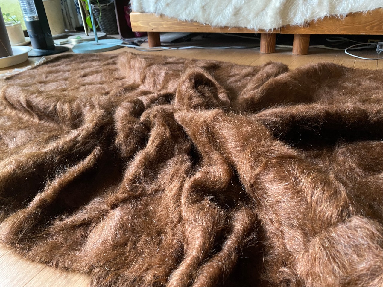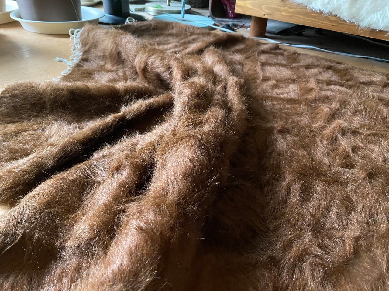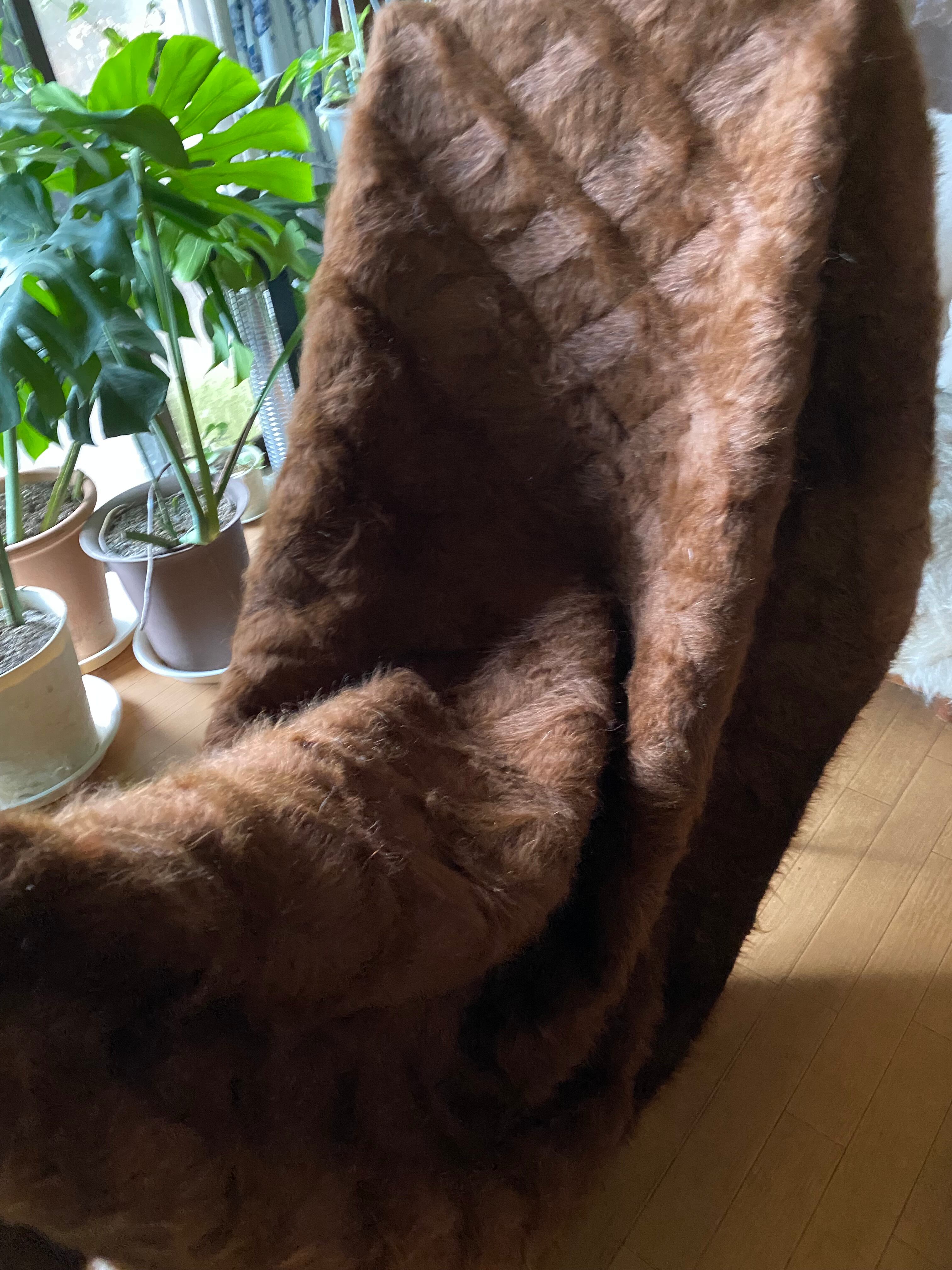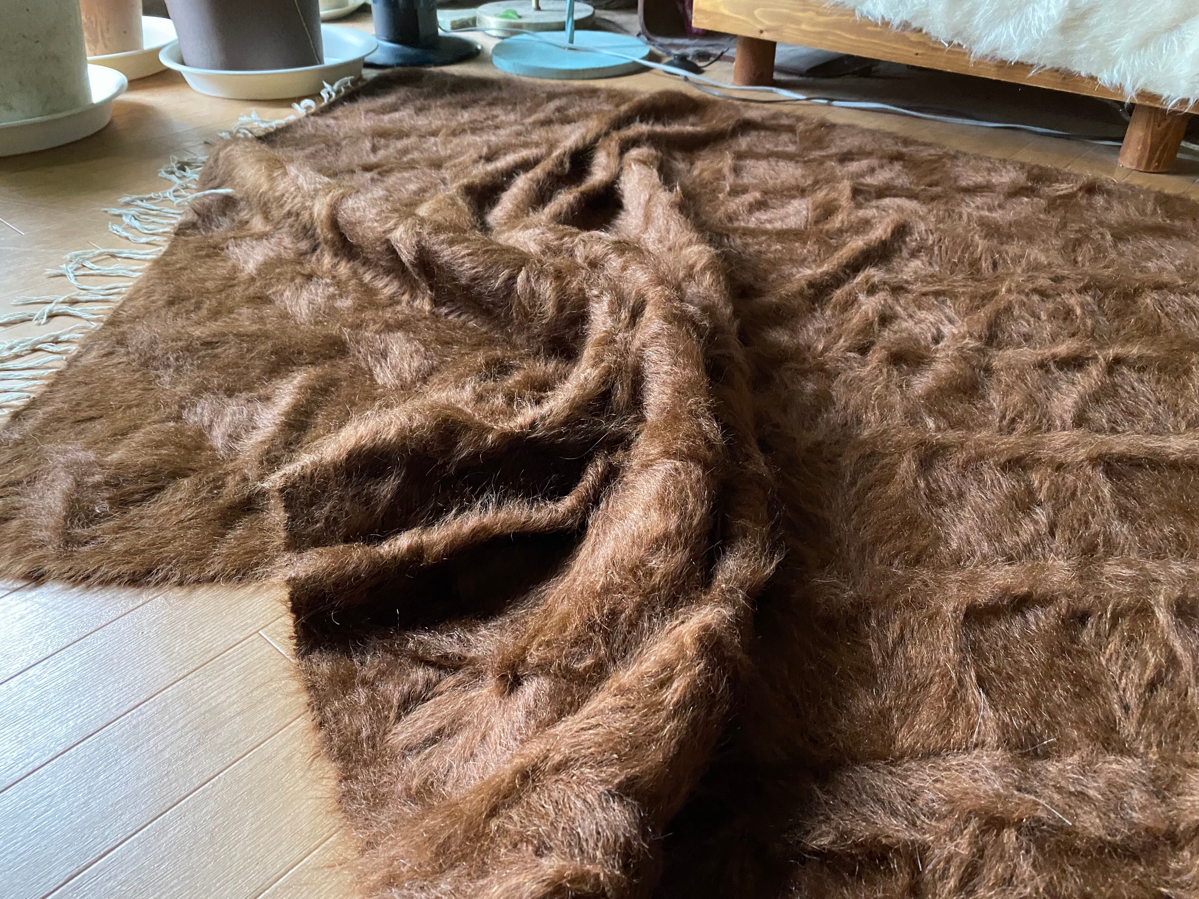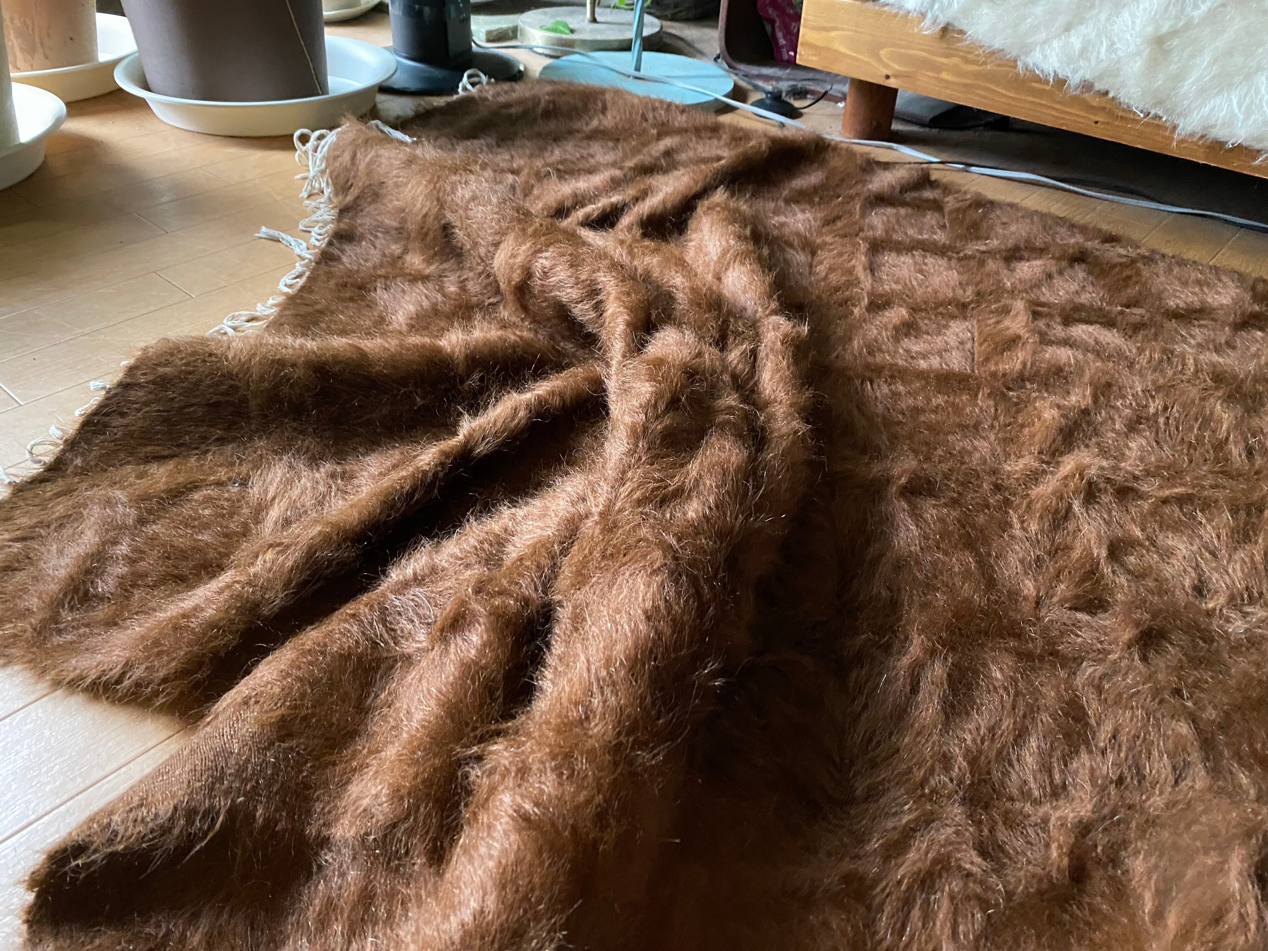 アンゴラヤギのモヘアで織られたほぼ新品未使用ですが、40年ほど織られたもので今織られたものよりさらに密でモヘアの質が大変良いです。新古品です。