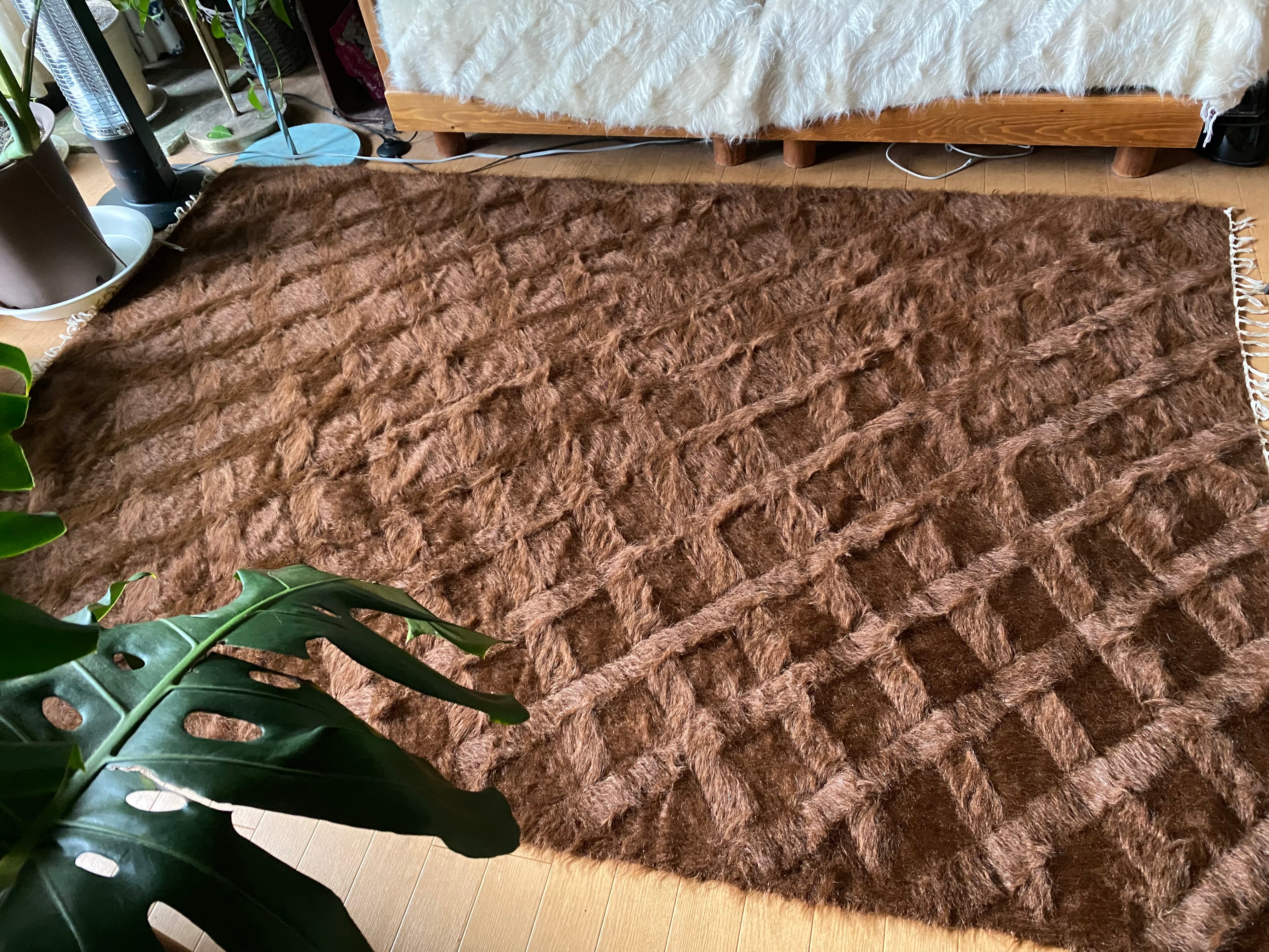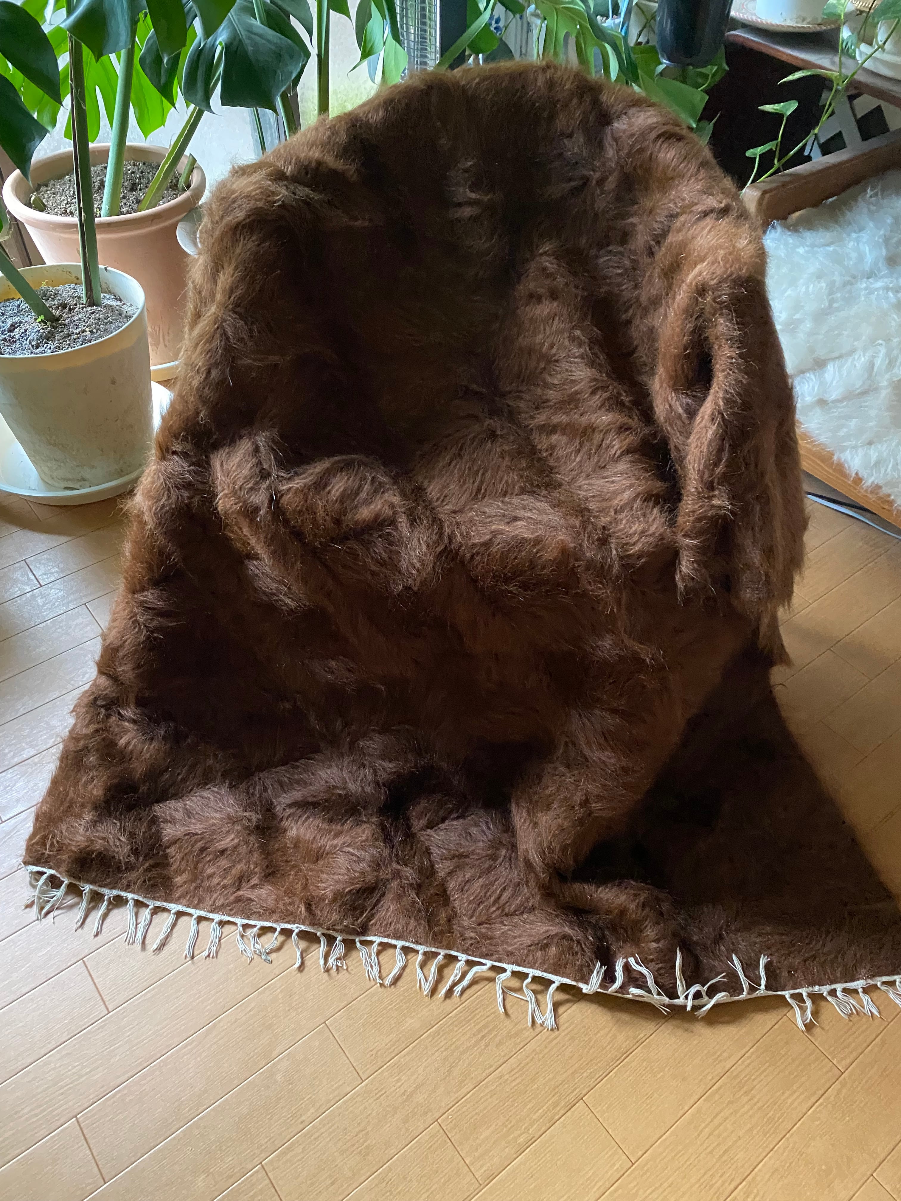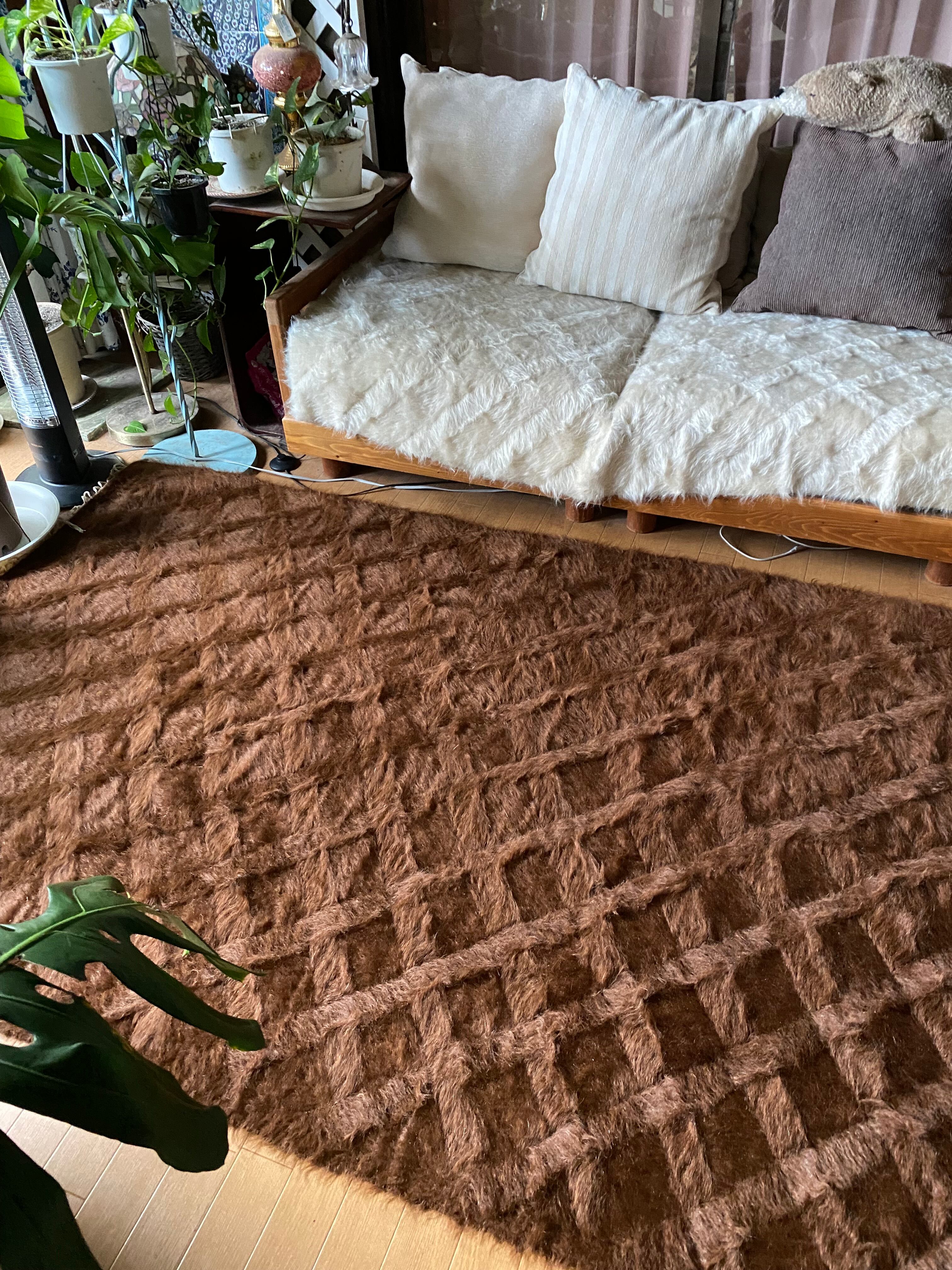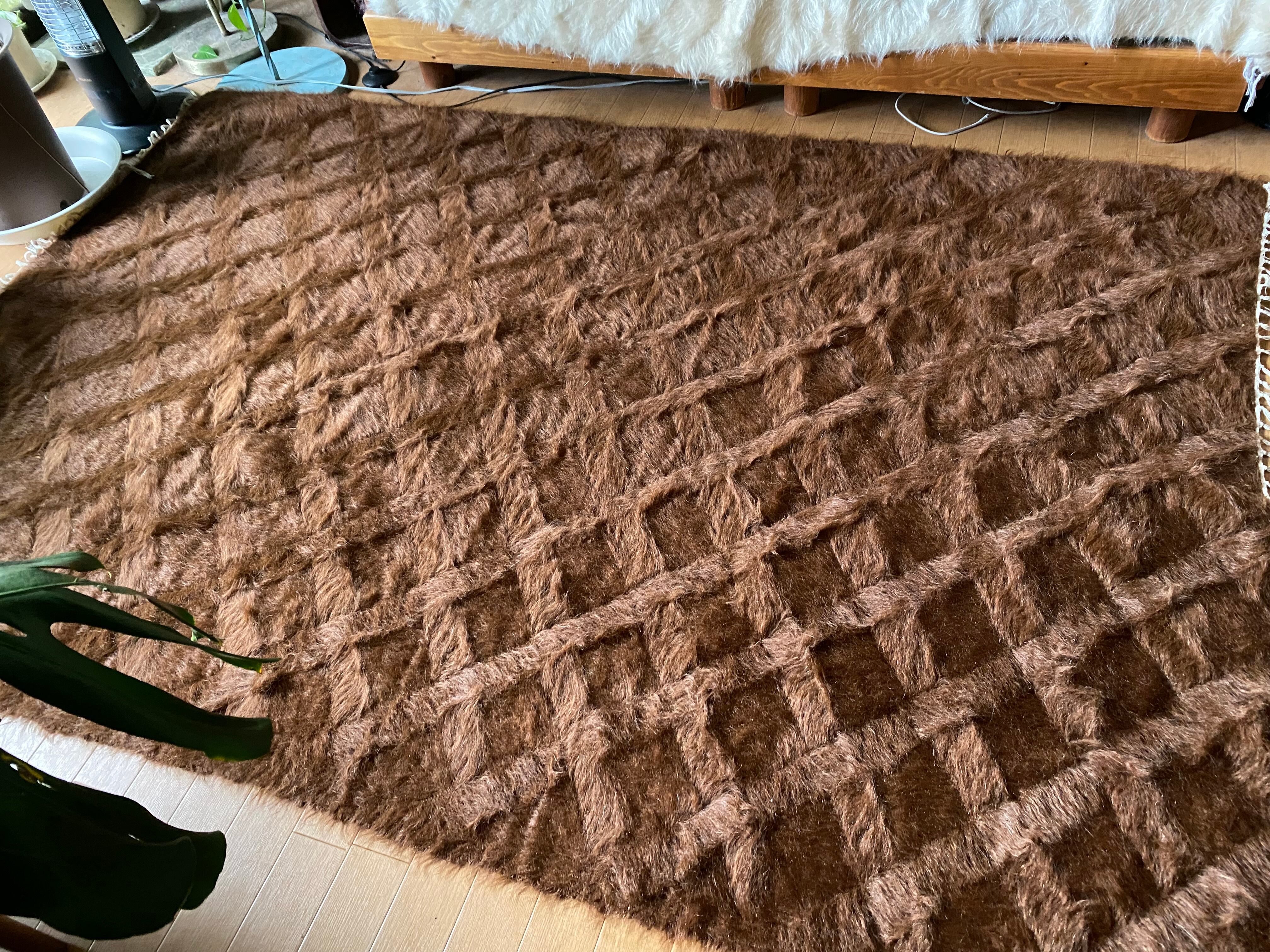 モフモフ素晴らしいミルクチョコ茶のヴィンテージ未使用品シイルトバッタニィエ!139×210毛量の多い艶々の茶のアンゴラヤギのモヘア100/毛羽立て模様が素敵な贅沢なずっしりとしたシイルトバッタニエトルコ東の遊牧民の生活の知恵で140年前から織られている毛布です