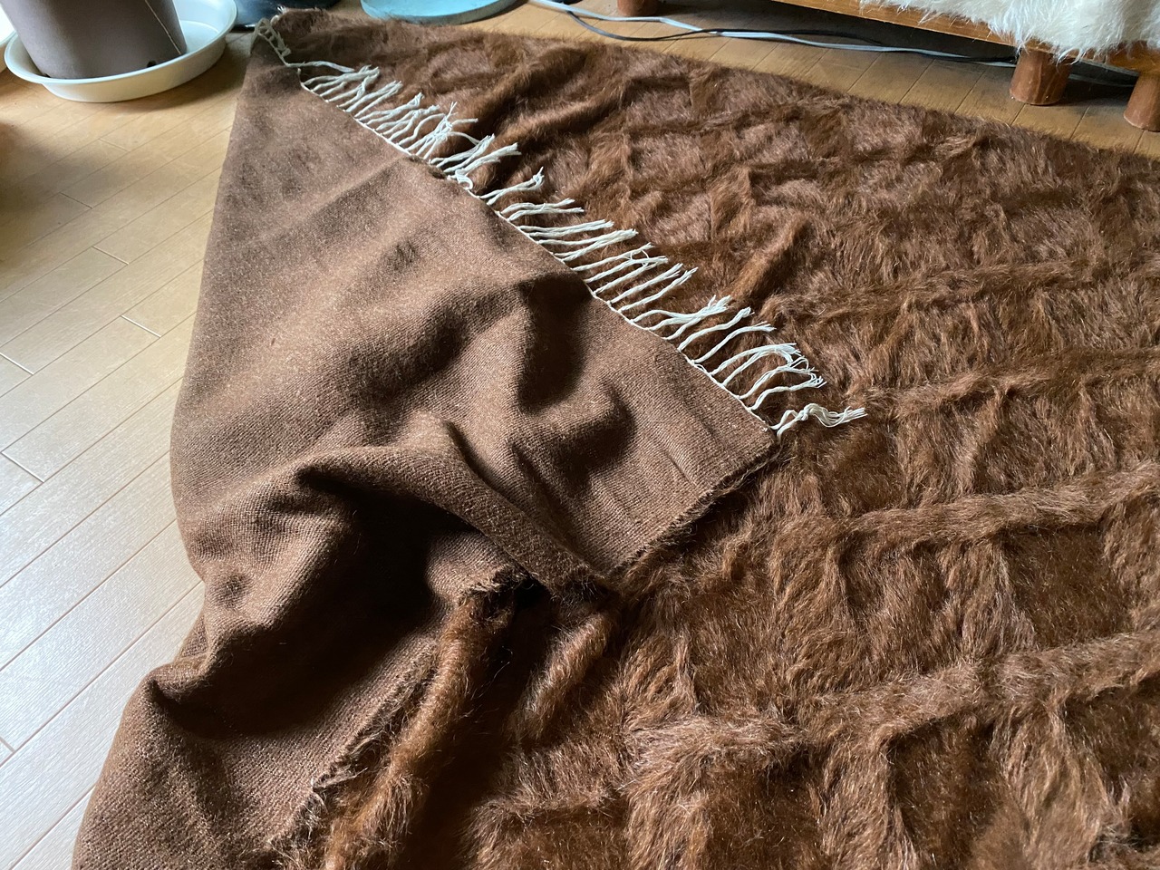 こちら通常の新しいシイルトバッタ二エにくらべ、毛量が多めの素晴らしいアンゴラ山羊100%のシイルトです!