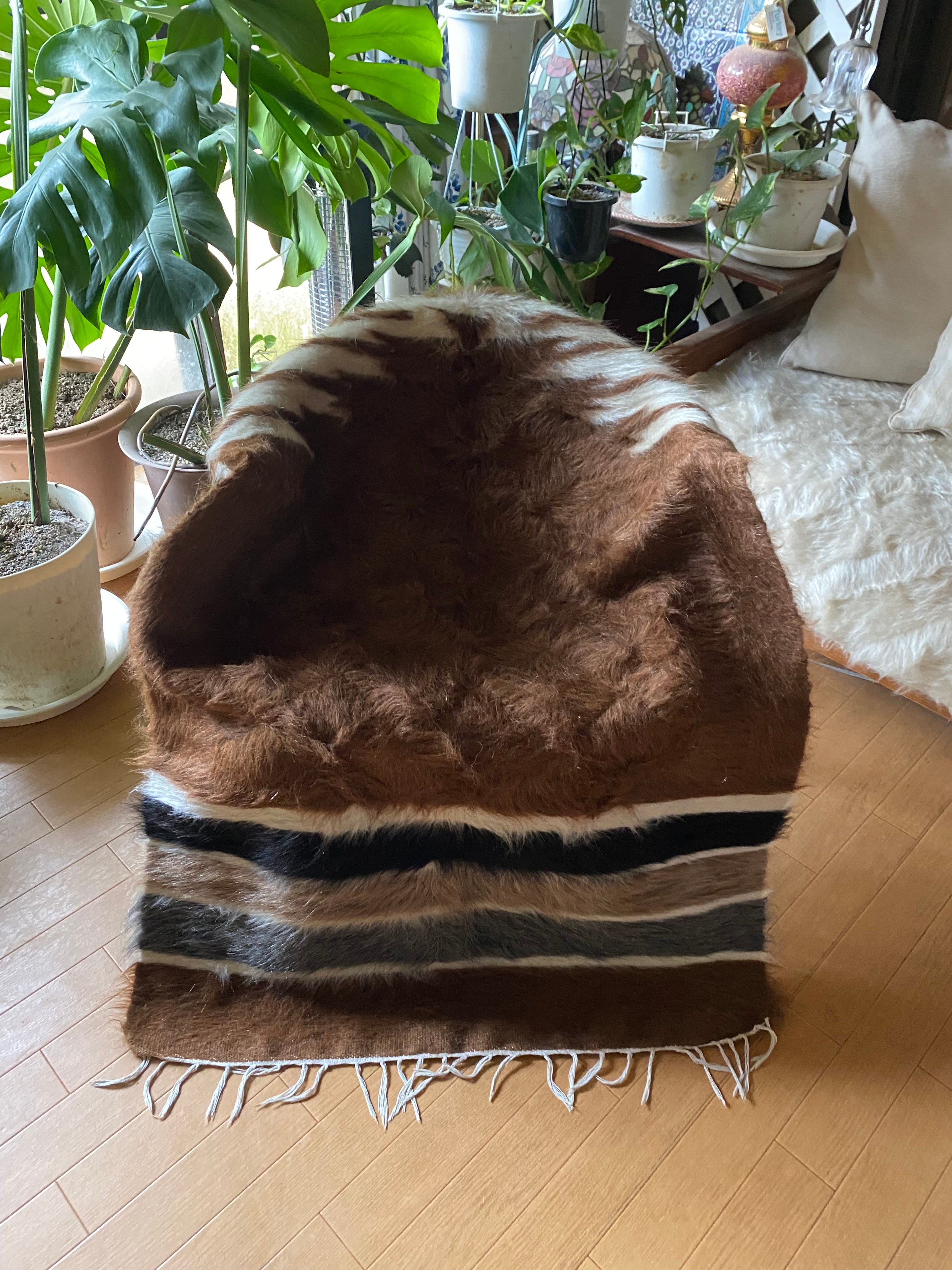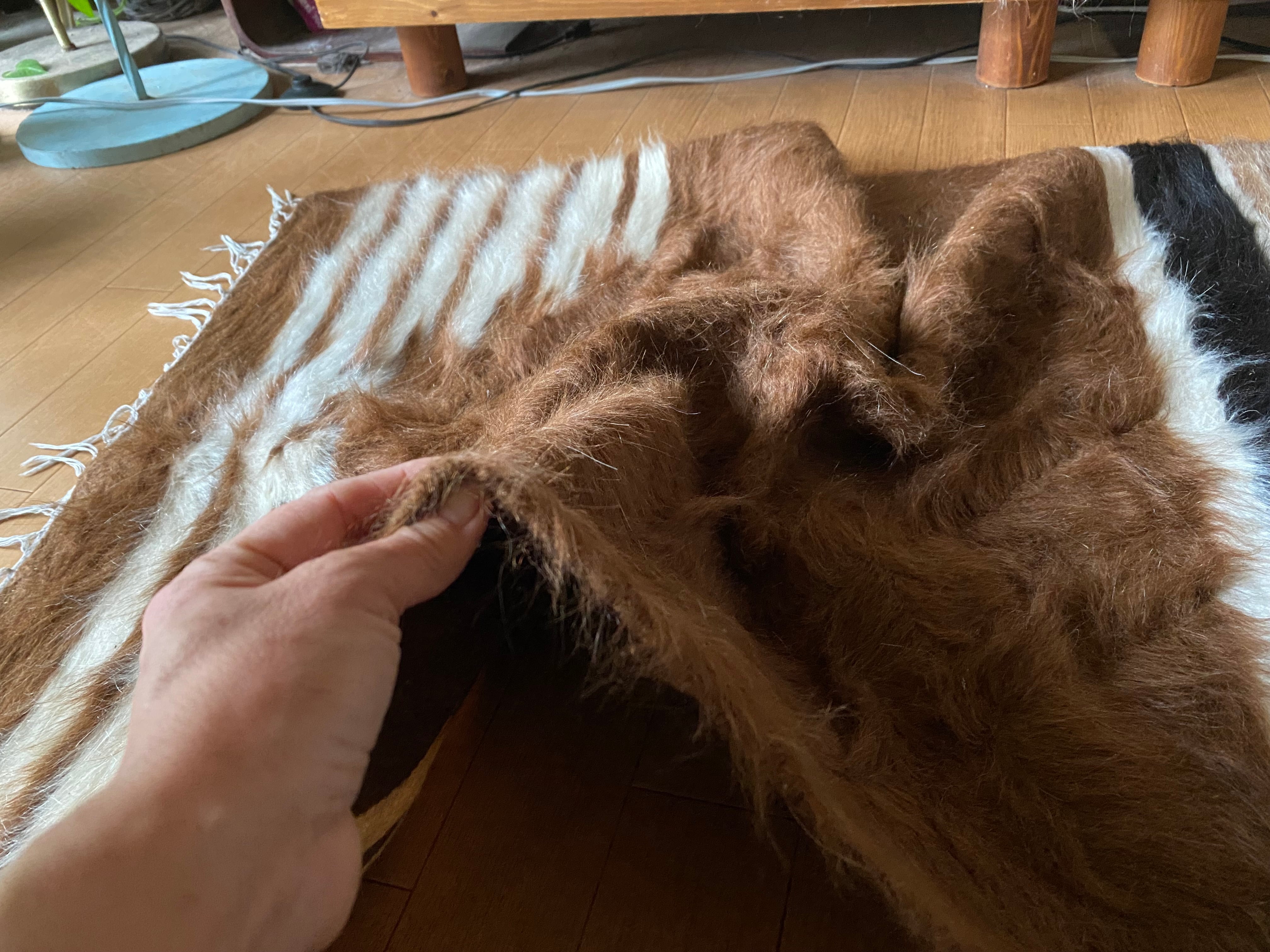 こちら通常の新しいシイルトバッタ二エにくらべ、毛量が多めの素晴らしいアンゴラ山羊100%のシイルトです!
