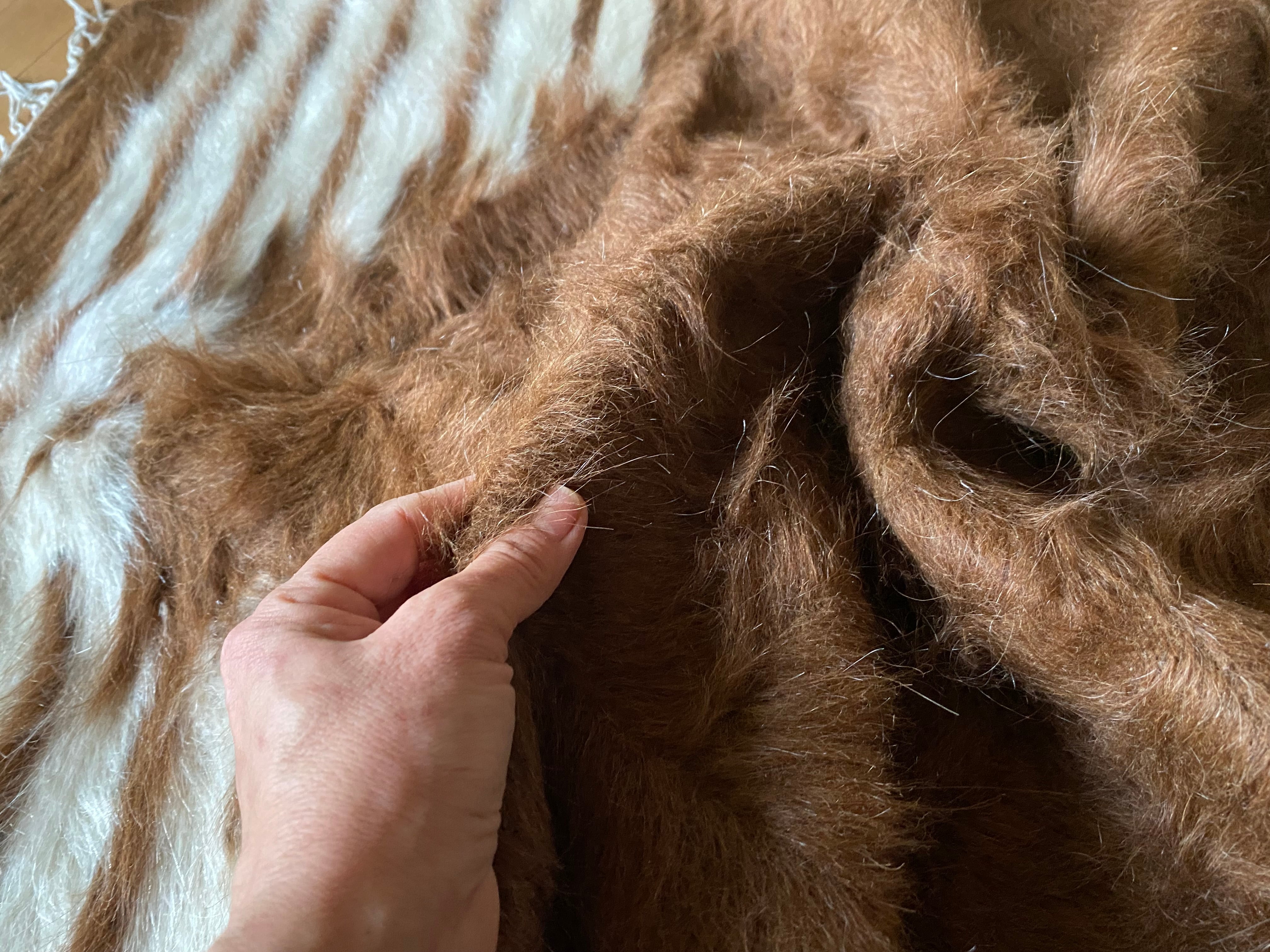 アンゴラヤギのモヘアで織られたほぼ新品未使用ですが、40年ほど織られたもので今織られたものよりさらに密でモヘアの質が大変良いです。新古品です。