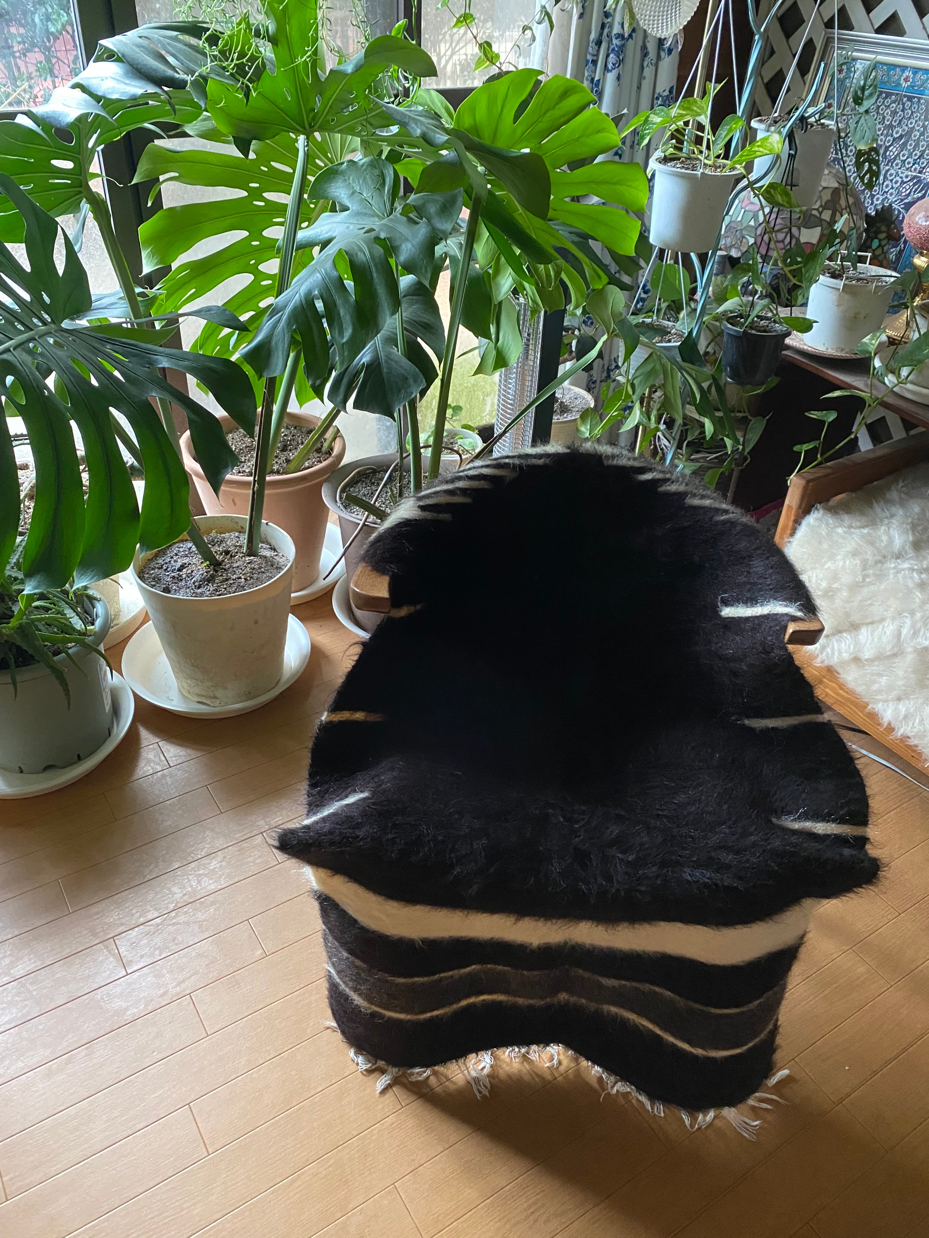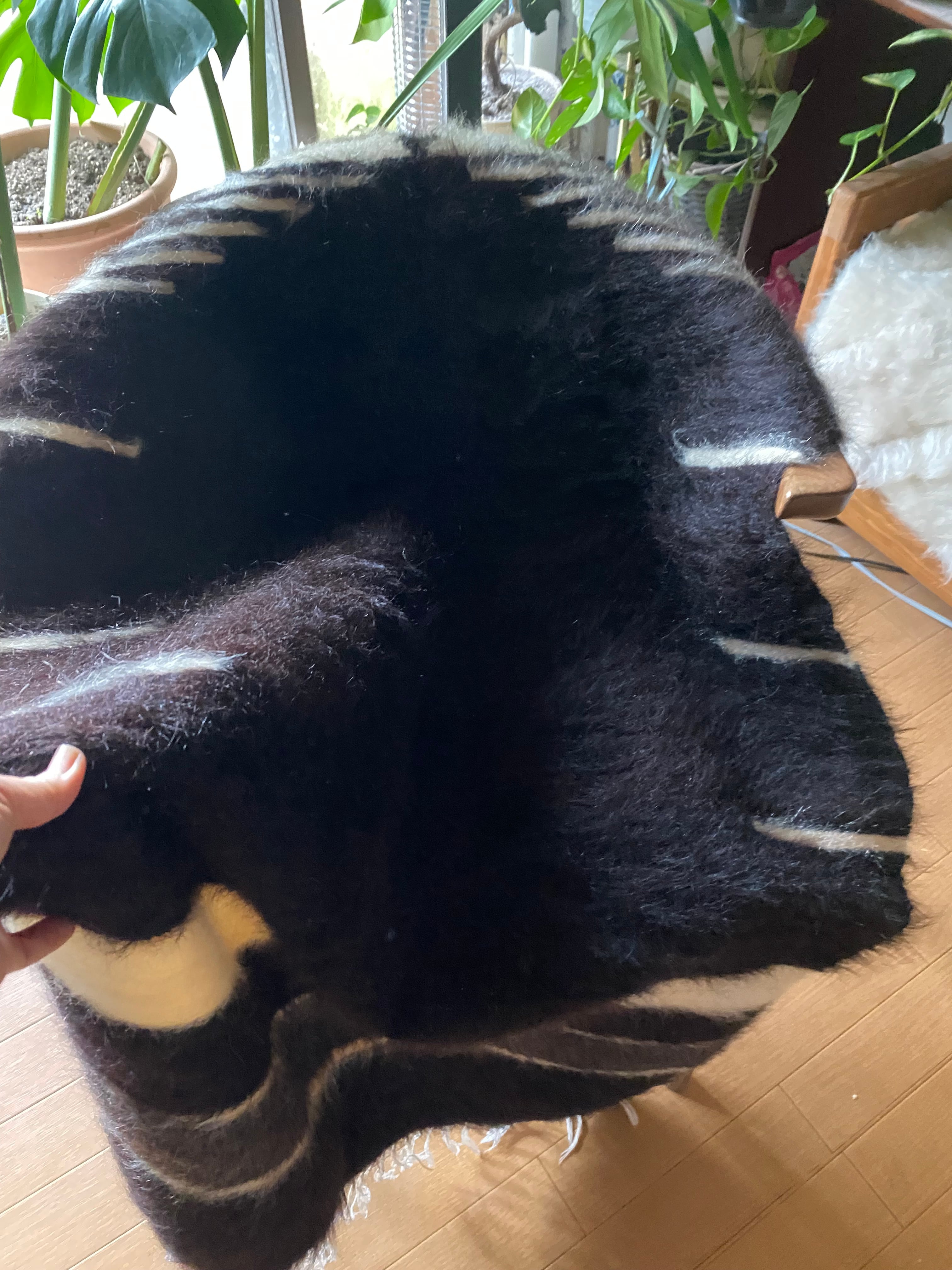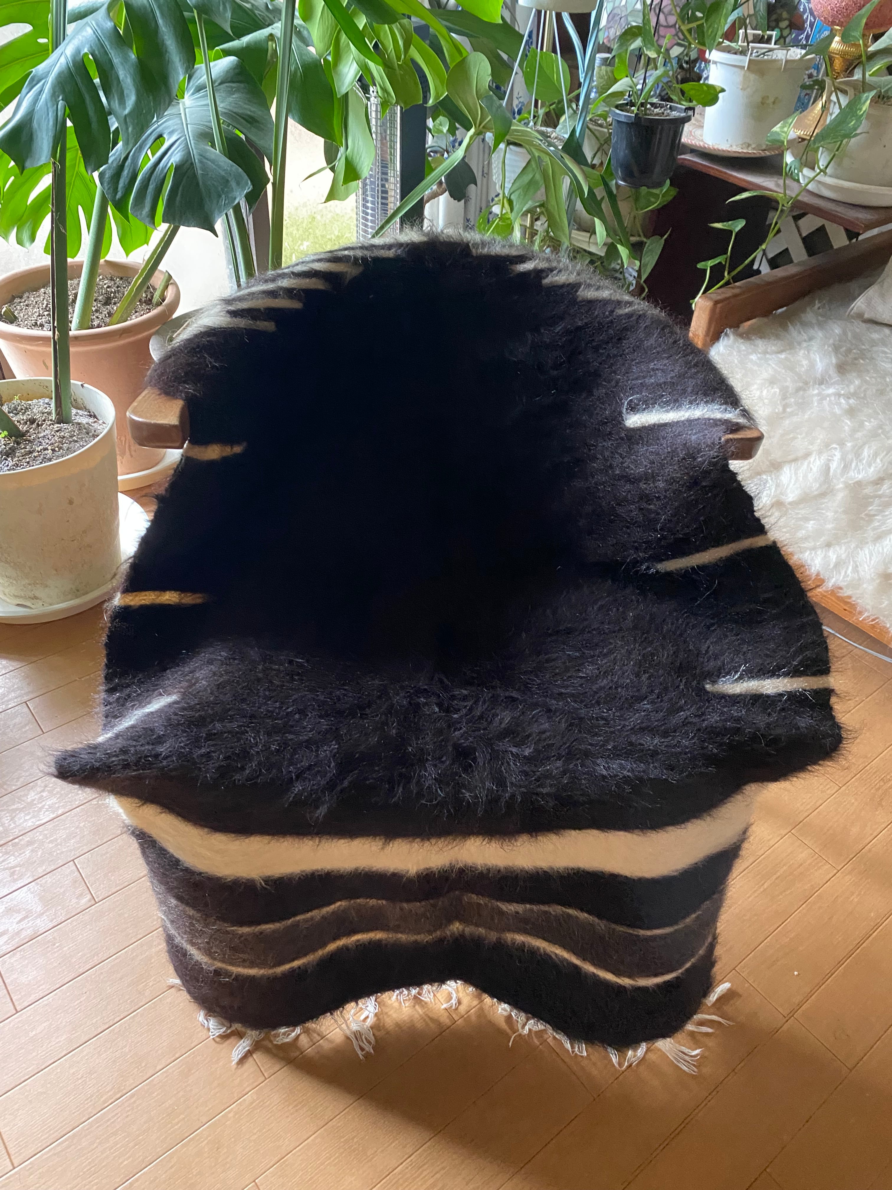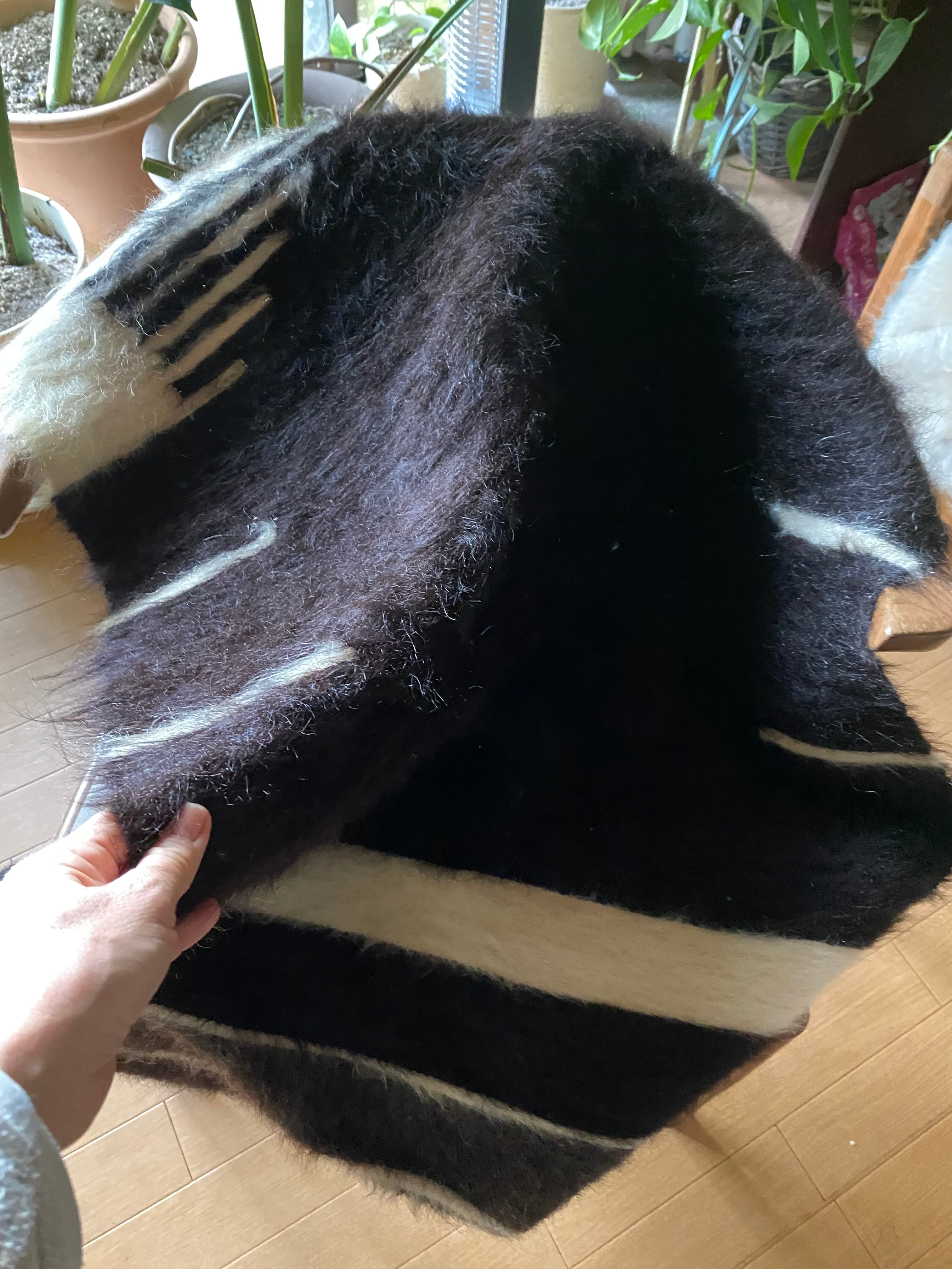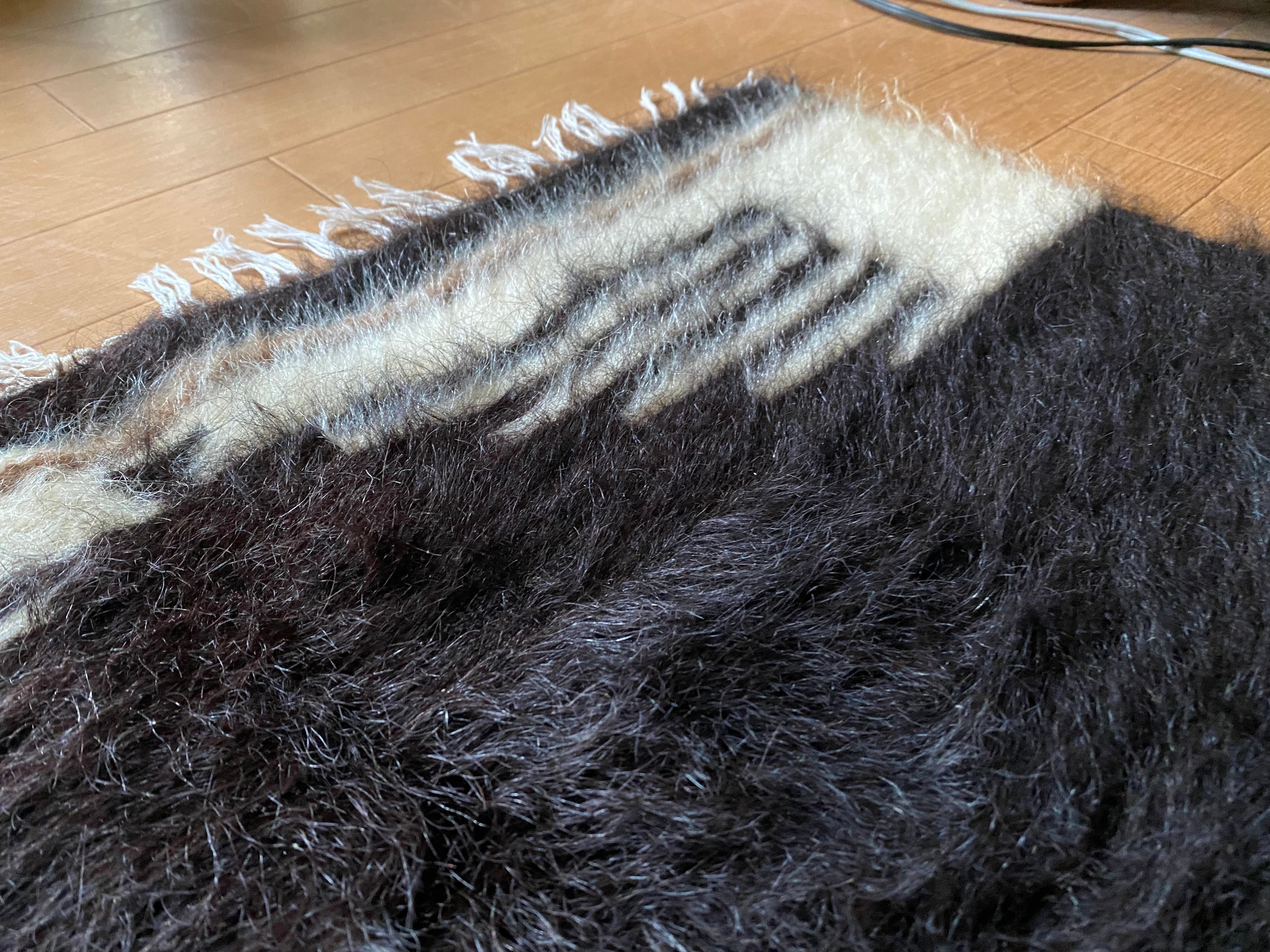 こちら通常の新しいシイルトバッタ二エにくらべ、毛量が多めの素晴らしいアンゴラ山羊100%のシイルトです!