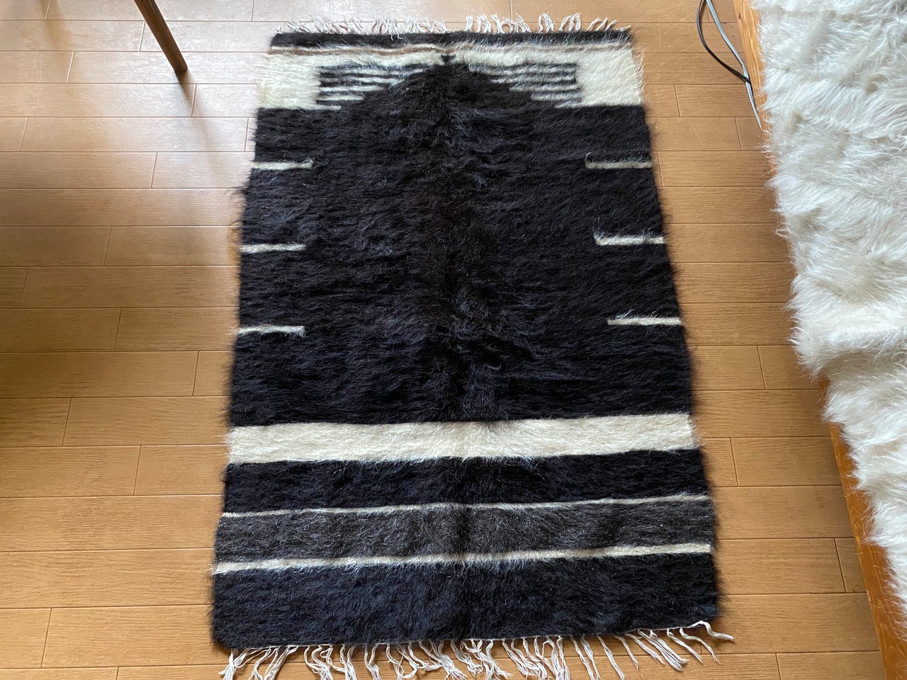 冬は毛がある面で、夏は裏面でキリムとしてお使いいただける優れものです。
