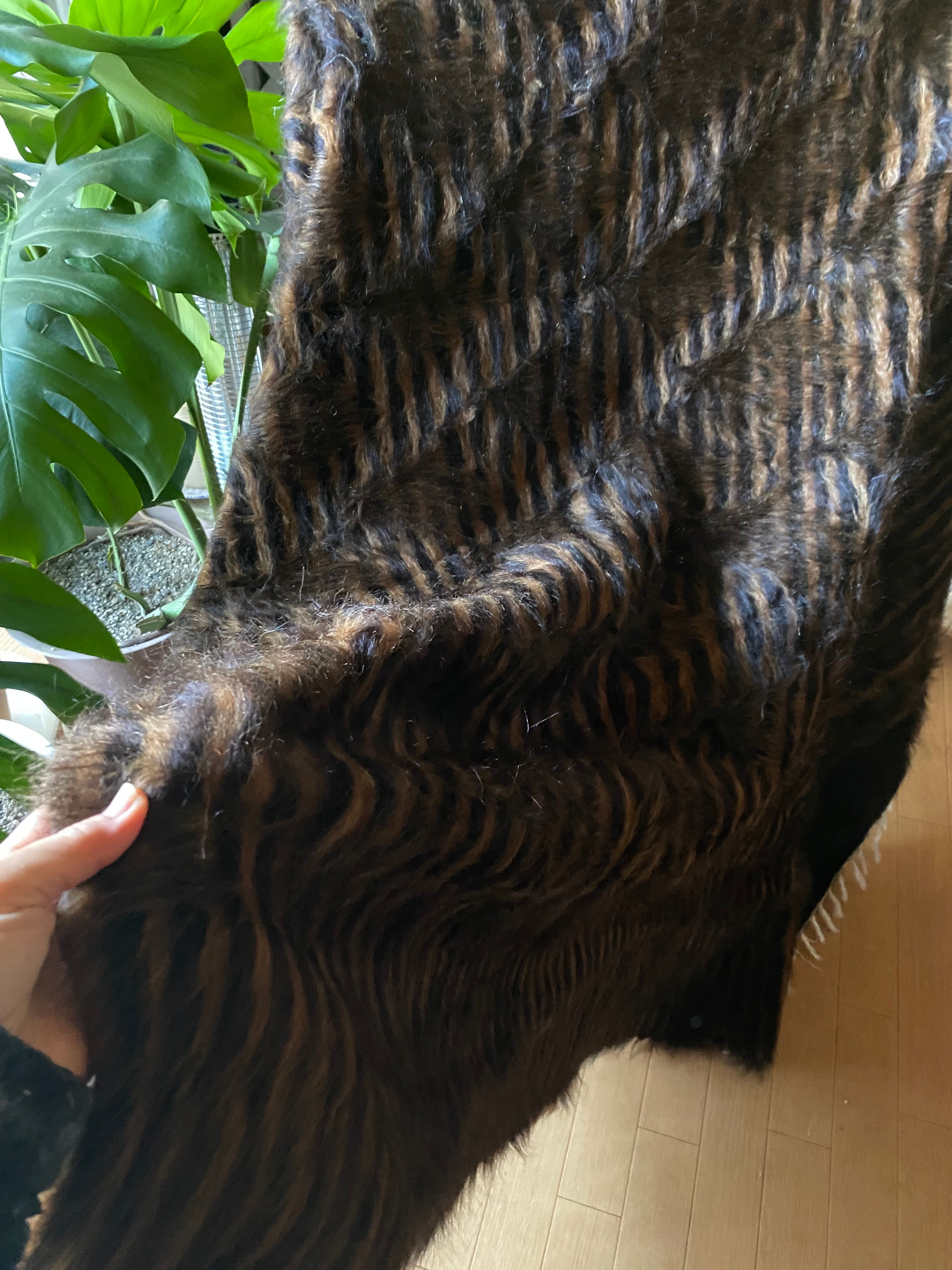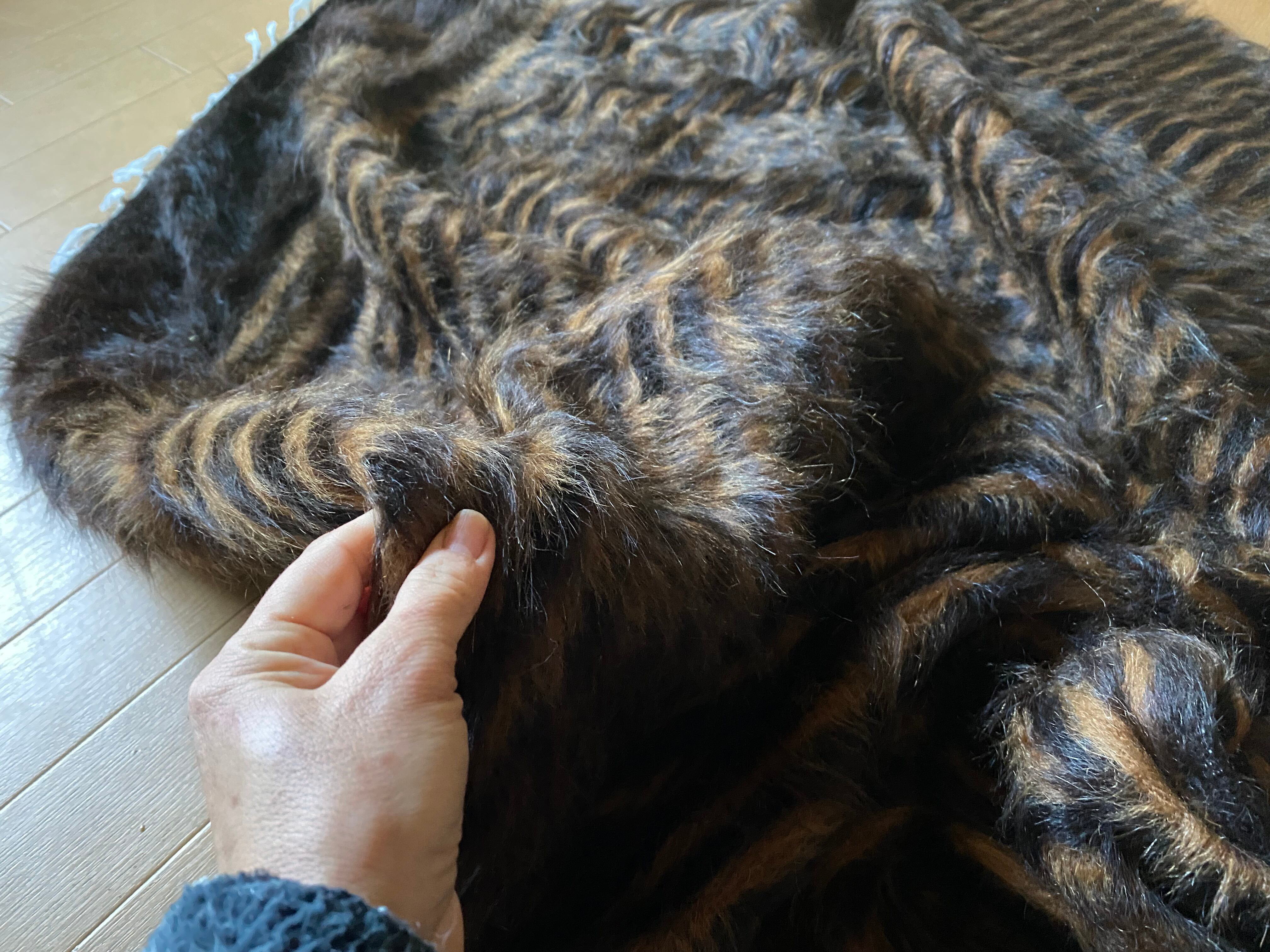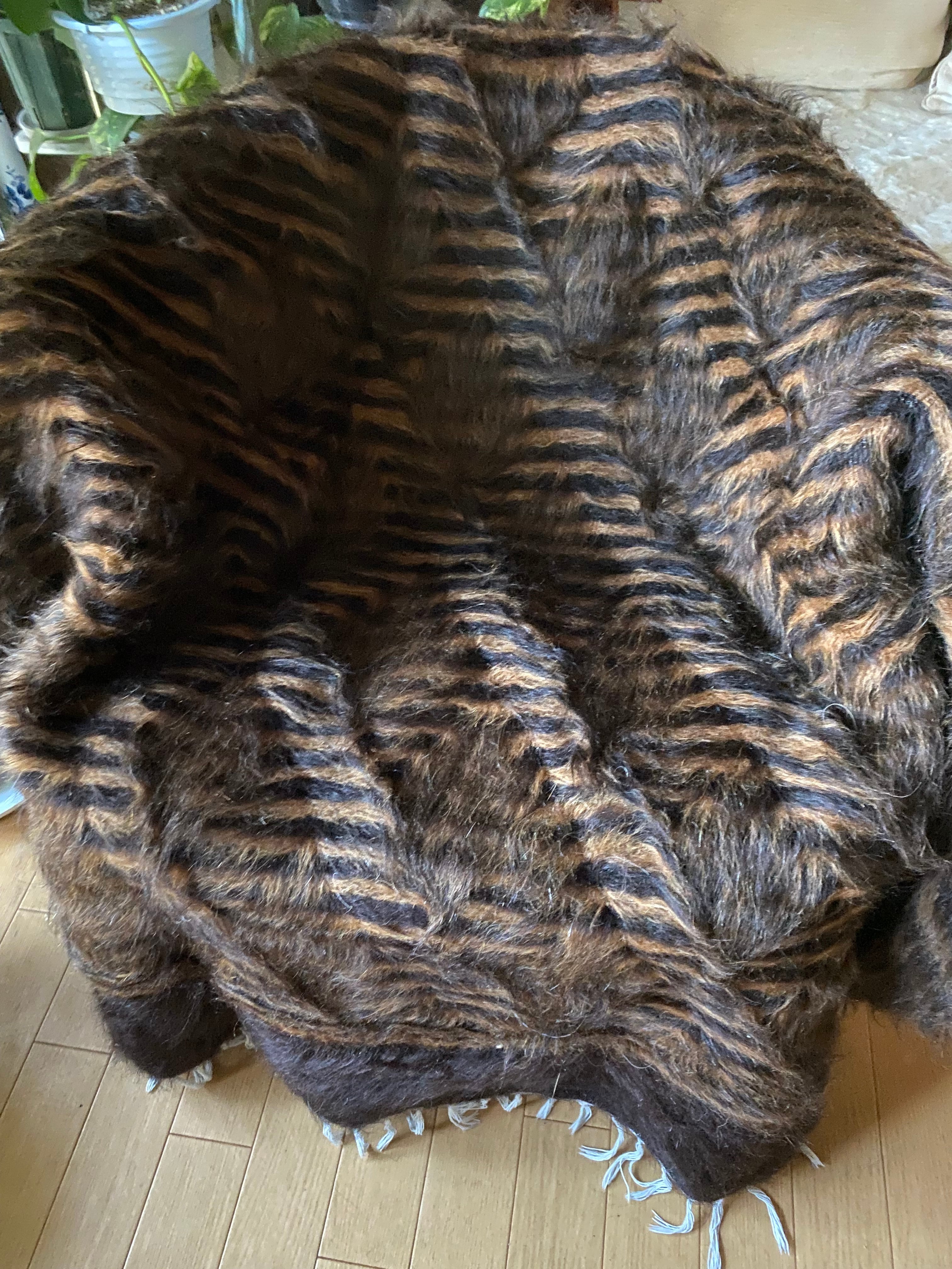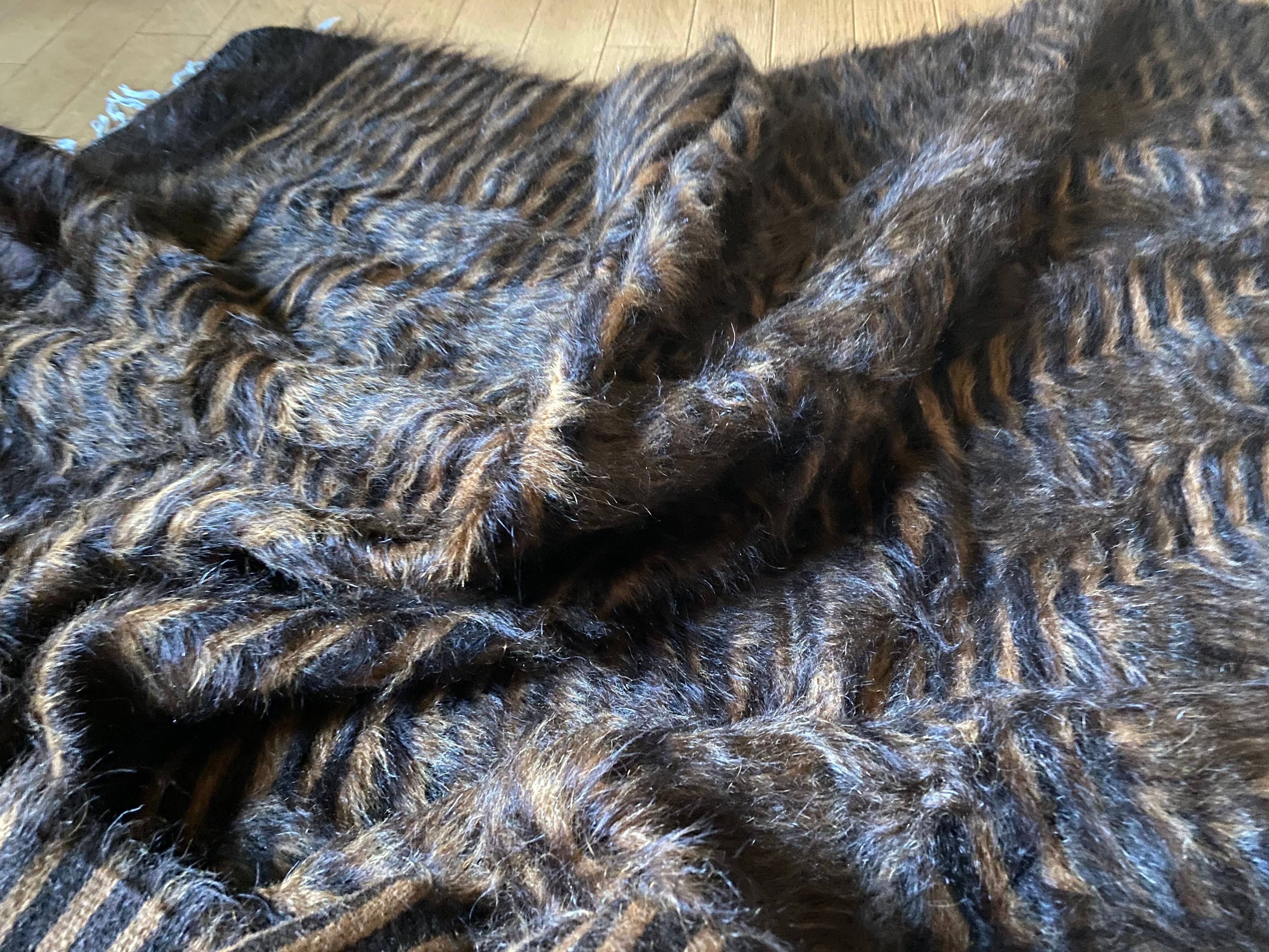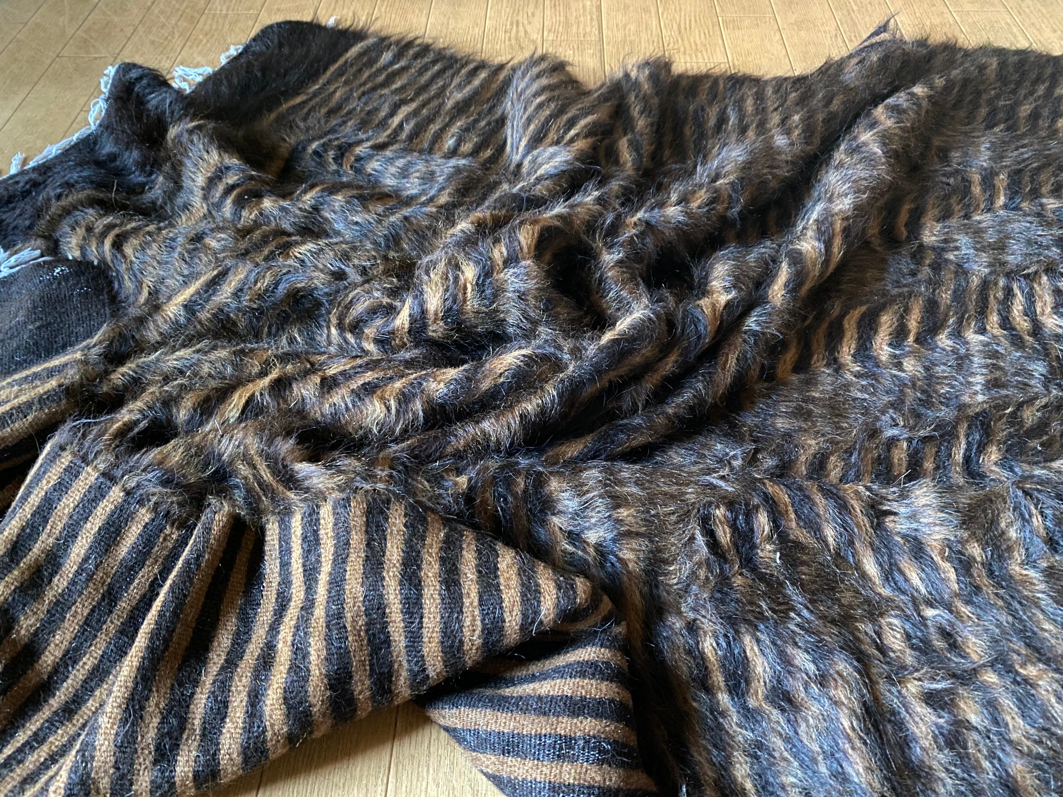 寒い日もこれ一枚で暖かい!大判初めてのご紹介毛足が長く艶々お洒落なキジトラ柄! 極上上質のモヘアの毛布シイルトバッタニィエ!ベッドに使う方増えてます!ラグにもソファや椅子カバーにも!動物を傷つけない エコで素晴らしいモヘア100現地直輸入の卸売価格倍以上の価値
