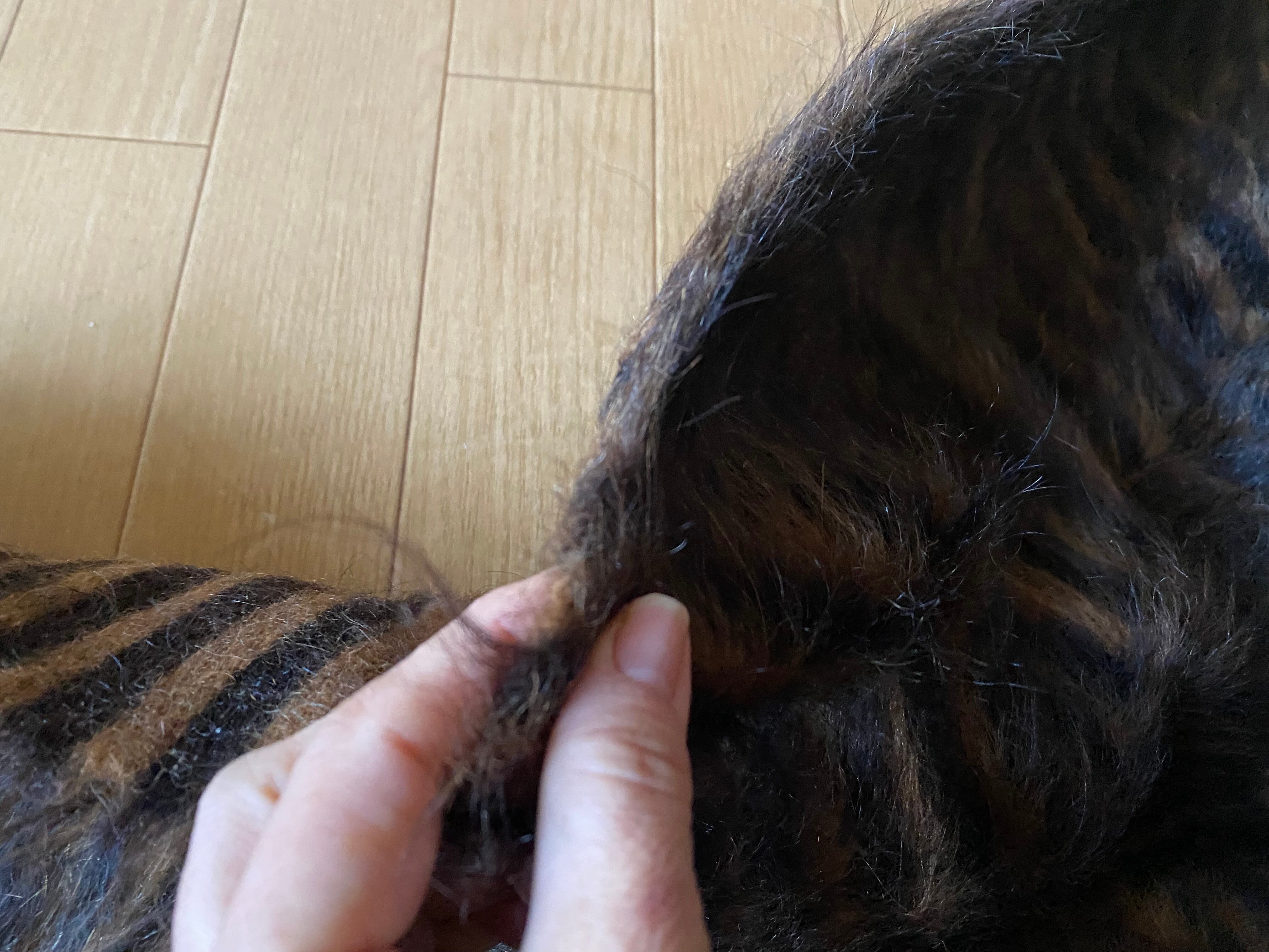 自然の山羊の毛を手で紡いだものが使われていますので、たまーにもみ殻がたまについていたり木の破片みたいなものが稀に織り込まれていることがありますので、ご了承ください。 できるだけ検品して取り除いていますが取り切れないこともありますのでご了承ください。
