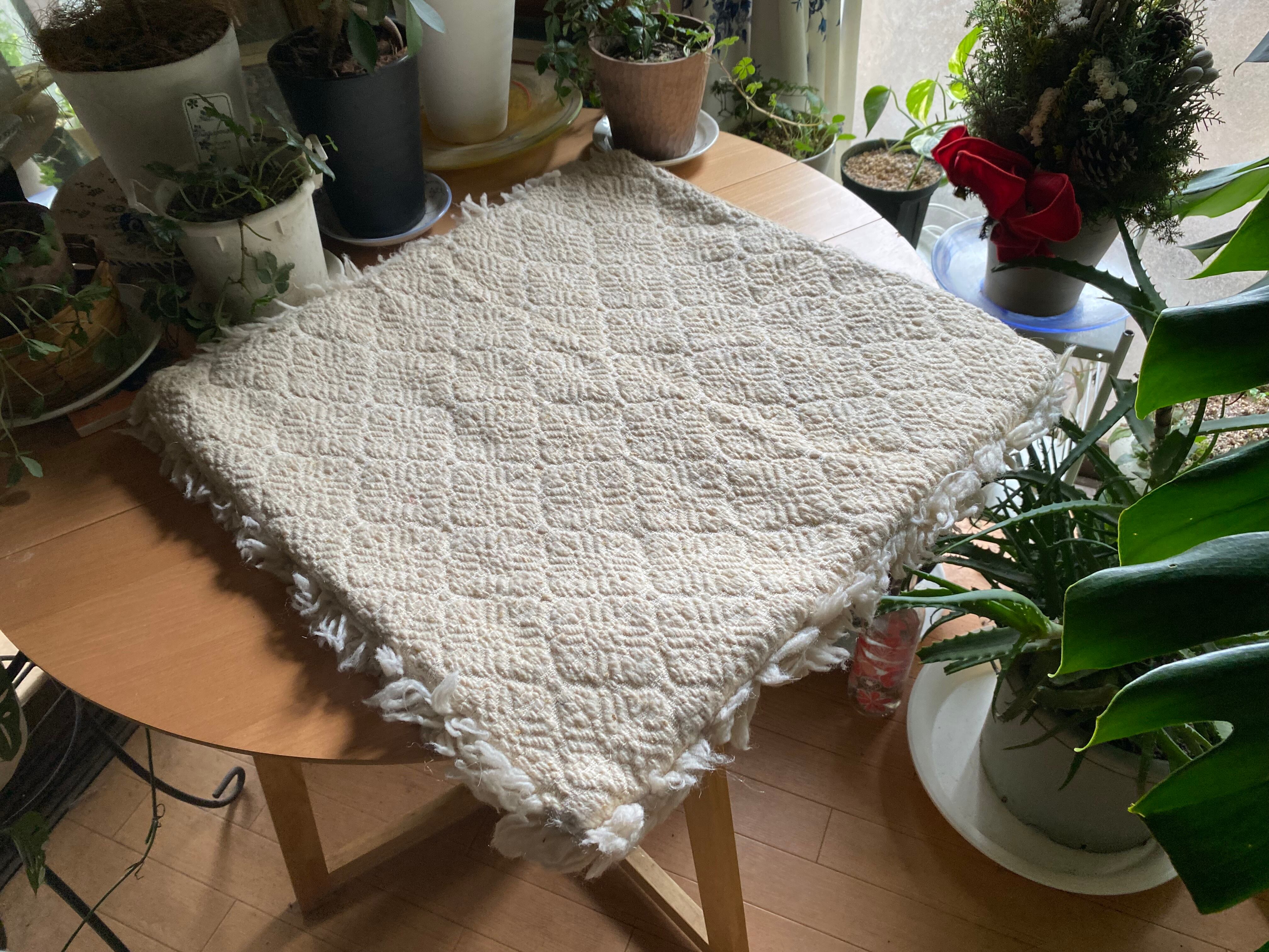 この織物は羽織ったり、ラグにしたり、ソファや椅子に使ったり