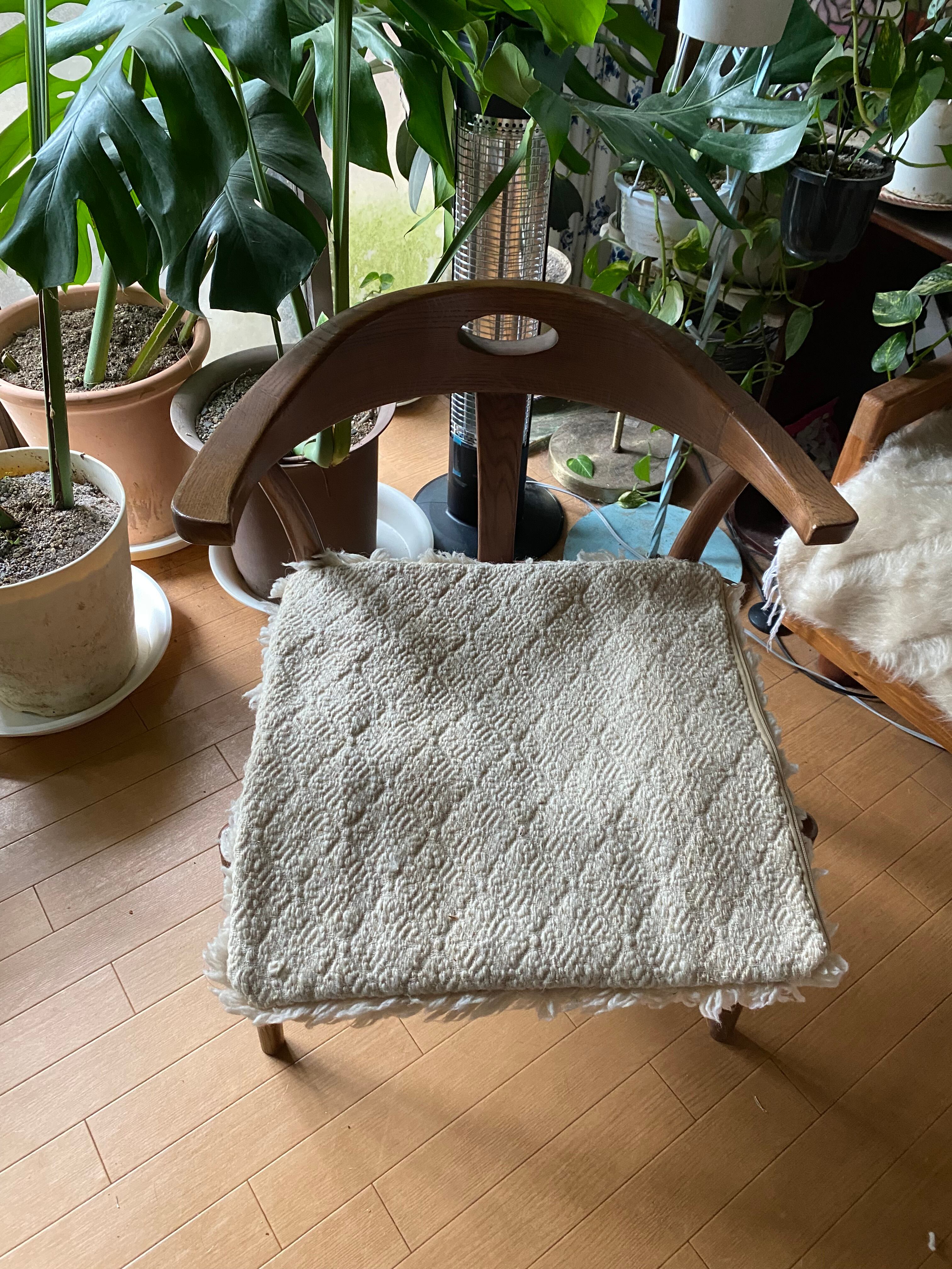 この織物は羽織ったり、ラグにしたり、ソファや椅子に使ったり