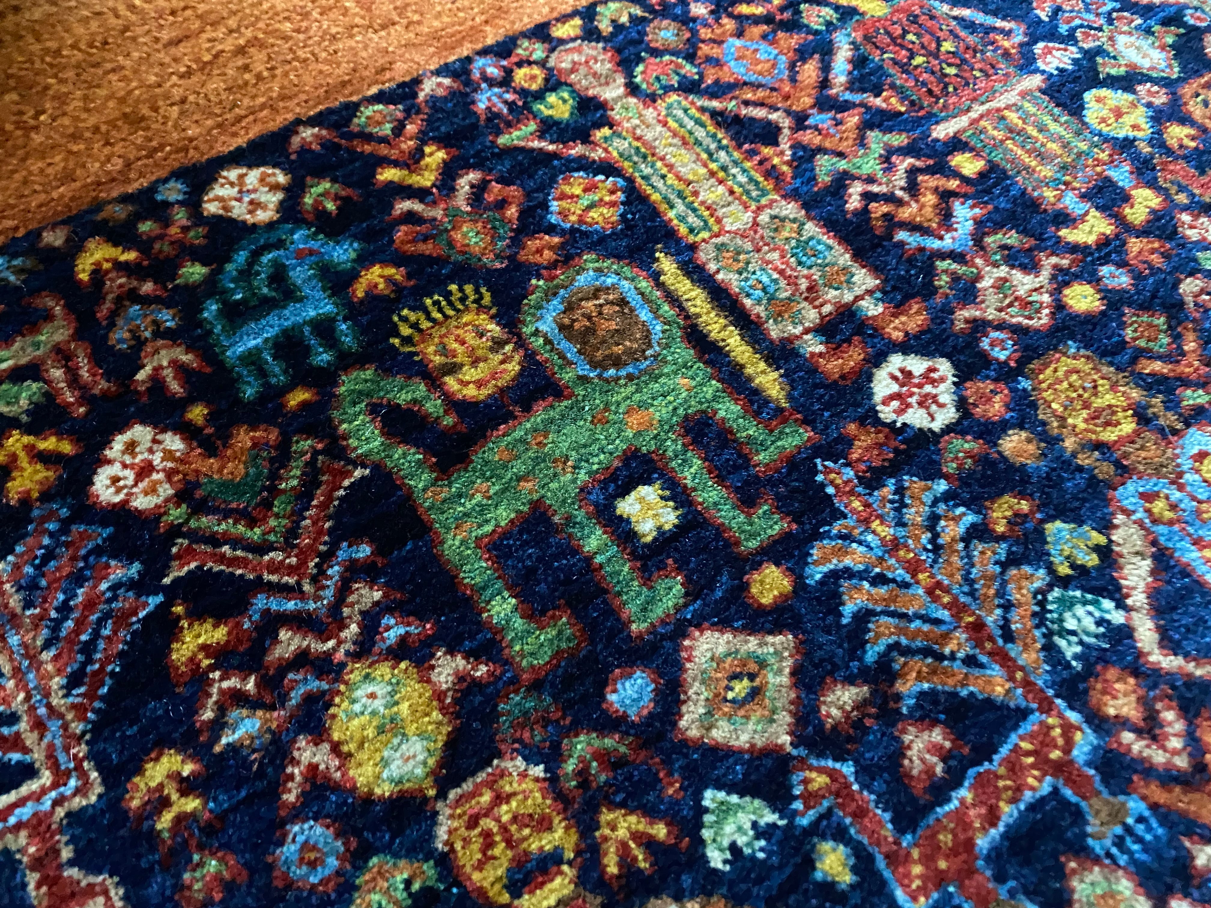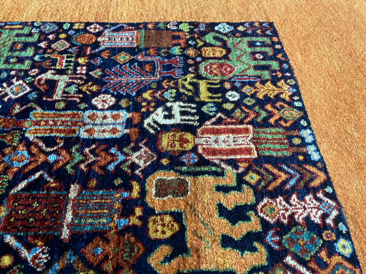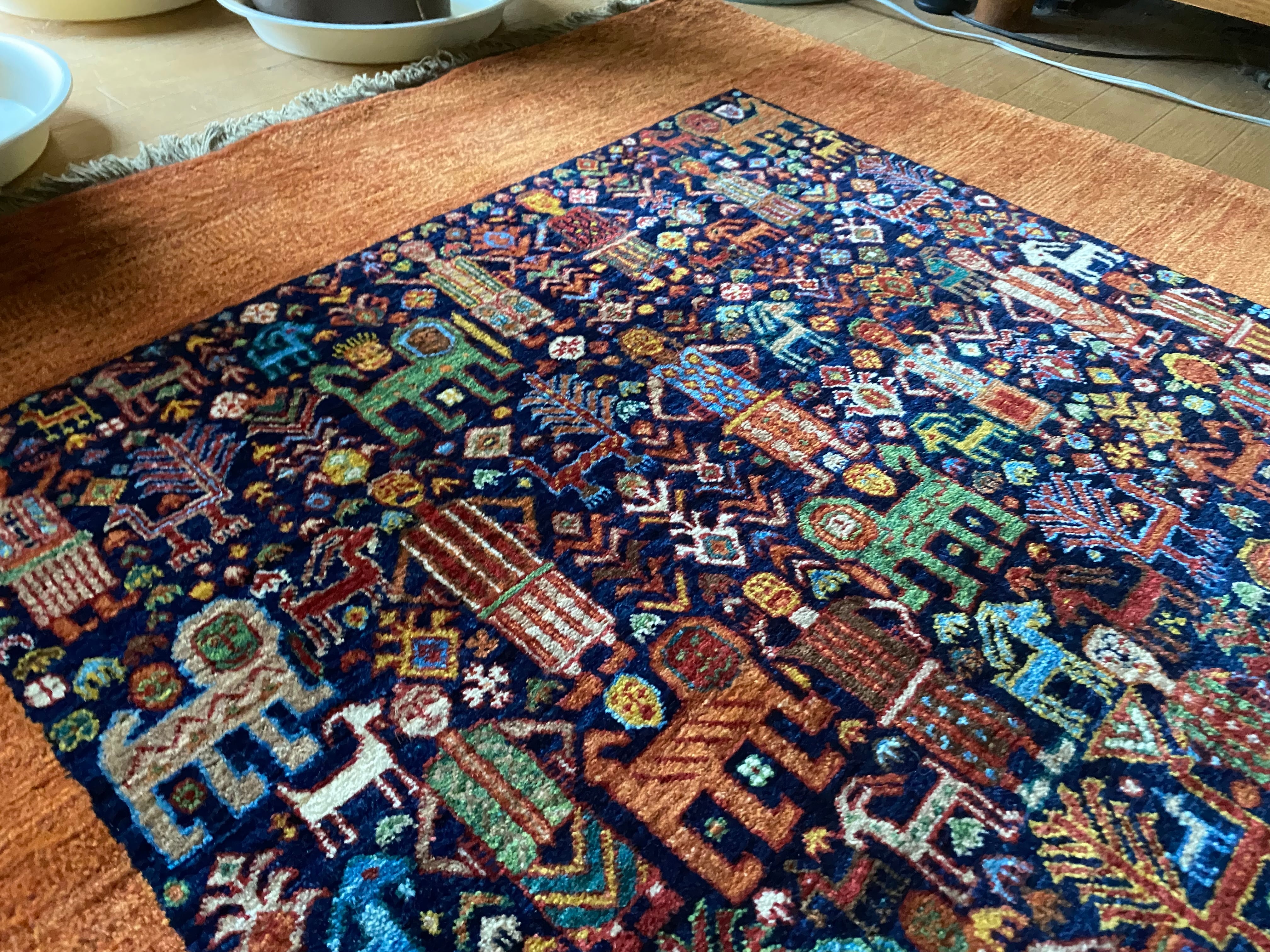 素晴らしい絵画のようなイランギャッベ絨毯ライオンや動物などびっしり細かい織大変貴重なコレクションピース新品未使用品(端に傷みあり)滅多にない逸品良いものをお探しの方へ