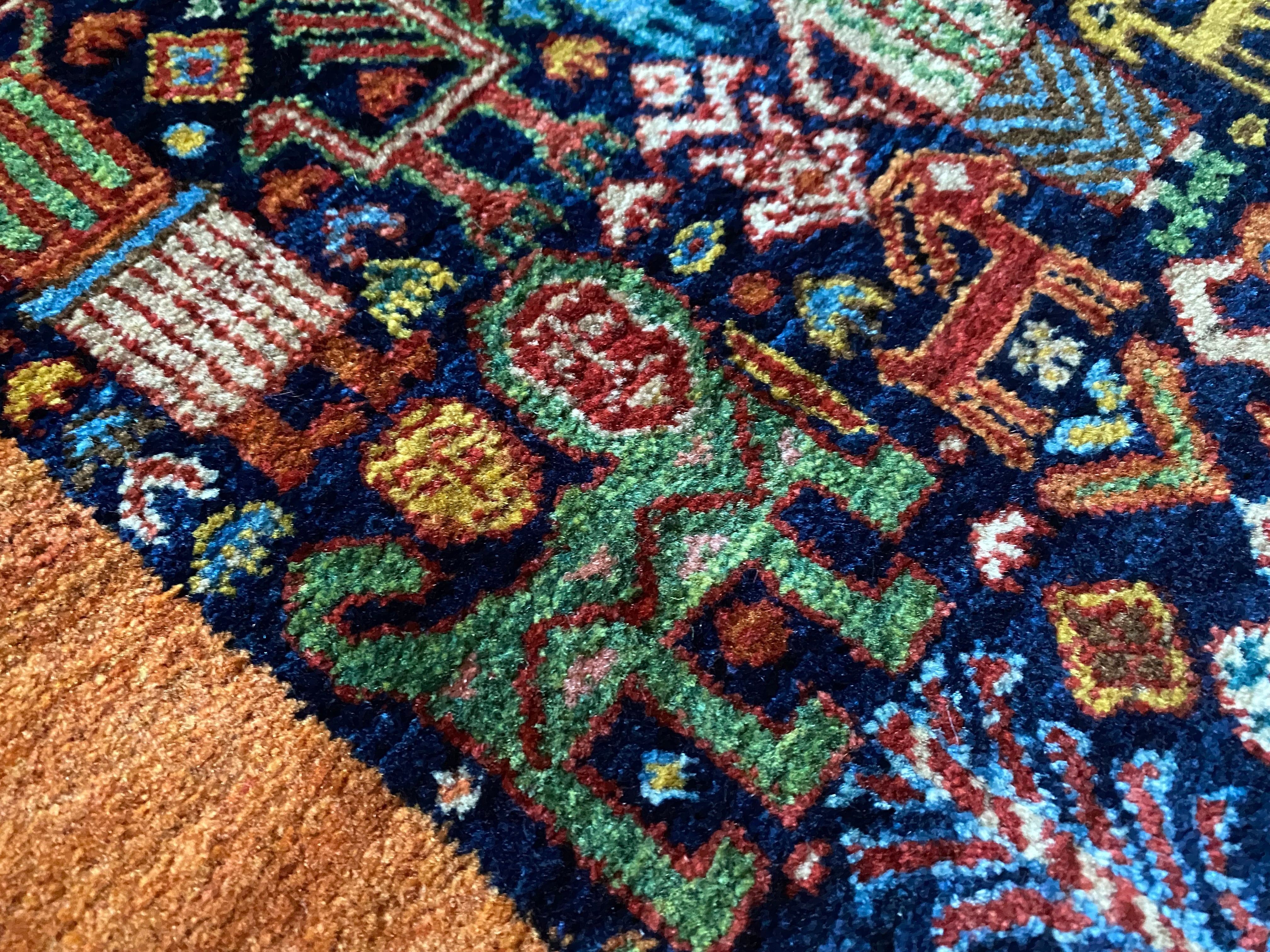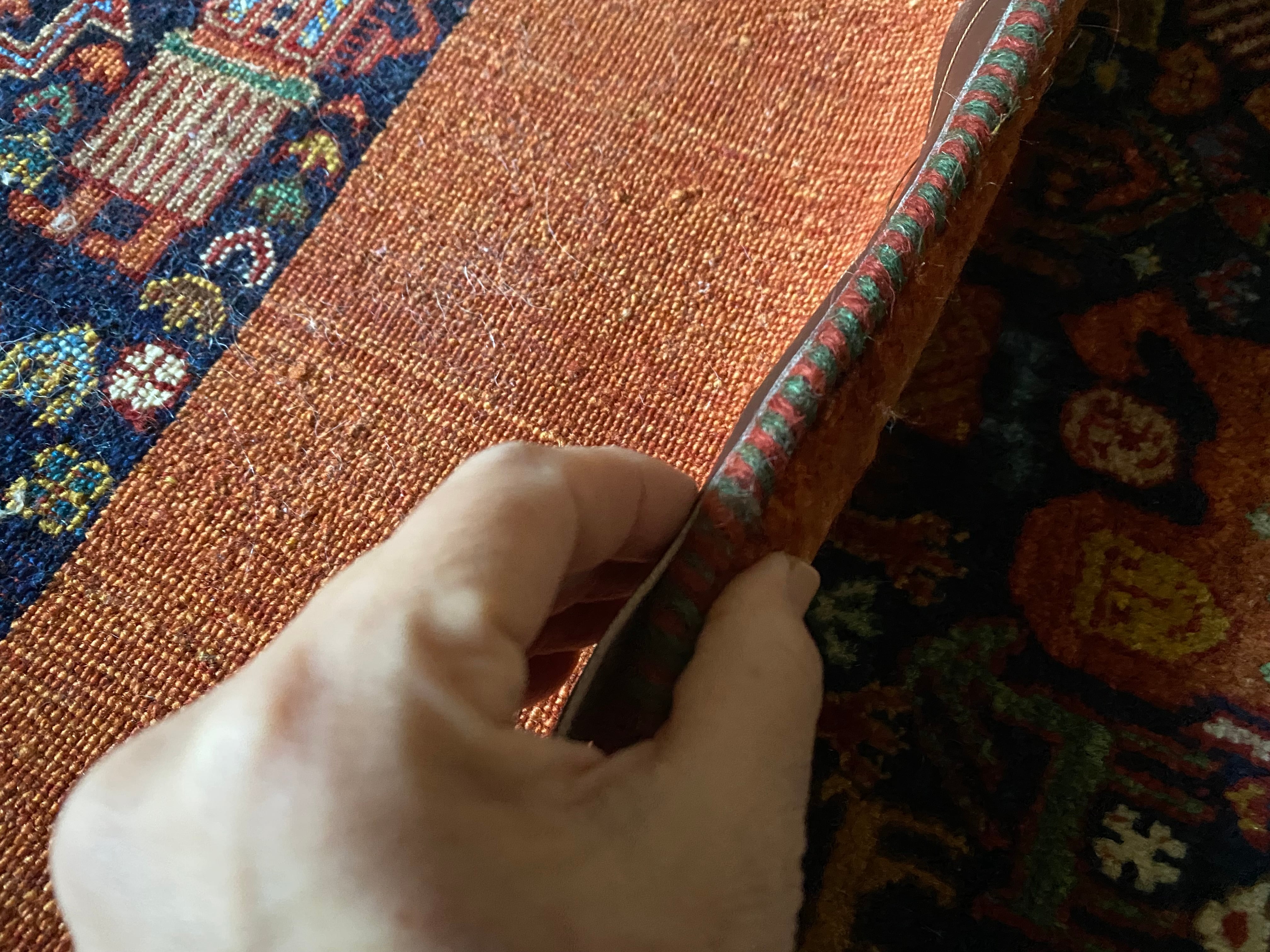 またこちら特にタグなどはついていませんが、1㎝に約6目の大変細かい織りで、柄も本当に細かい素晴らしいものですので、ギャッベのランクとしてはかなり上だと思います。