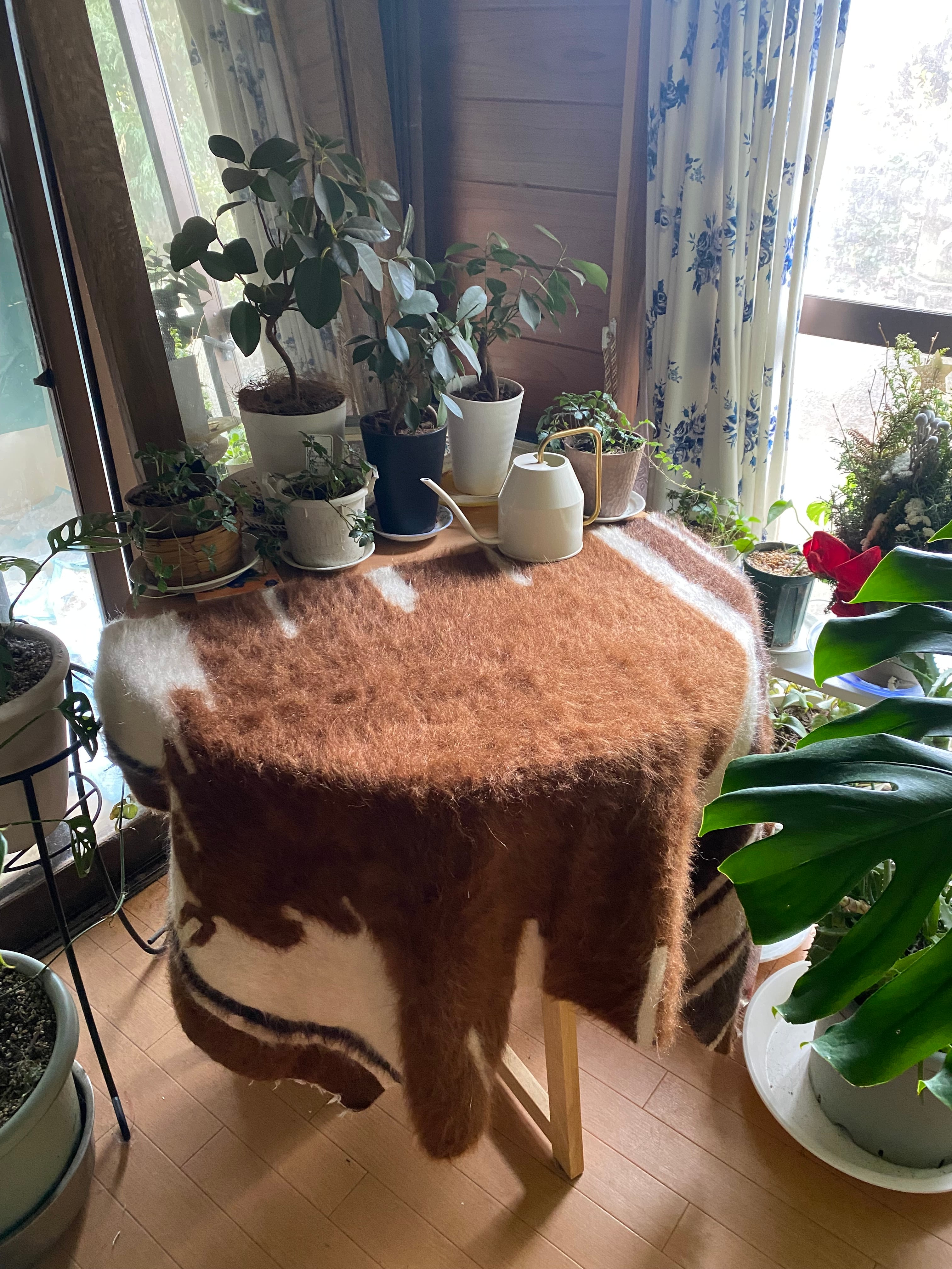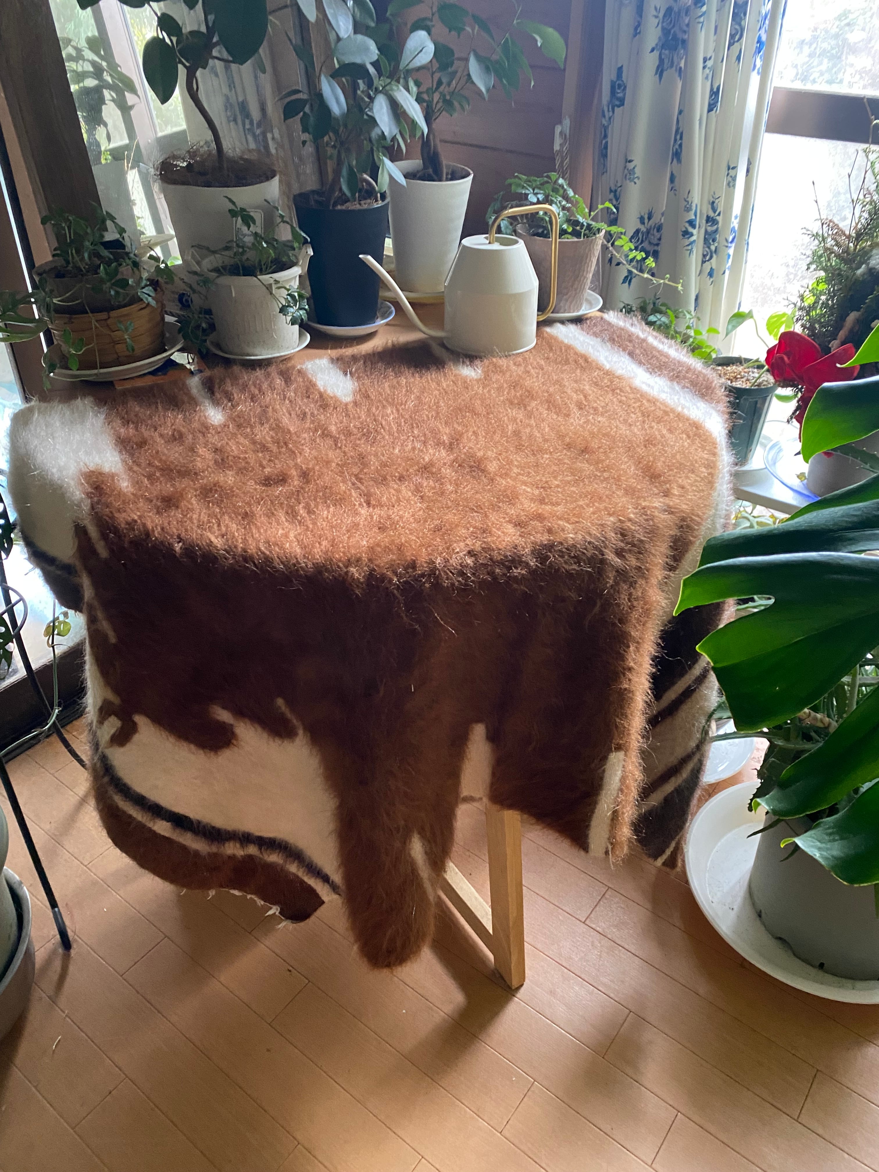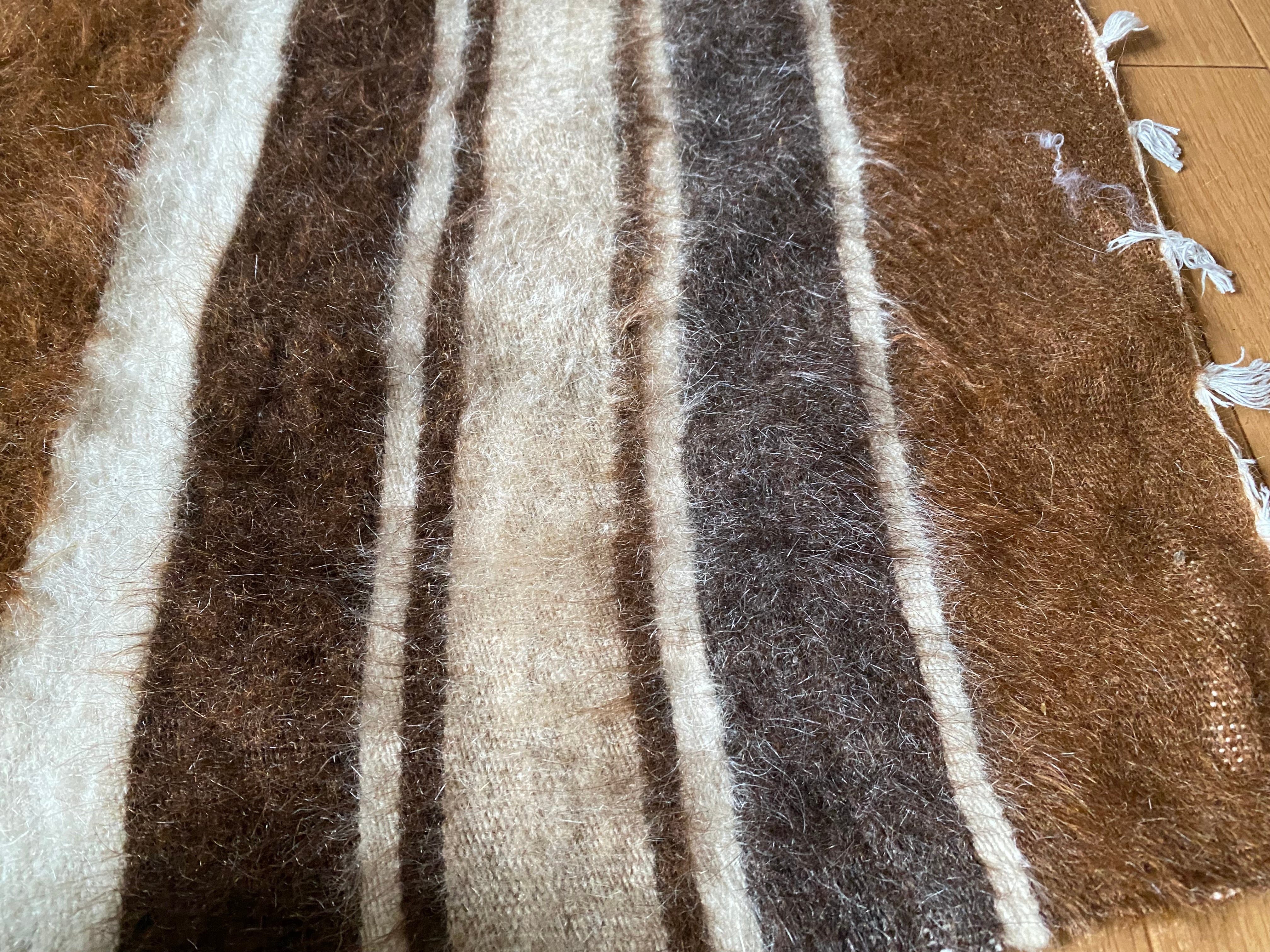 貴重なセミアンティークになります。新しいものにはない細かい柄で唯一無二です。経年でとても上質の柔らかいモヘアです。セミアンティークですので毛が薄くなっている部分もありますのでご了承ください。