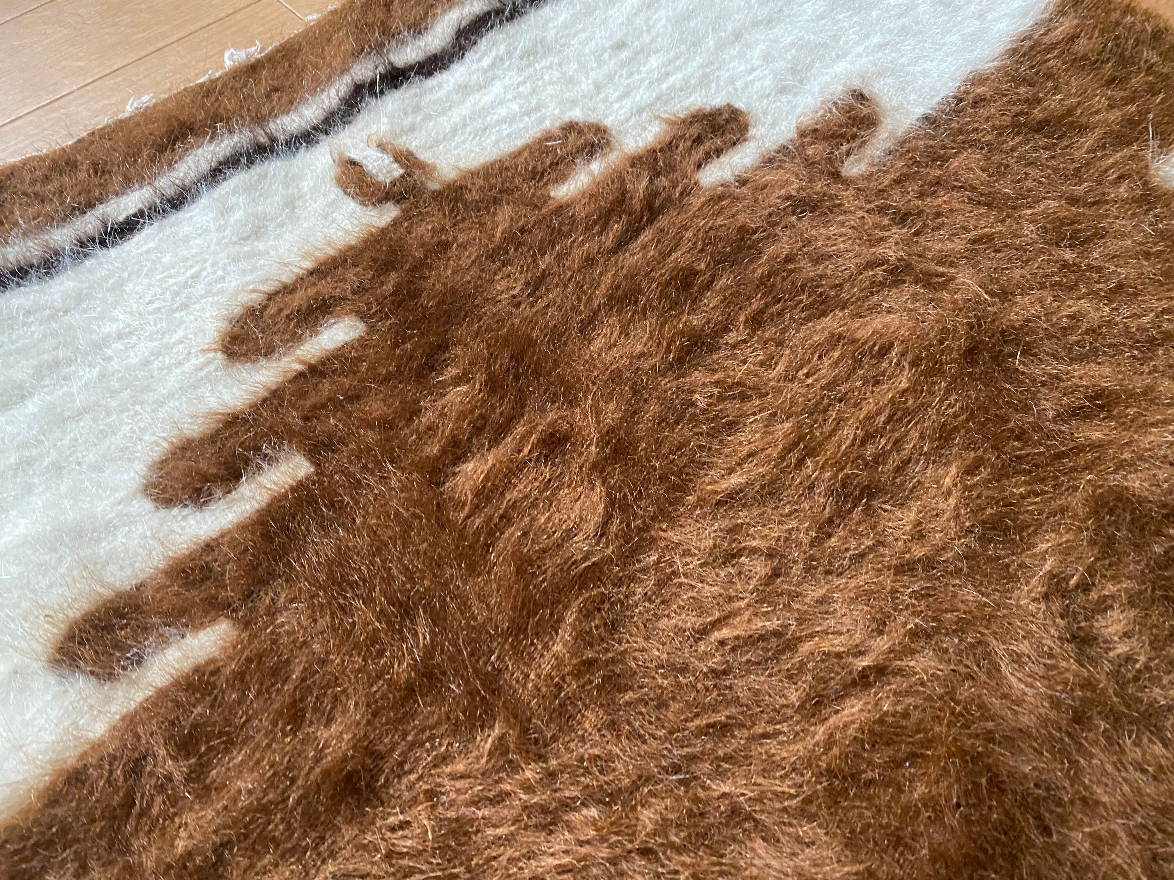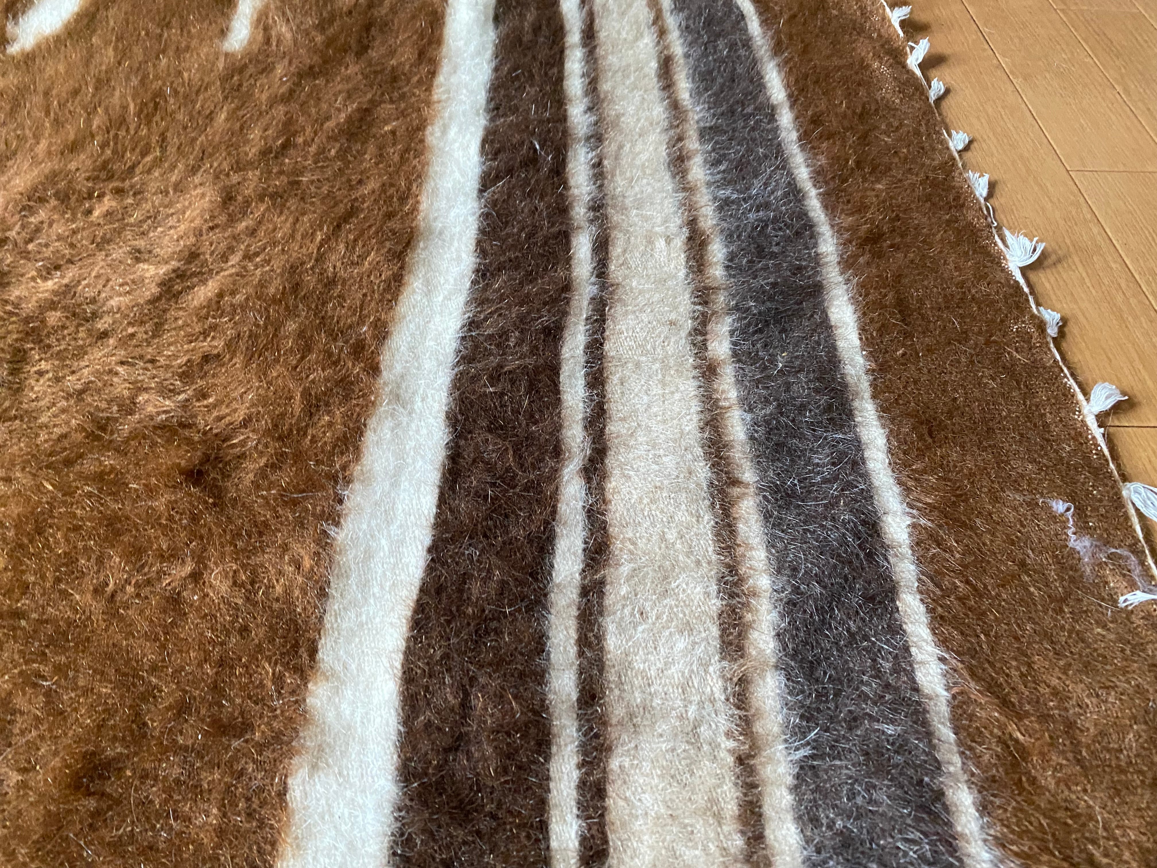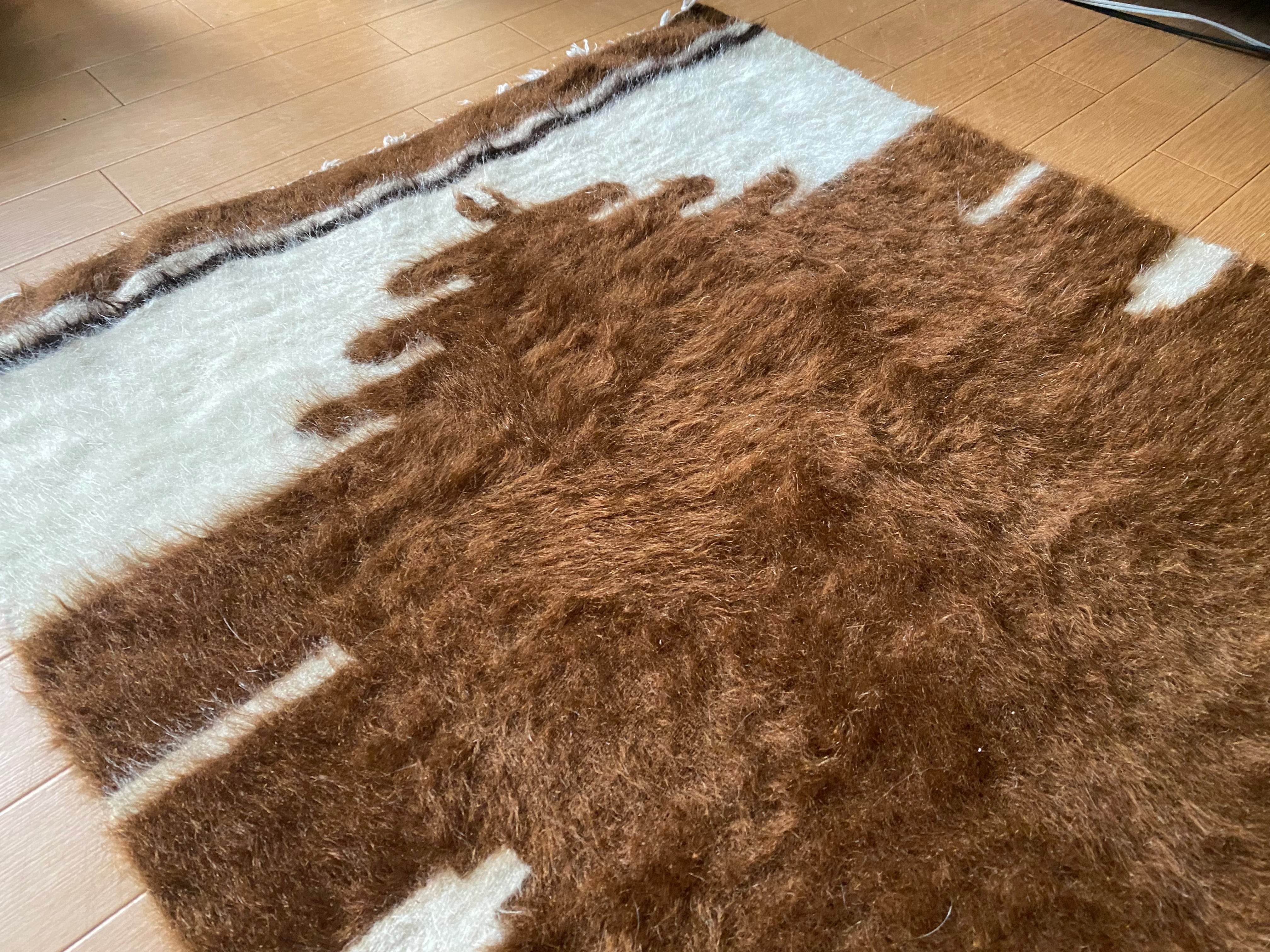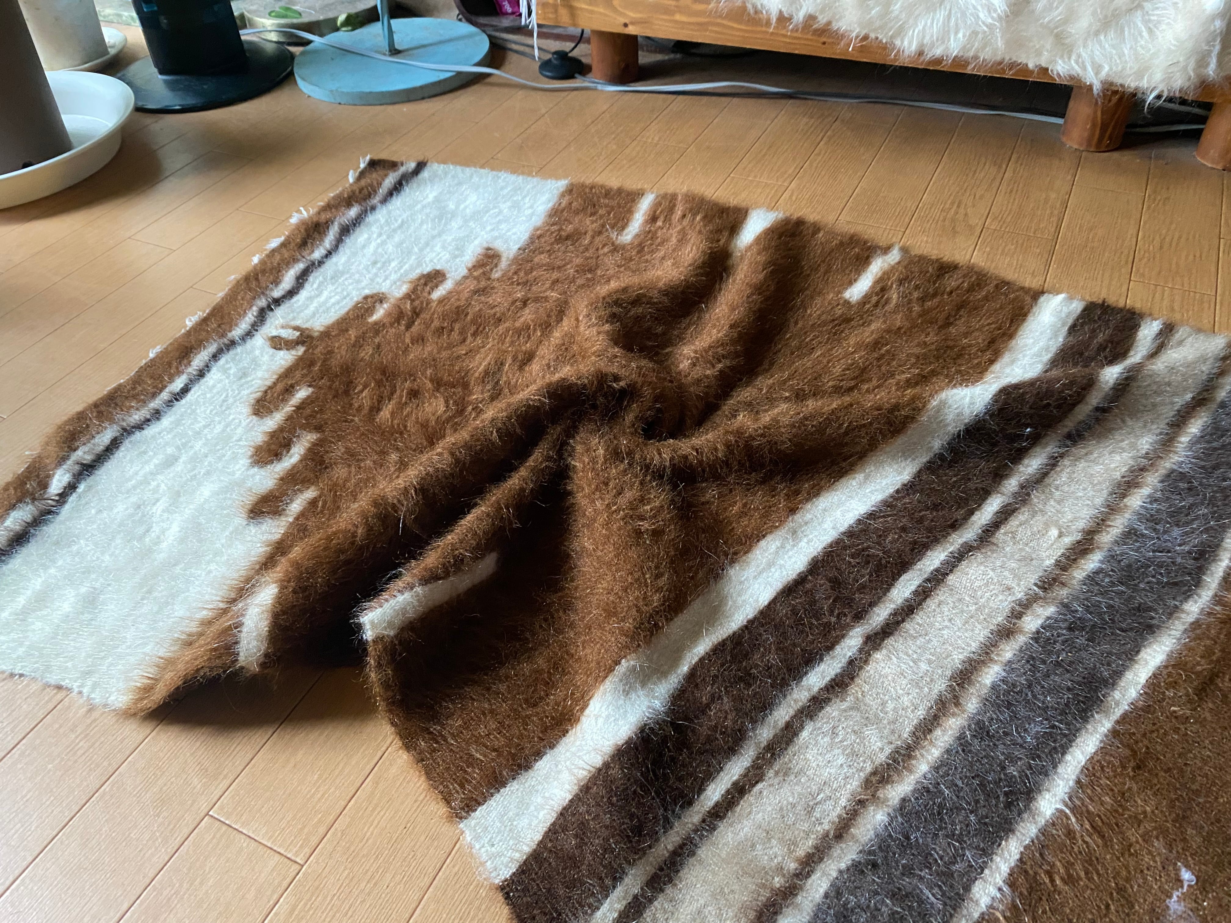 特にアンゴラ山羊からのモヘヤを使って織られているこのシイルトは大変価値も高いもので、艶もあり、素晴らしく温かいです。 自然のアンゴラヤギの毛で織られていますので、独特のくるくるとした感じも可愛く、とてもナチュ ラルな感じです。アンゴラ山羊は18世紀の中ごろまでオスマントルコが飼育を独占していたらしいです。