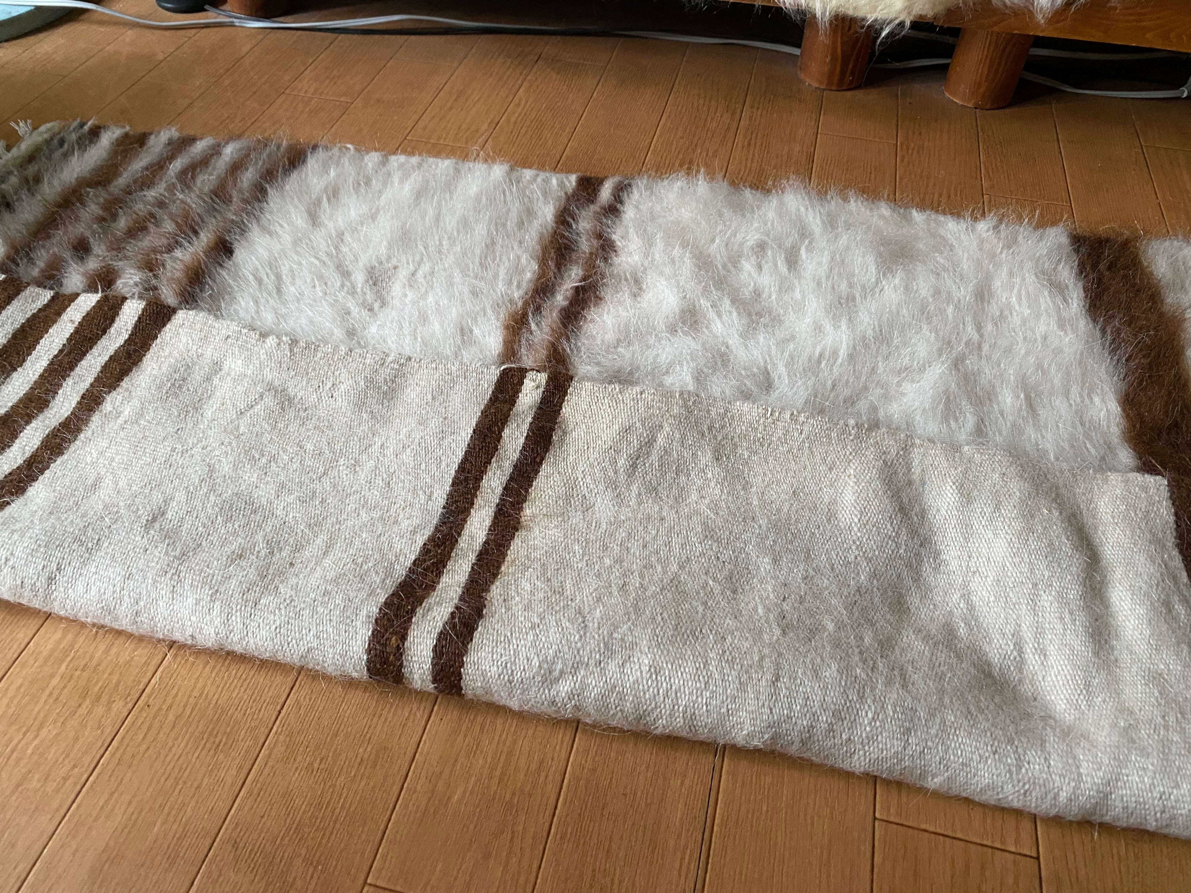 遊牧民によって動物の毛を紡いで織られているため、特に山羊の毛は多少ちくちく感はございます。