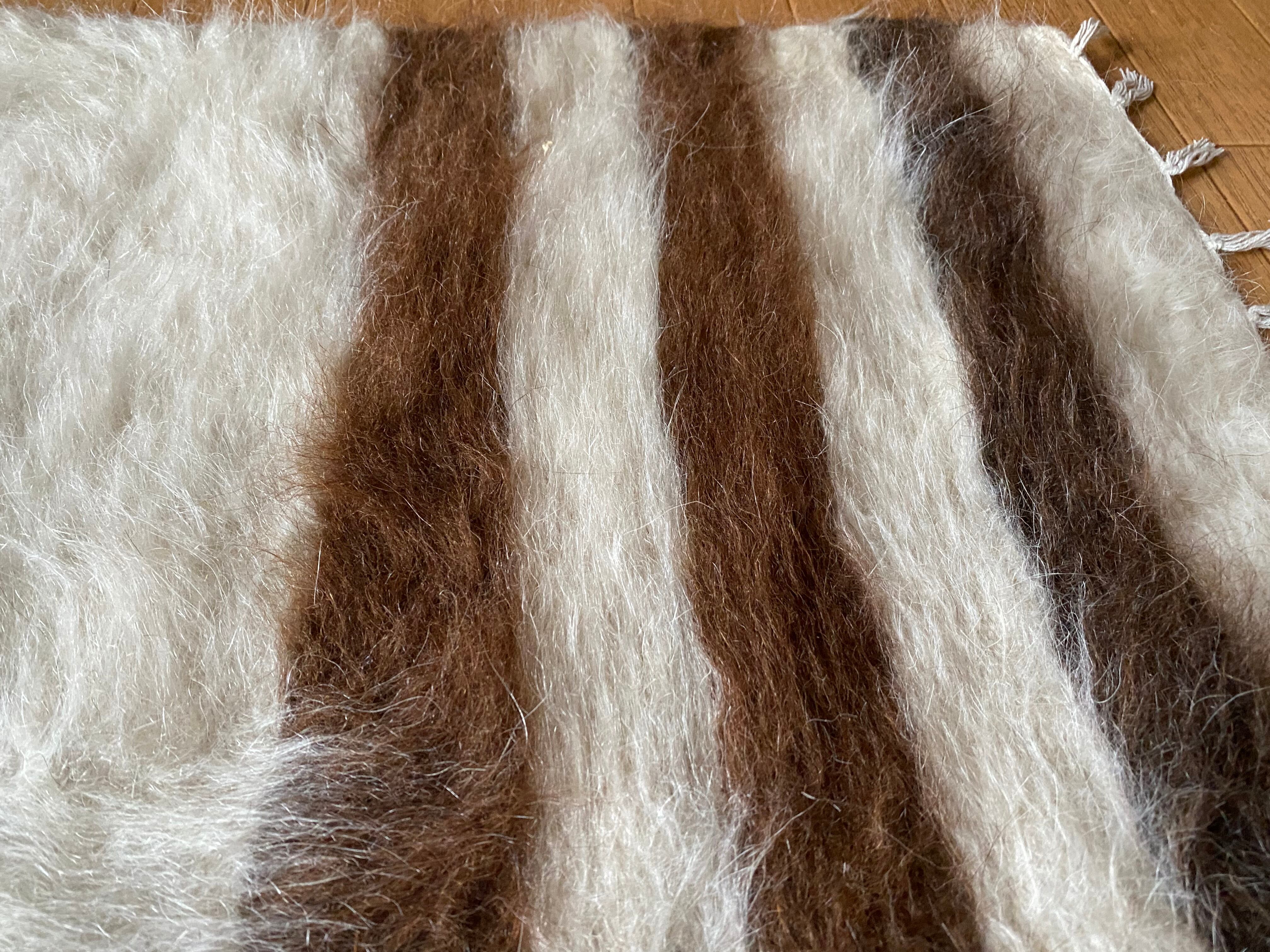 特にアンゴラ山羊からのモヘヤを使って織られているこのシイルトは大変価値も高いもので、艶もあり、素晴らしく温かいです。 自然のアンゴラヤギの毛で織られていますので、独特のくるくるとした感じも可愛く、とてもナチュ ラルな感じです。アンゴラ山羊は18世紀の中ごろまでオスマントルコが飼育を独占していたらしいです。