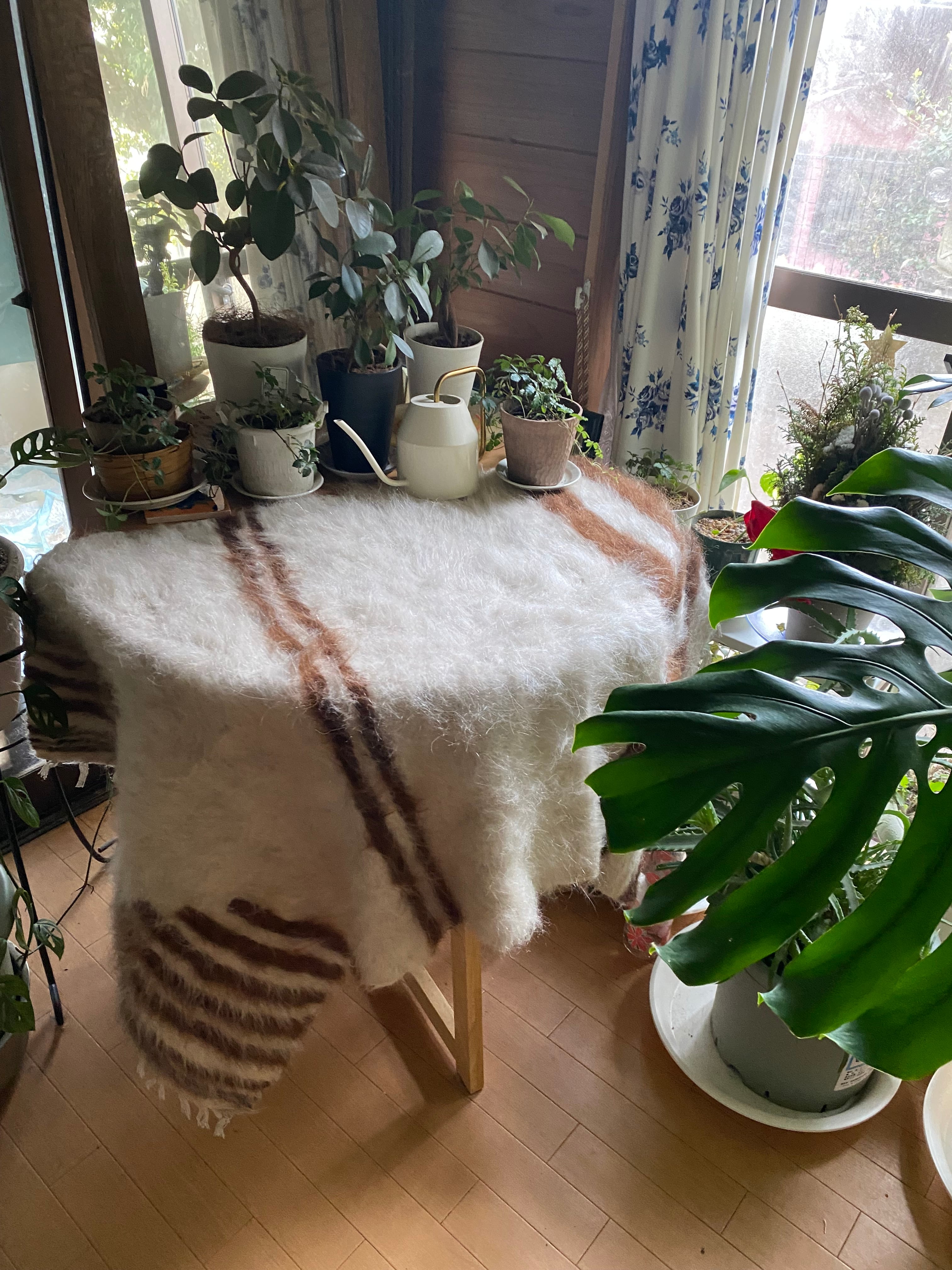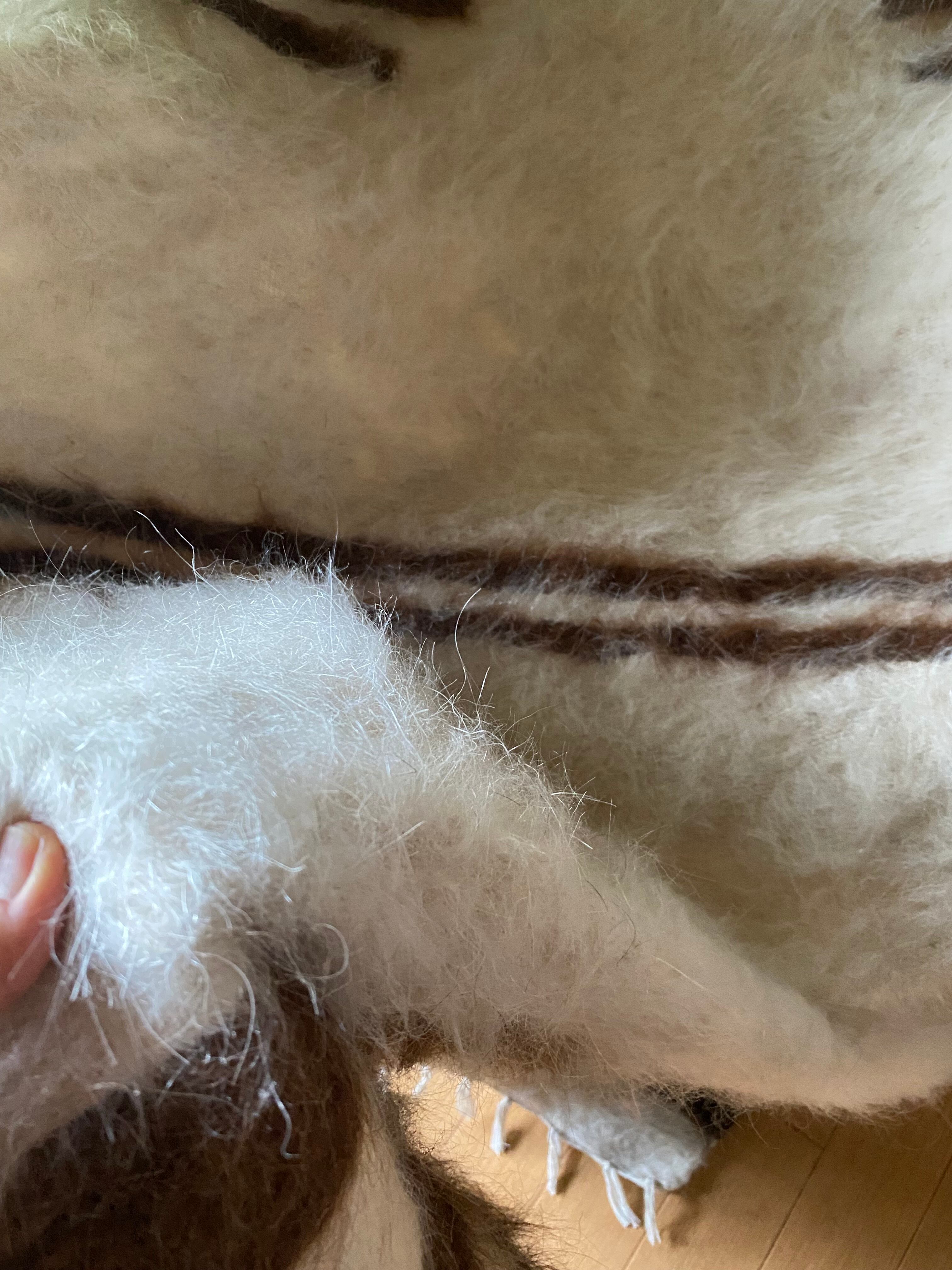 自然の山羊の毛を手で紡いだものが使われていますので、たまーにもみ殻がたまについていたり木の破片みたいなものが稀に織り込まれていることがありますので、ご了承ください。 できるだけ検品して取り除いていますが取り切れないこともありますのでご了承ください。