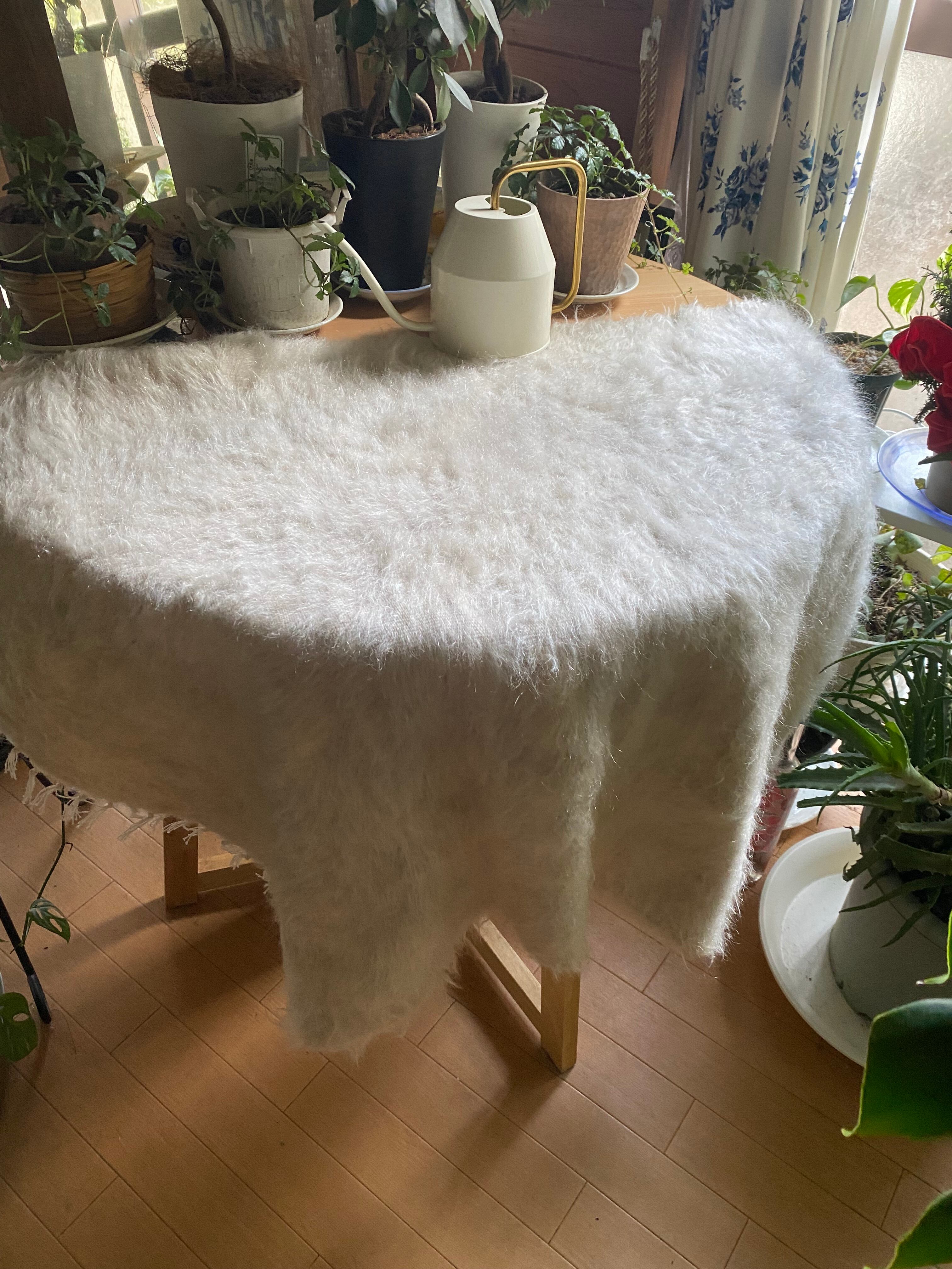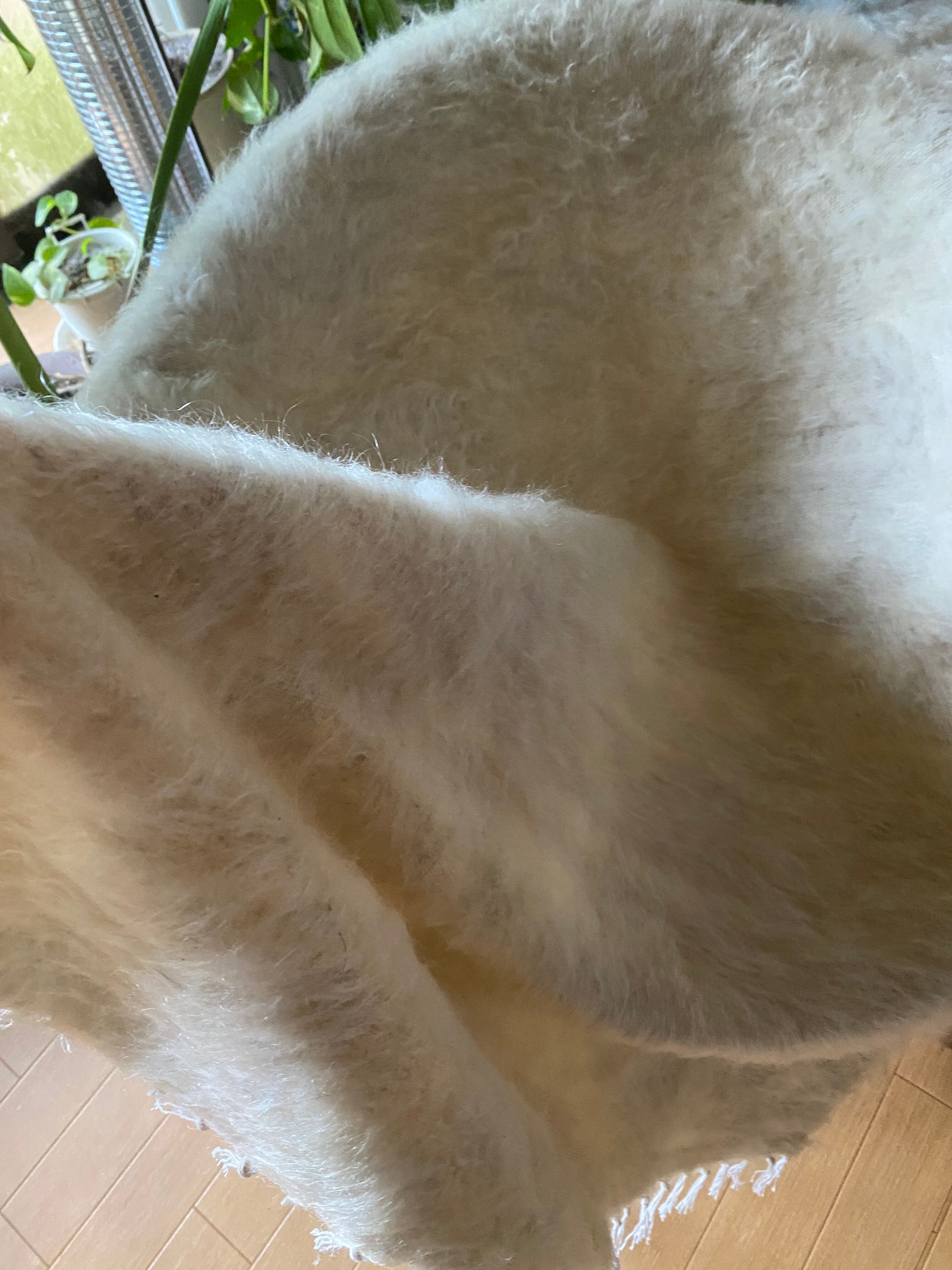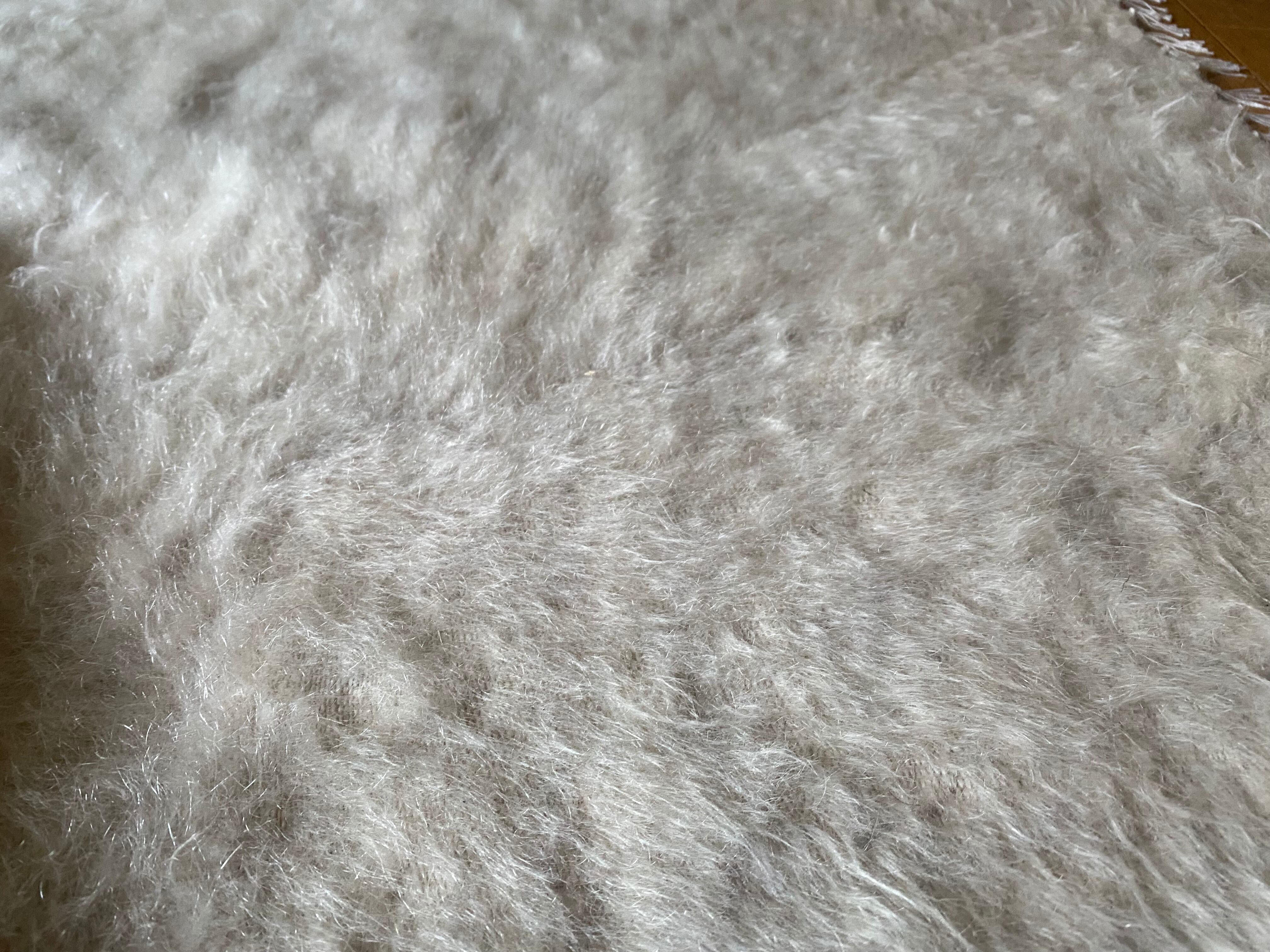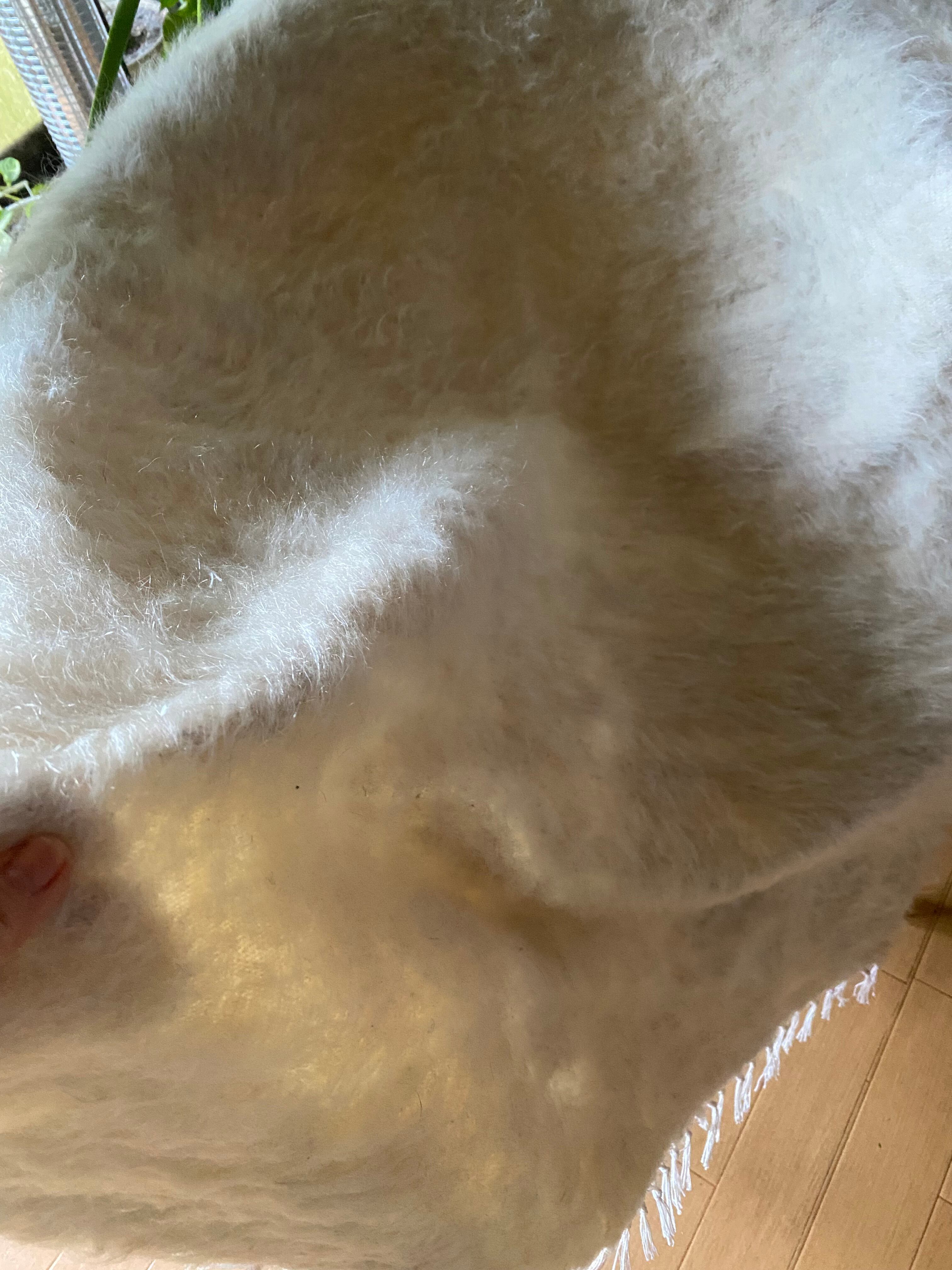 ご専用品ご予約品です。白いヴィンテージシイルトバッタニイェ!アンゴラヤギのモヘア100で織られたふわふわの毛布!ラグや膝掛け車にもあると便利!少し小さめリーズナブルな使いやすい白いシイルトバッタニイェです!動物を傷つけない優れもの!当店27年現地直輸入卸売価格