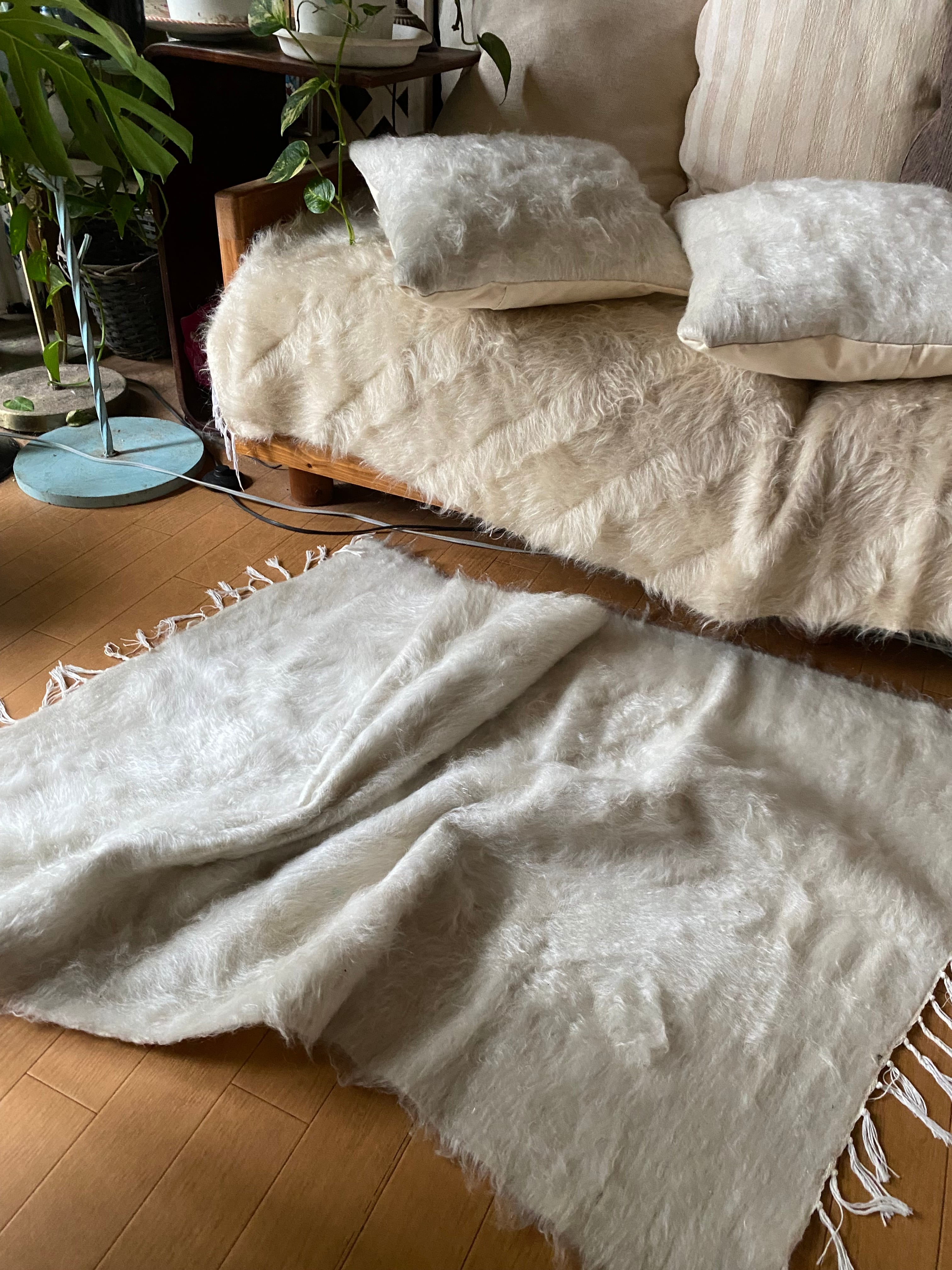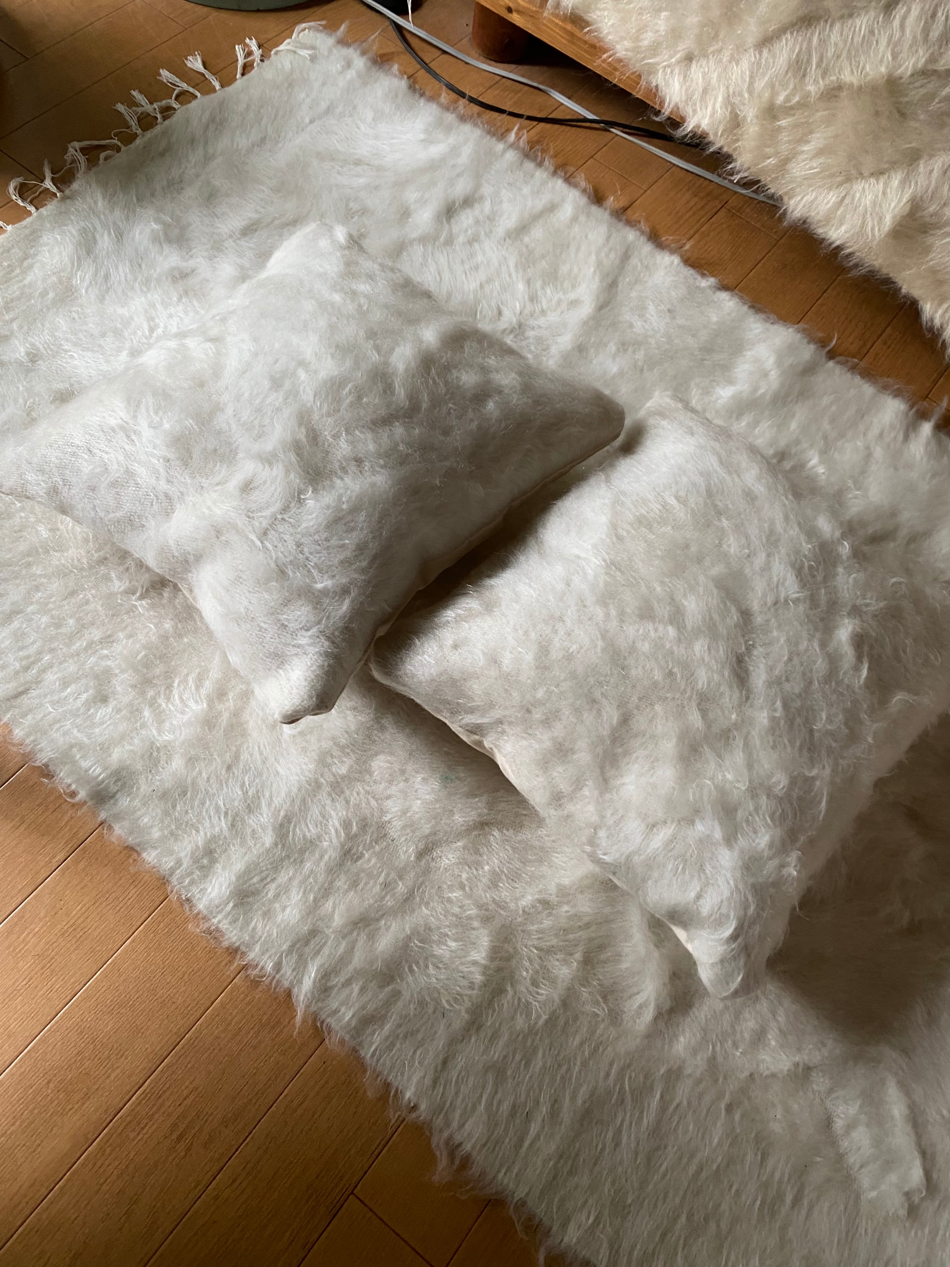 ご専用品中身付きアンゴラヤギのモヘアの手織物シイルトバッタニイェとクッションカバー2枚の超お得なセット!シイルトバッタニイェを知ってください!数量、期間限定!動物を傷つけない人にもペットにも優しいふわふわの毛布!ラグや椅子やソファにふわっとかけても!お勧め