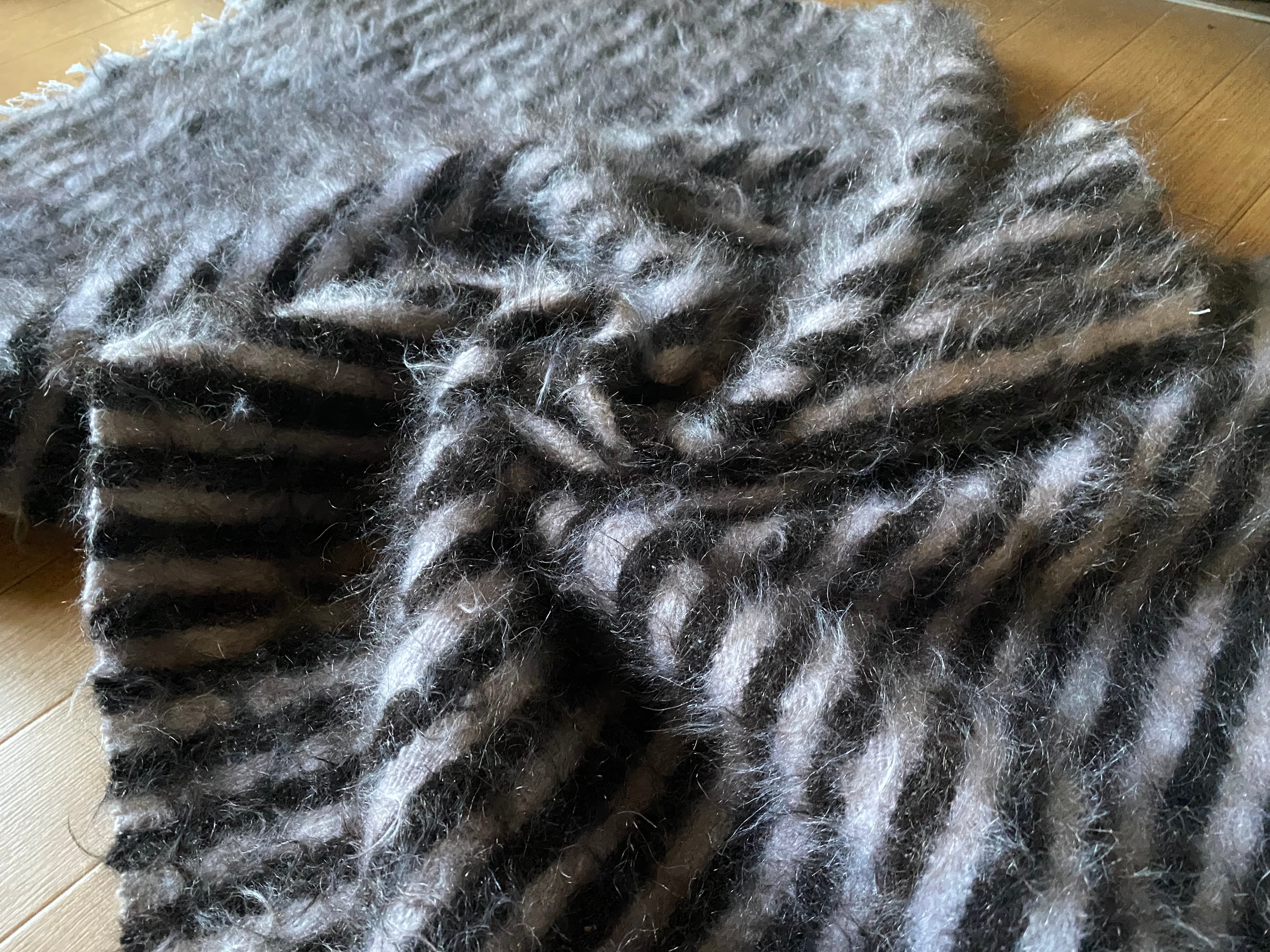 自然の山羊の毛を手で紡いだものが使われていますので、たまーにもみ殻がたまについていたり木の破片みたいなものが稀に織り込まれていることがありますので、ご了承ください。 できるだけ検品して取り除いていますが取り切れないこともありますのでご了承ください。