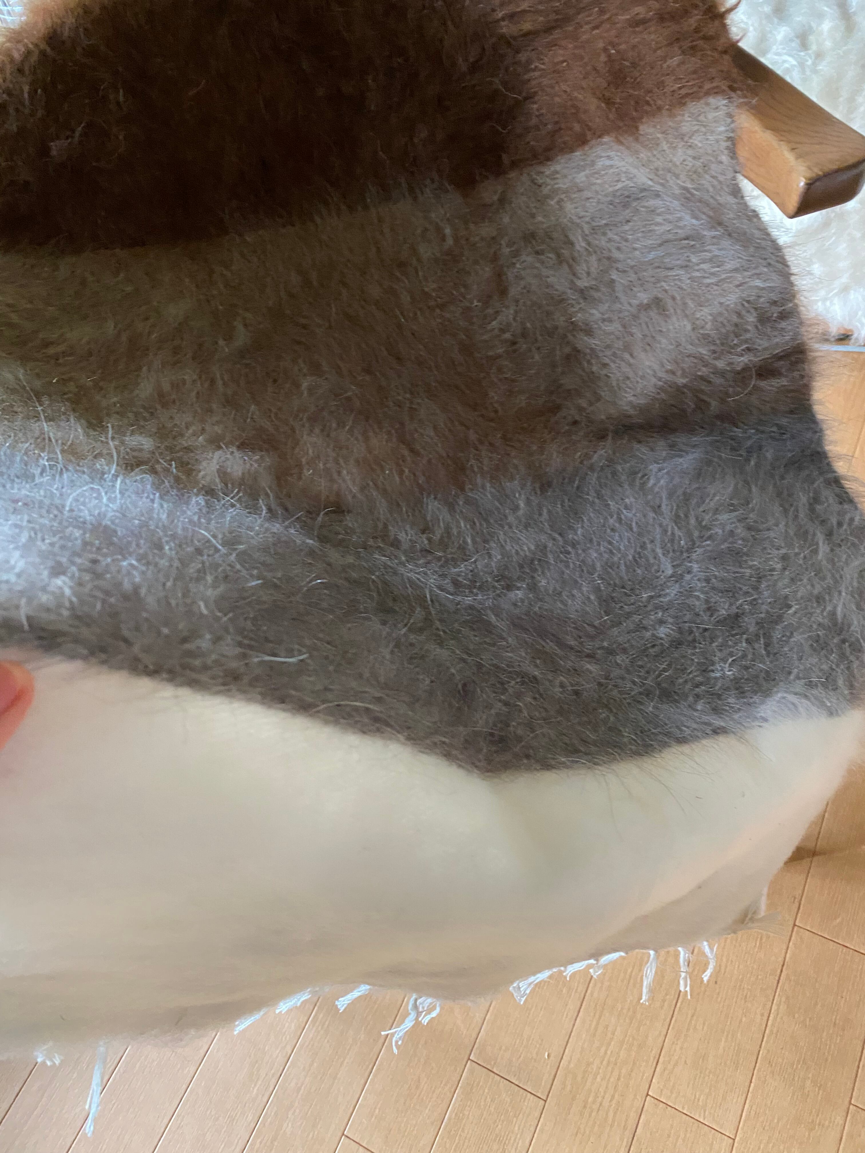 また、毛をけば立てて幾何学模様が入っておりますが、ウールではこのような毛羽立ちの模様はできないそうです。