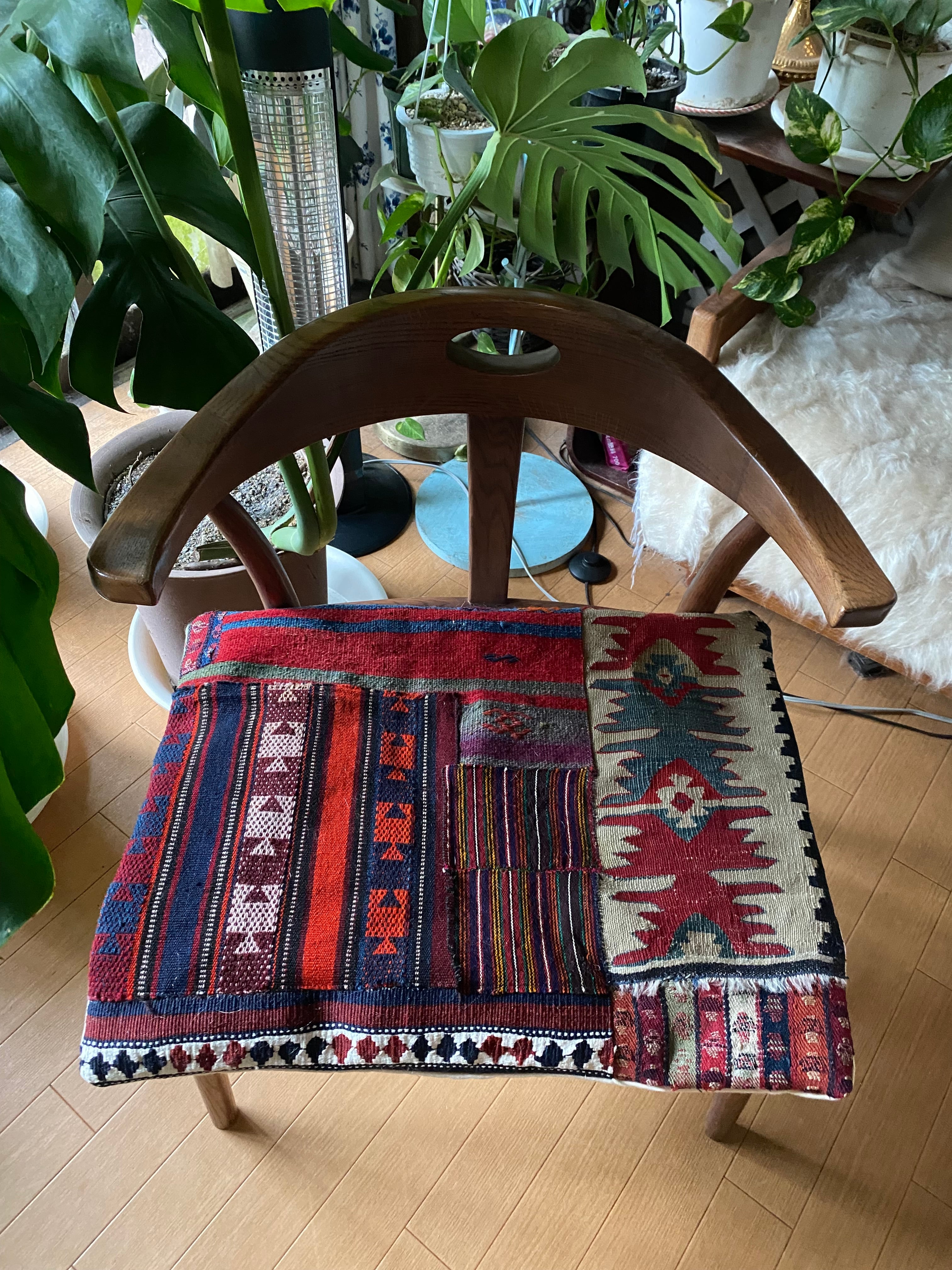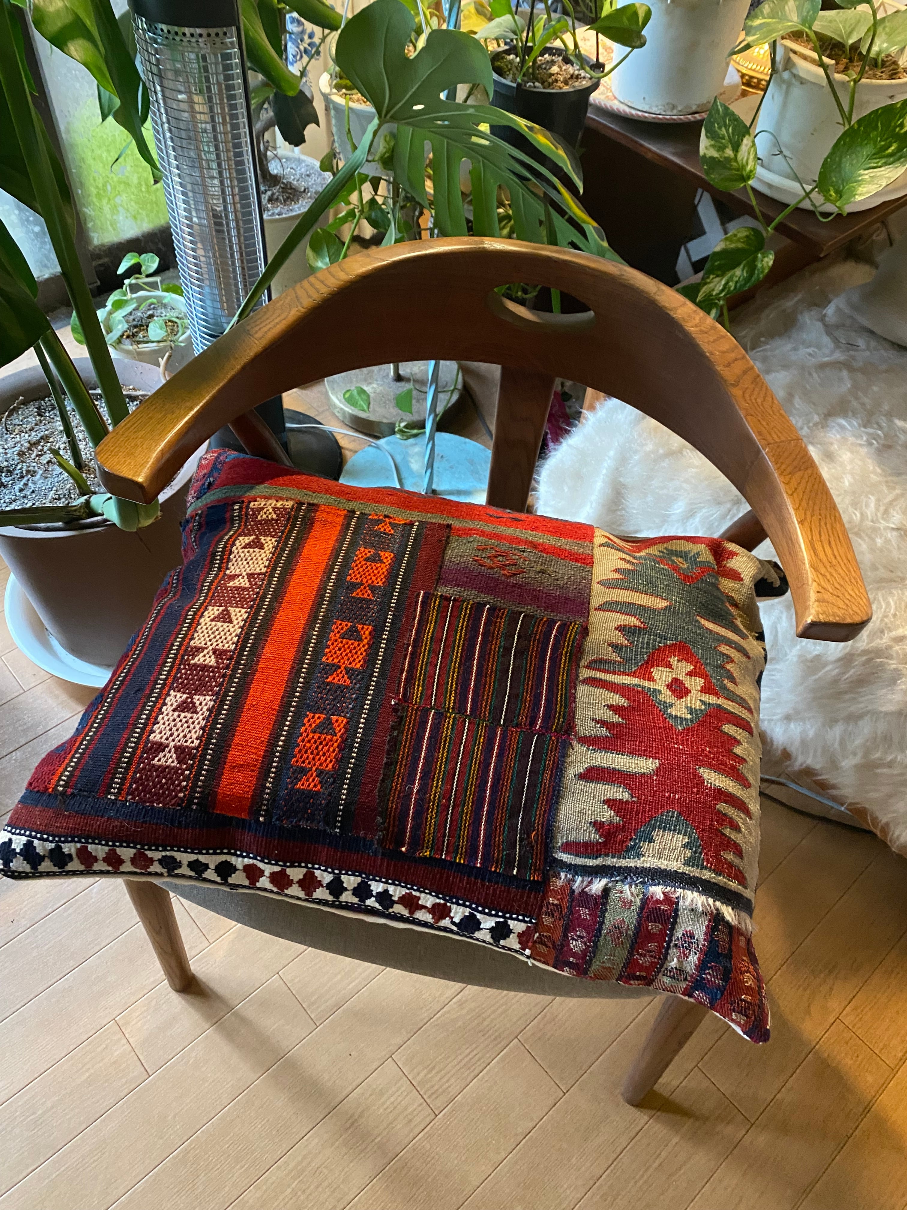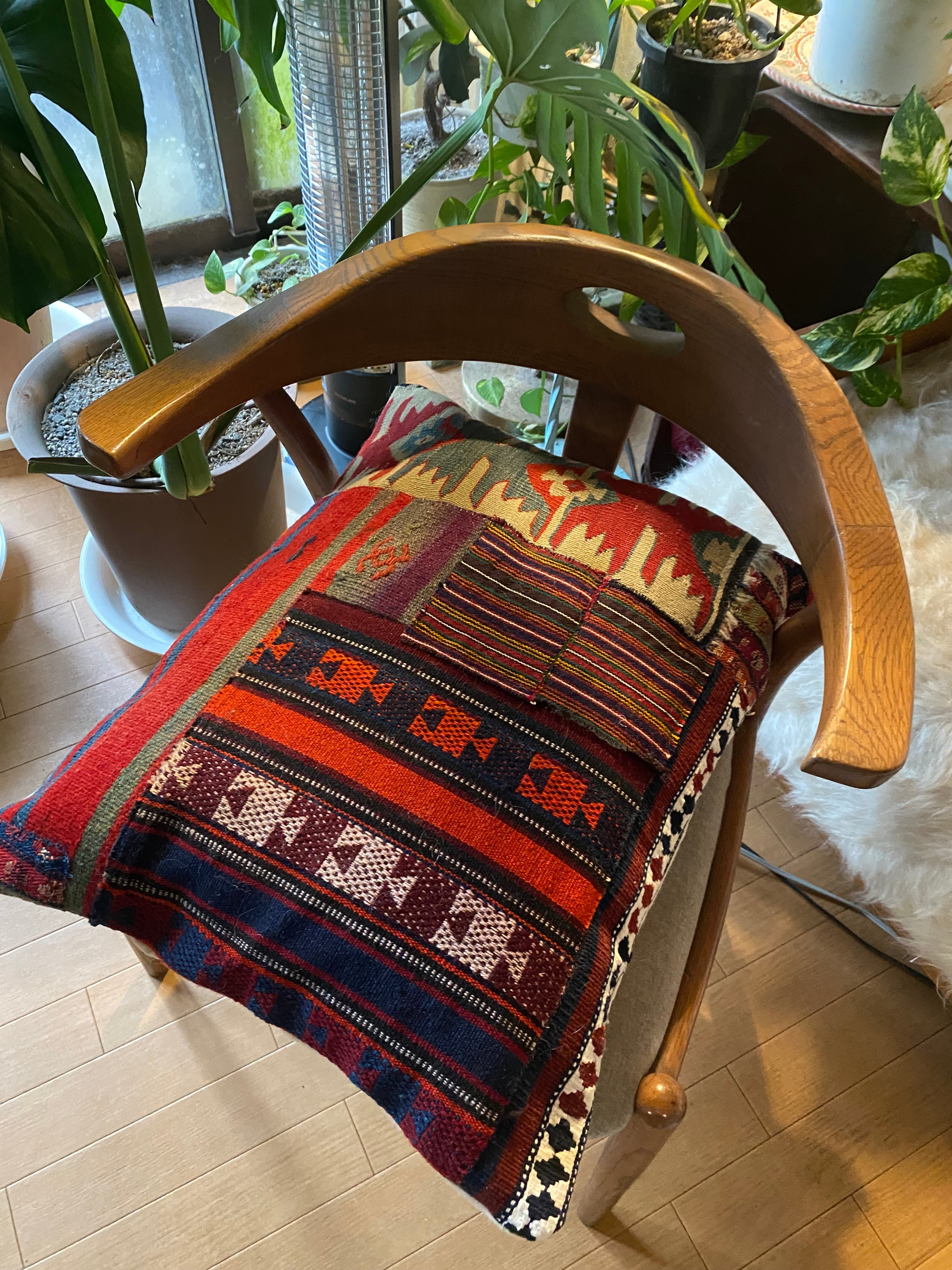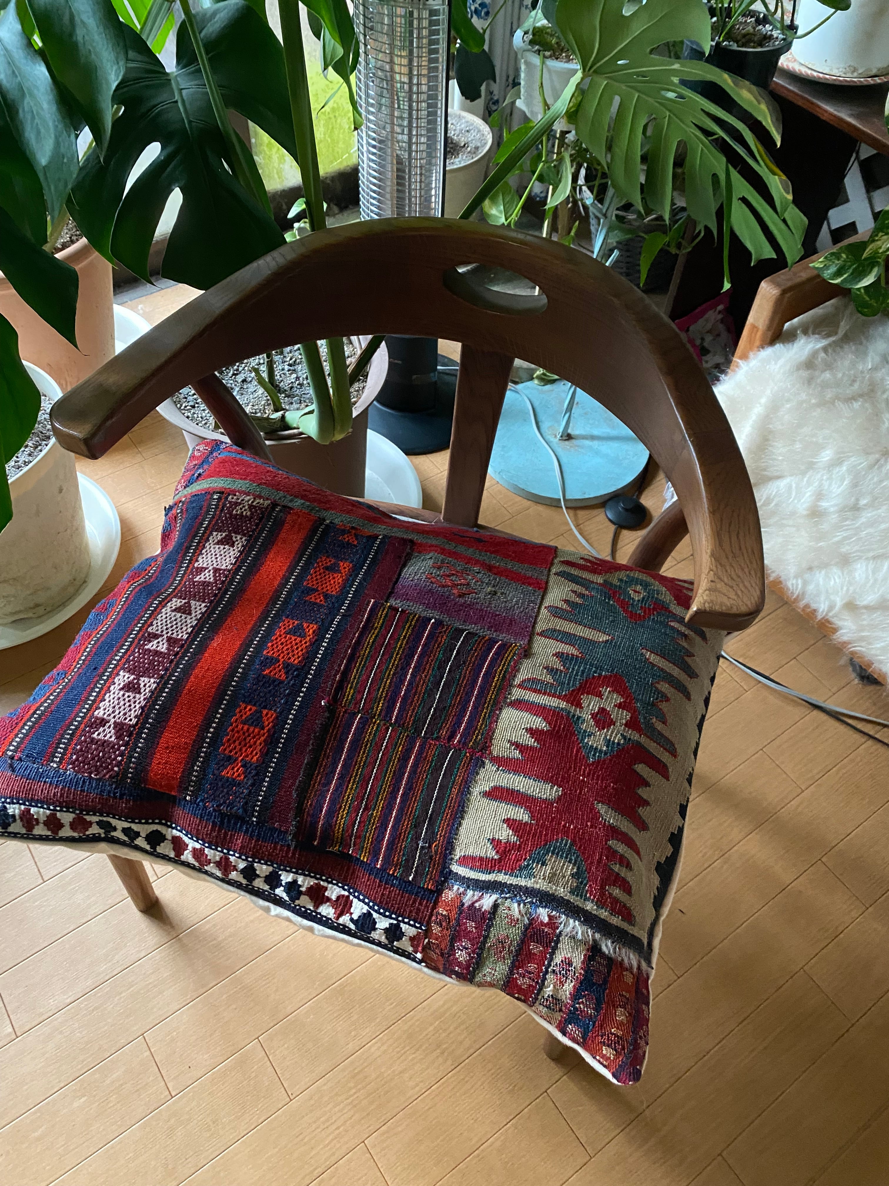 クッションカバーだけではなく、中身を入れずにソファに置いたり、椅子に置いたり、ティーマットなどにもお使いいただけます。 世界に一つの素晴らしい総草木染パッチワーククッションカバー如何でしょうか? キリム部分の裏地はコットンリネンをつかっています。またファスナーのついた裏布は織りにもこだわったオーガニックコットンの帆布を使用しています。