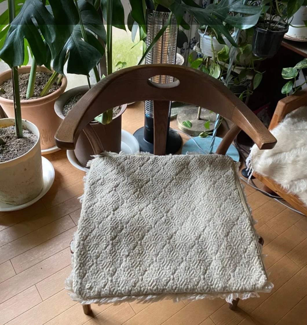 この織物は羽織ったり、ラグにしたり、ソファや椅子に使ったり