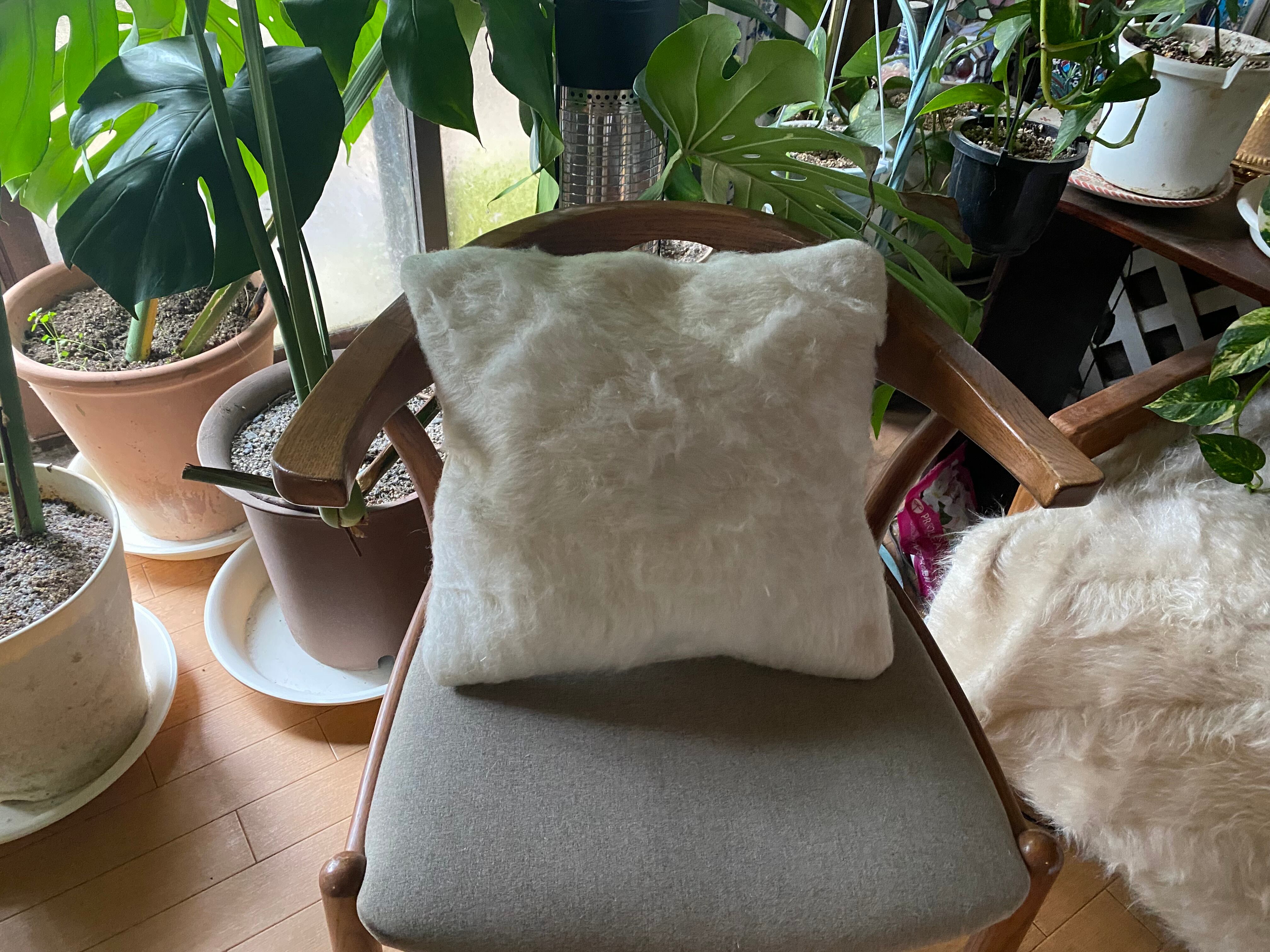 特に毛足の長いふわふわのシイルトバッタニイェでつくりました!当店オリジナルシイルトバッタニイェクッションカバー37×40