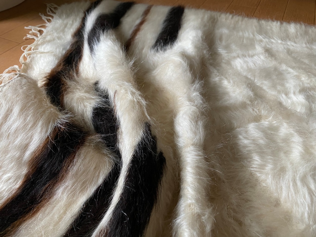 新しいものにはない細かい柄で唯一無二です。経年でとても上質の柔らかいモヘアです。