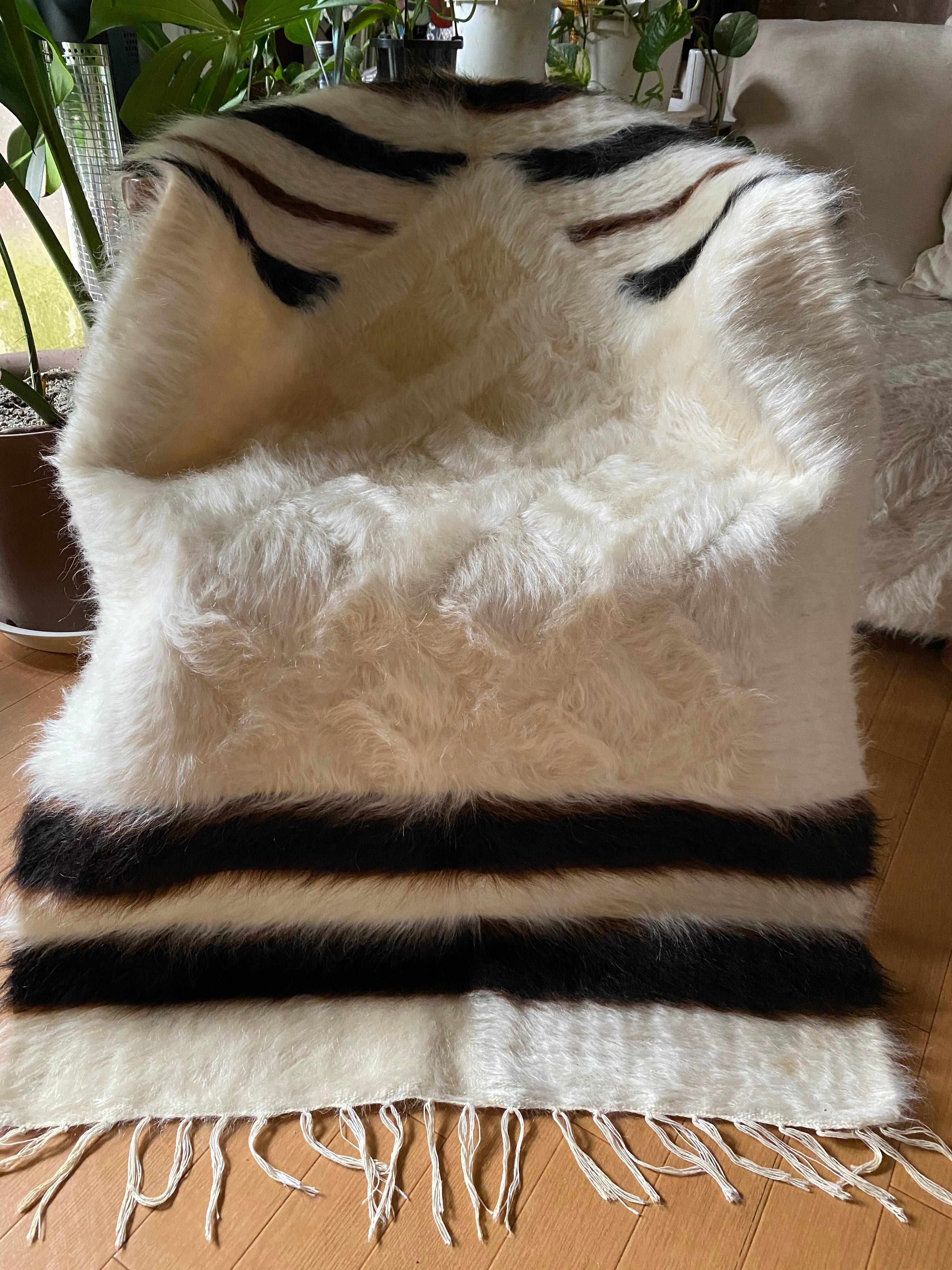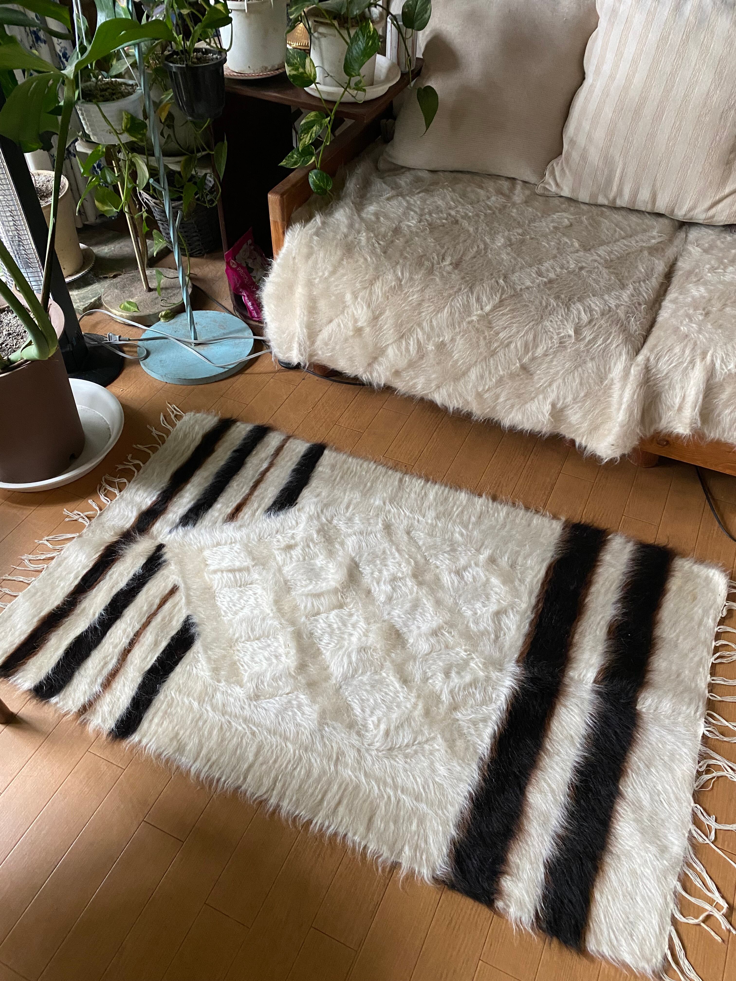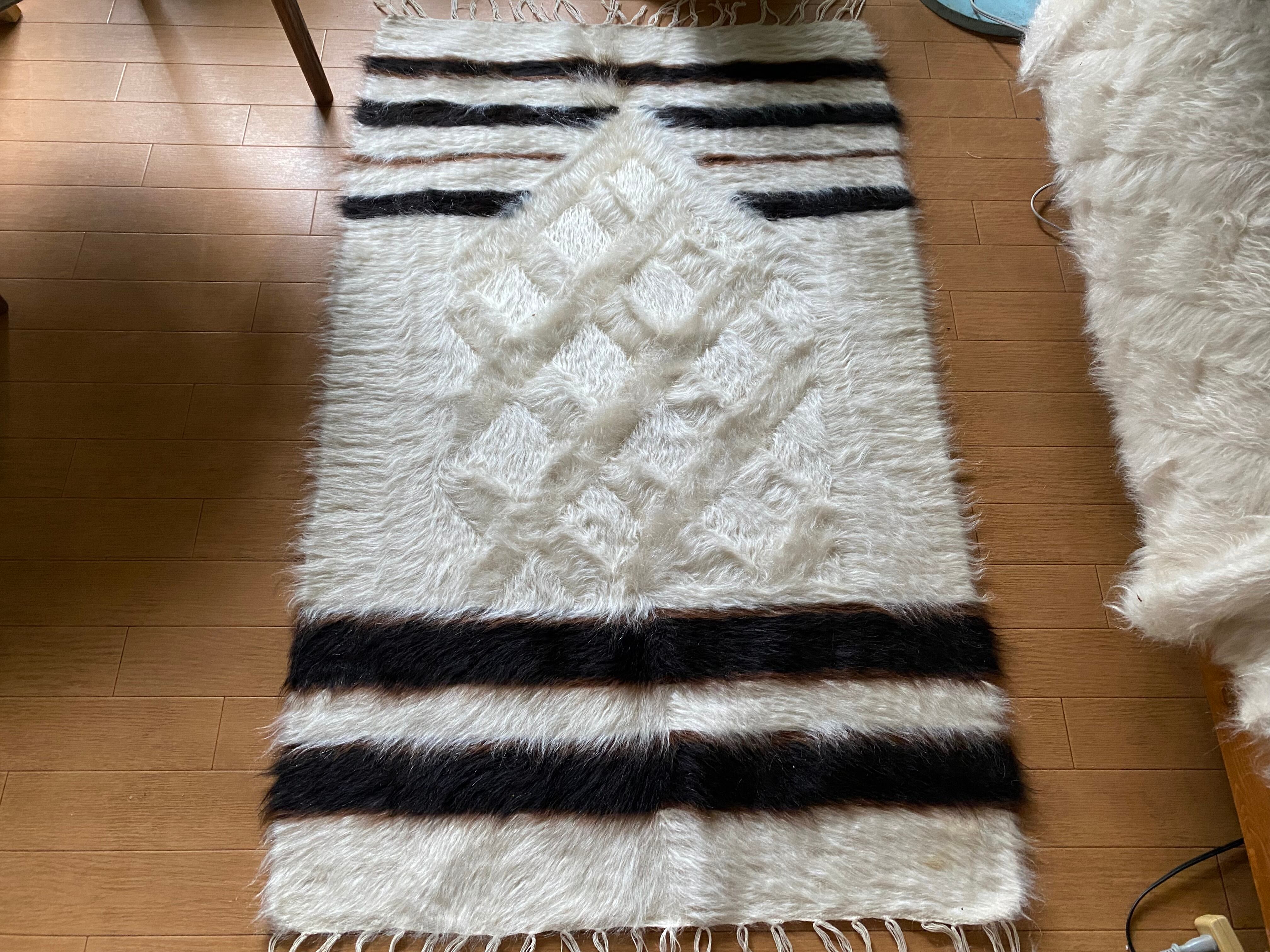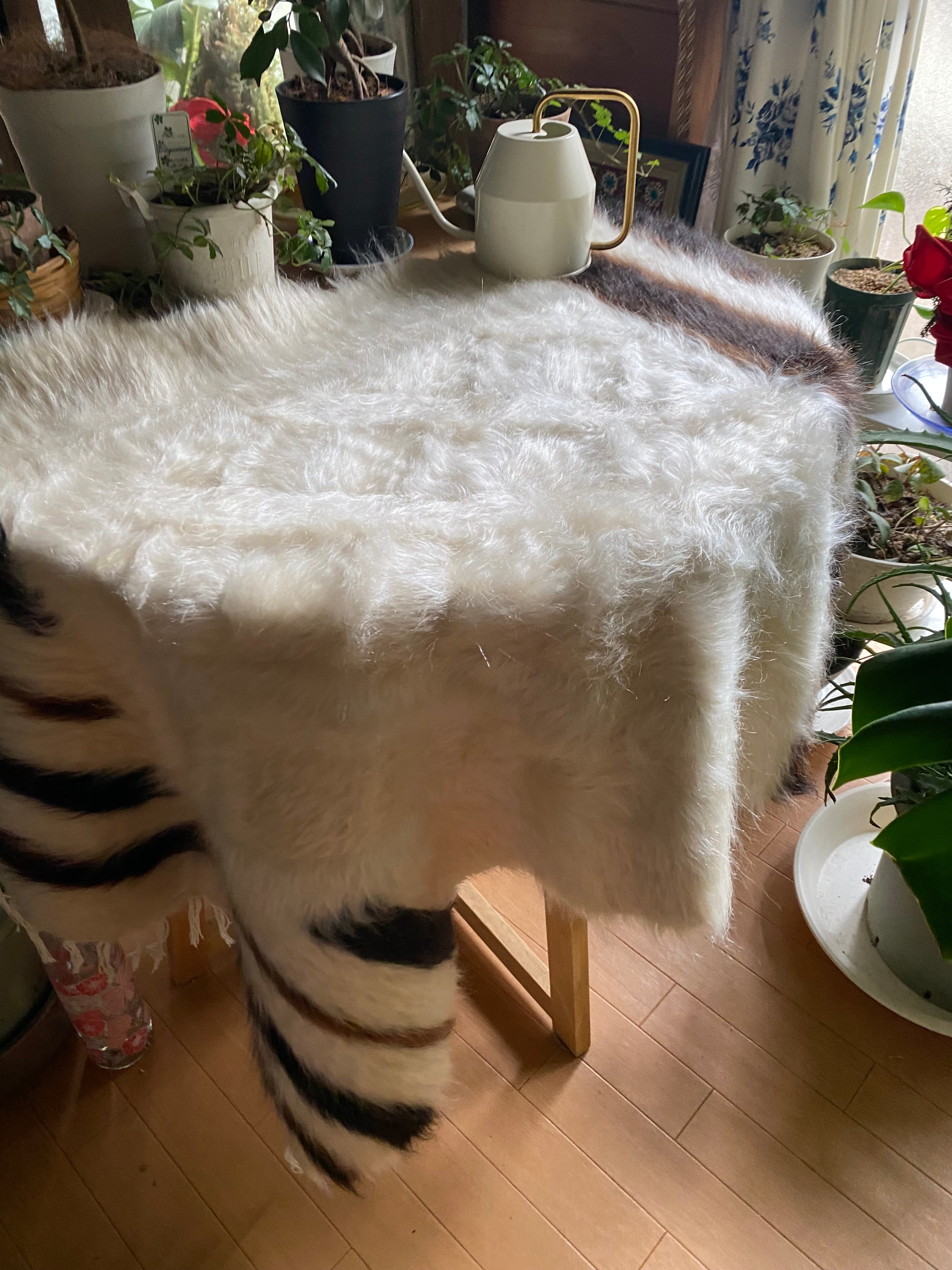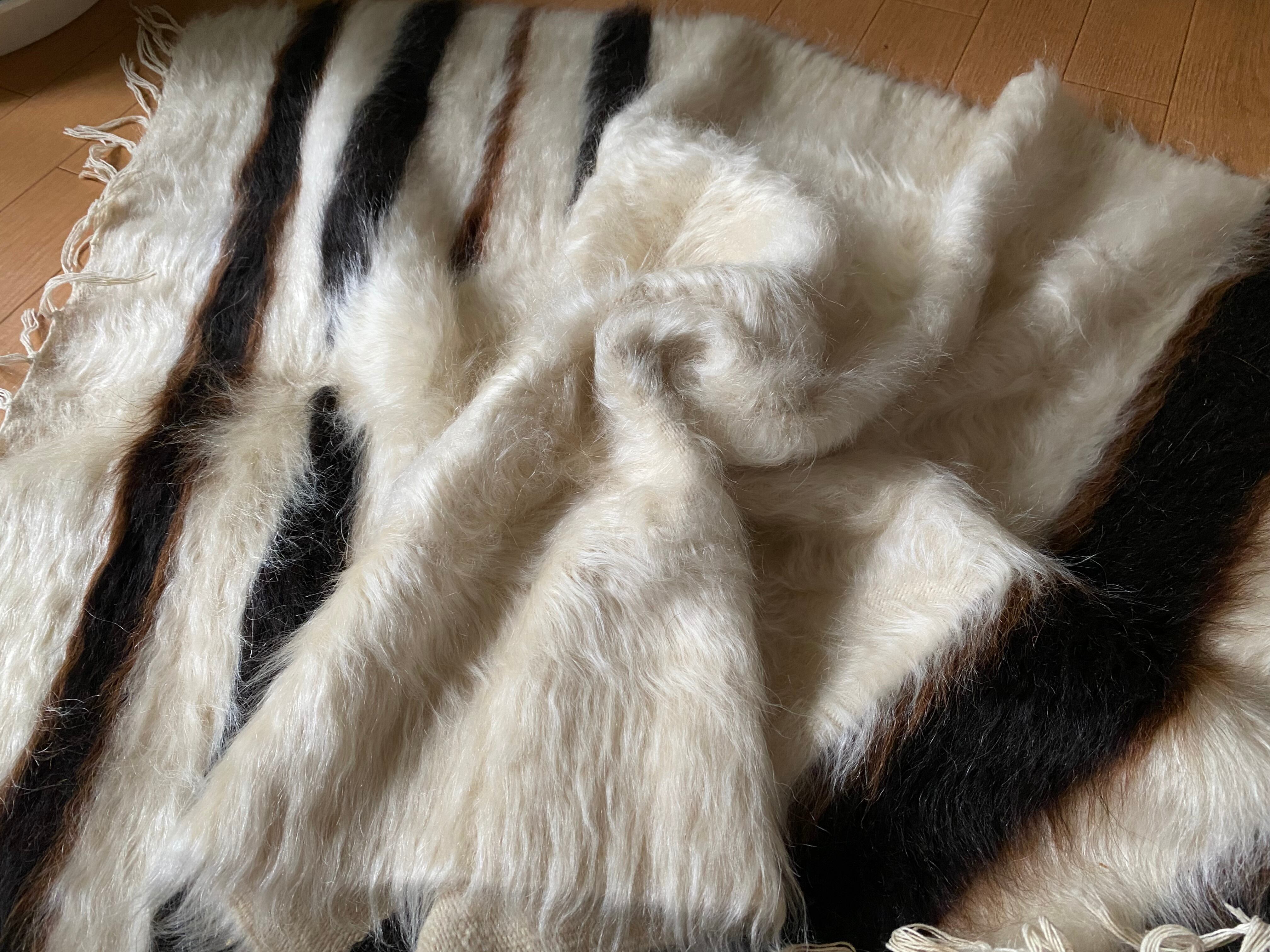 特にアンゴラ山羊からのモヘヤを使って織られているこのシイルトは大変価値も高いもので、艶もあり、素晴らしく温かいです。 自然のアンゴラヤギの毛で織られていますので、独特のくるくるとした感じも可愛く、とてもナチュ ラルな感じです。アンゴラ山羊は18世紀の中ごろまでオスマントルコが飼育を独占していたらしいです。