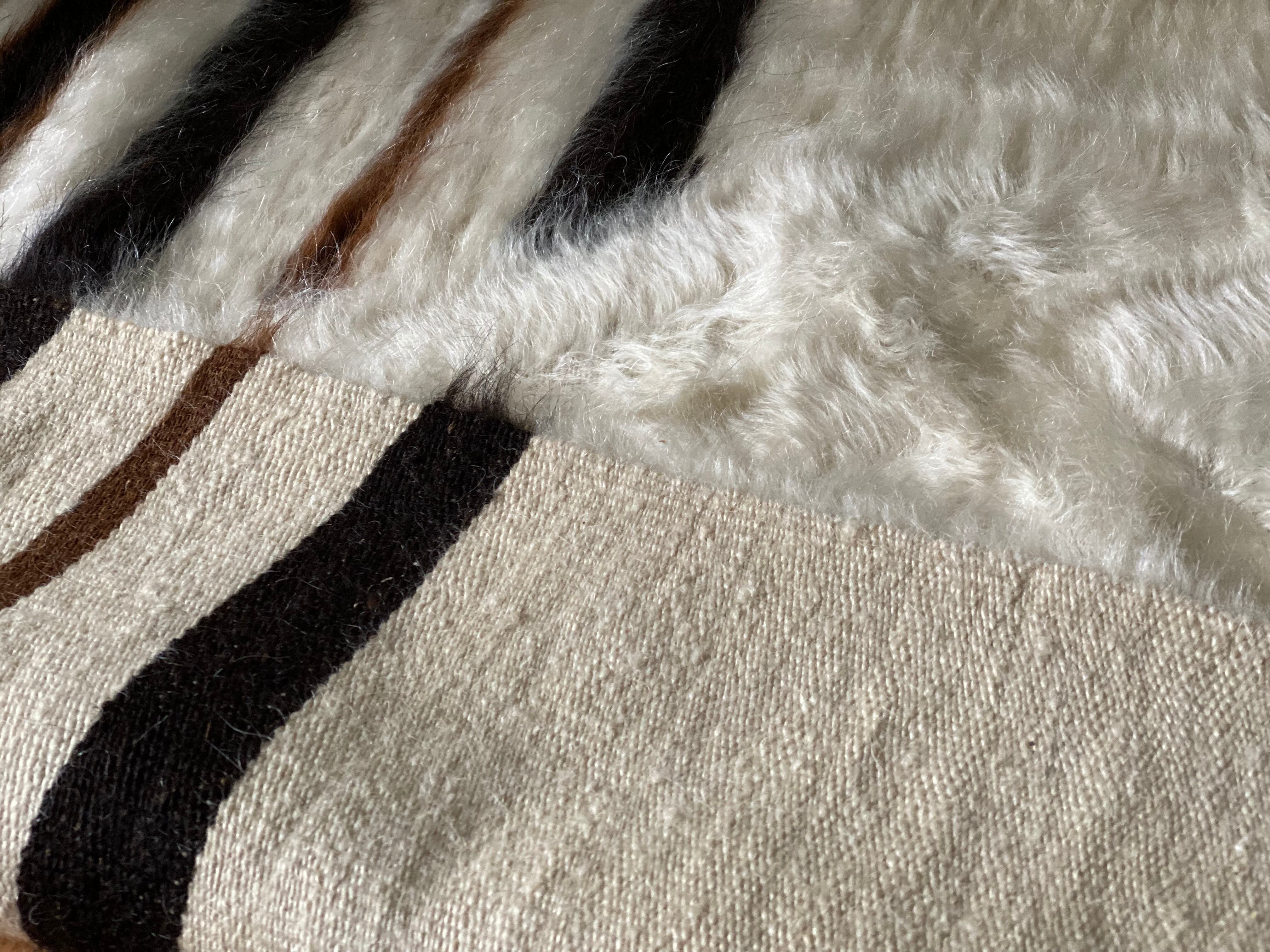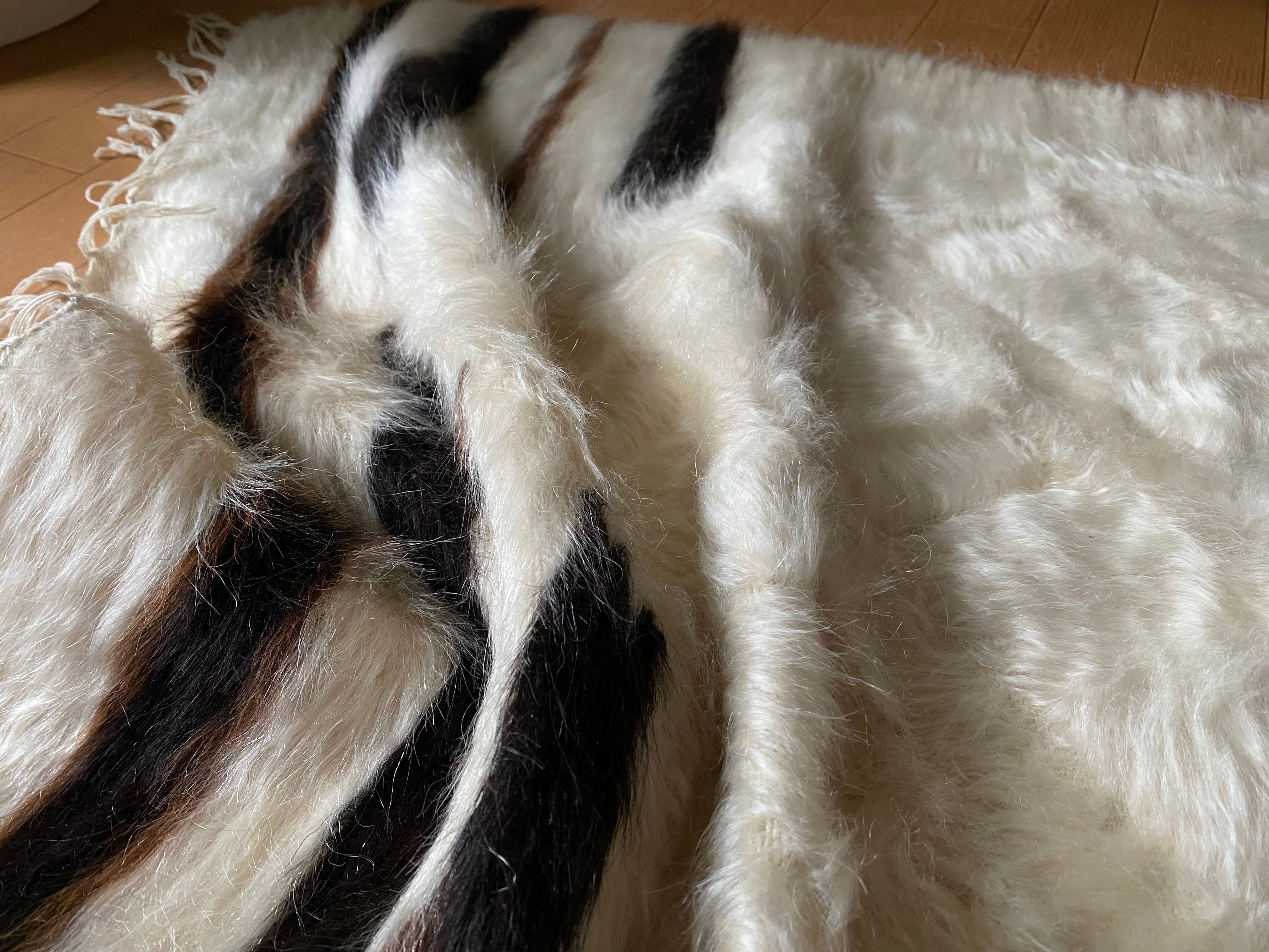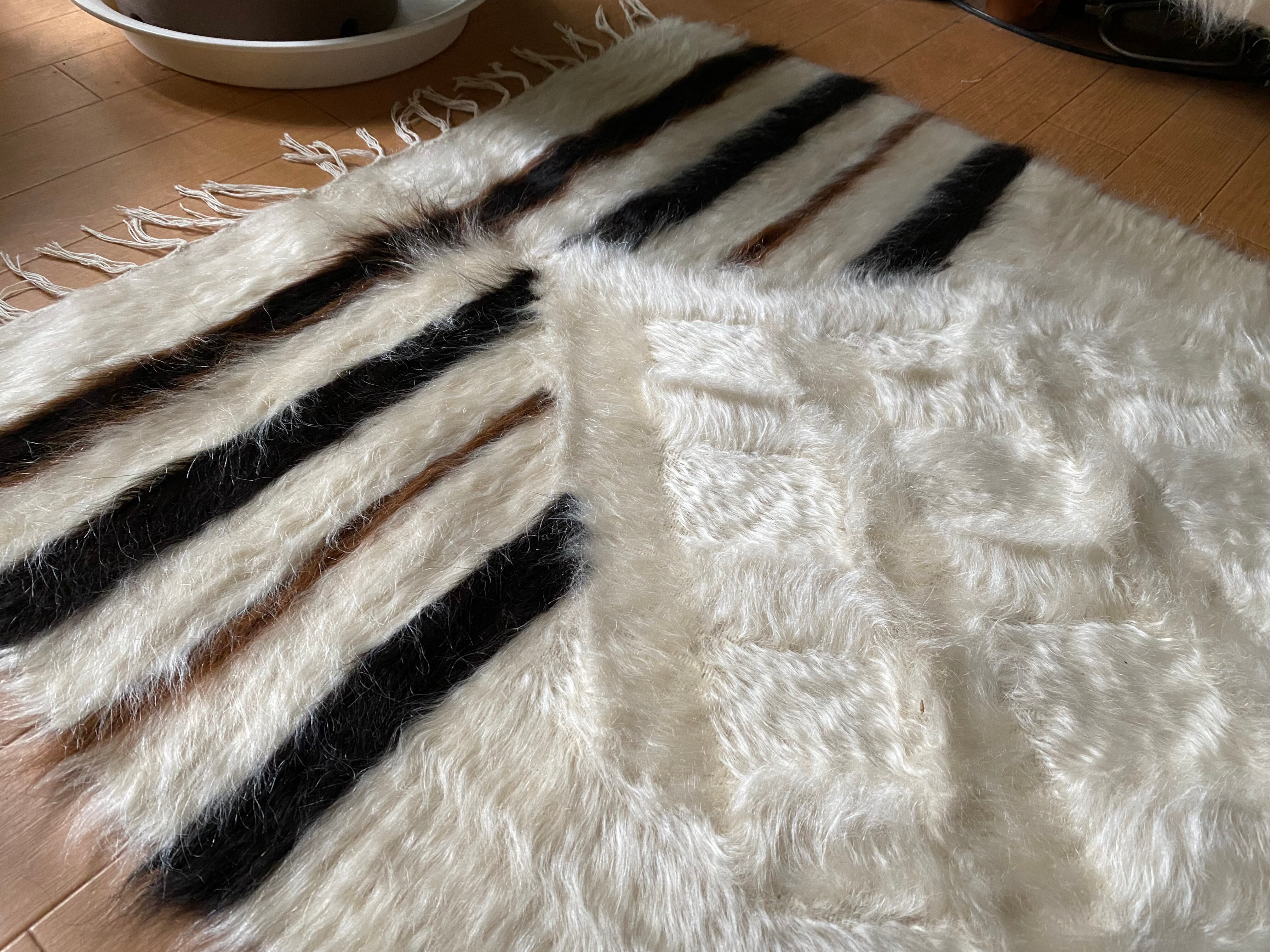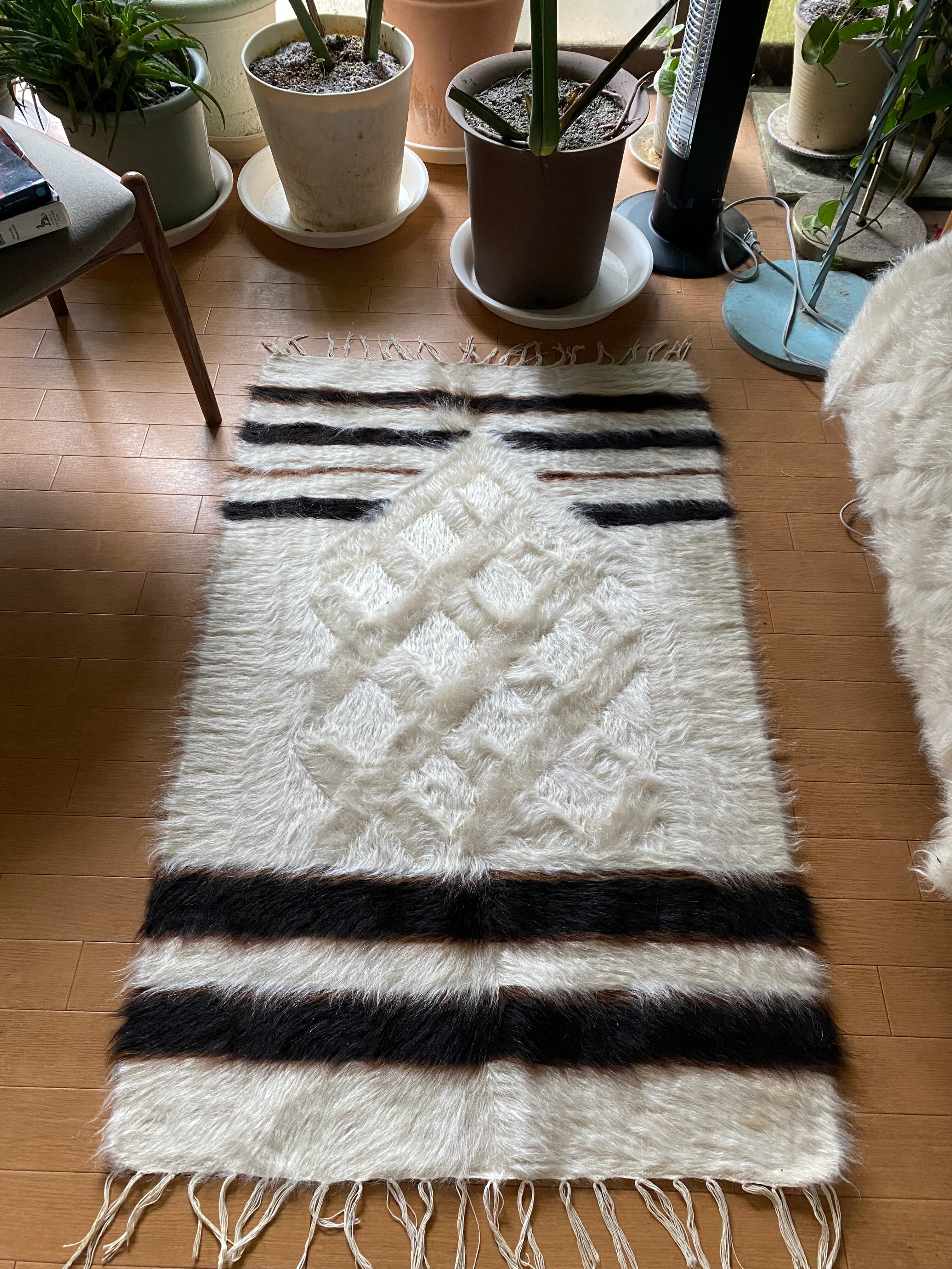 特にアンゴラ山羊からのモヘヤを使って織られているこのシイルトは大変価値も高いもので、艶もあり、素晴らしく温かいです。 自然のアンゴラヤギの毛で織られていますので、独特のくるくるとした感じも可愛く、とてもナチュ ラルな感じです。アンゴラ山羊は18世紀の中ごろまでオスマントルコが飼育を独占していたらしいです。