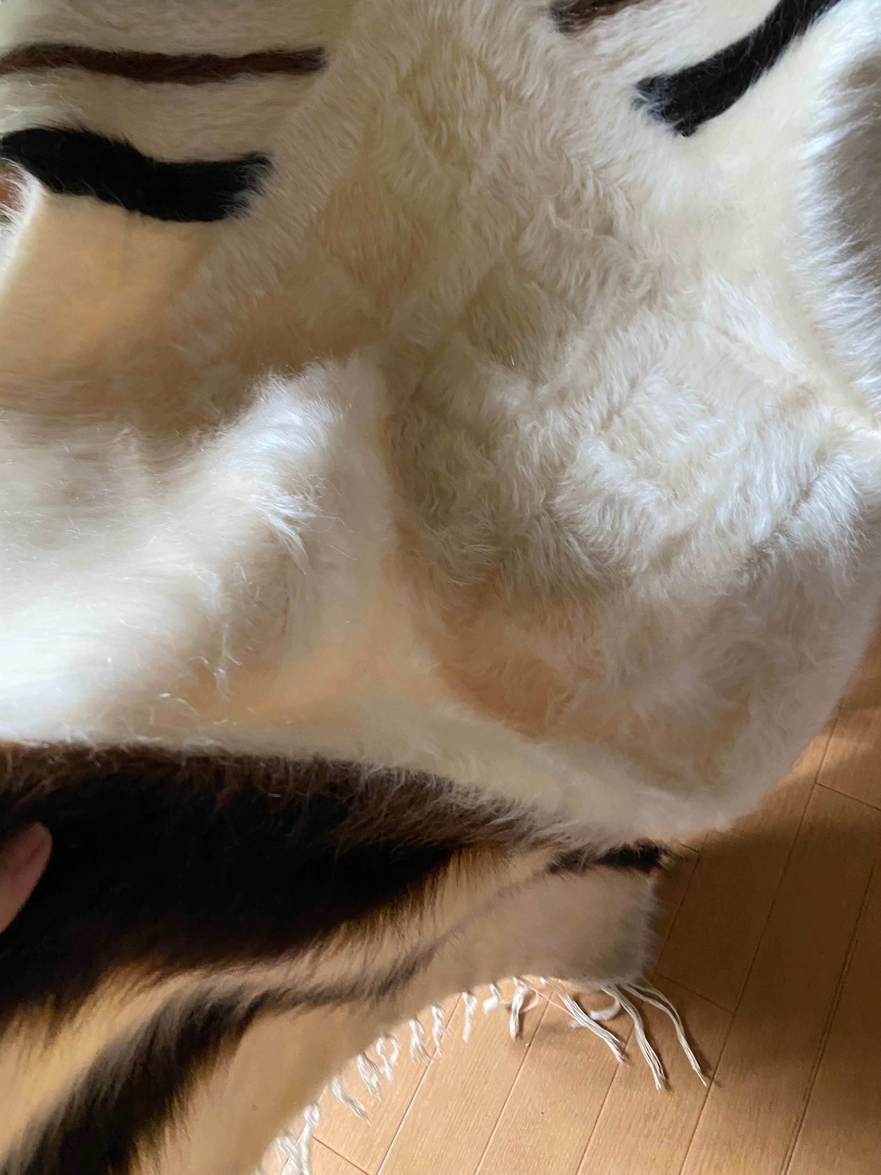 自然の山羊の毛を手で紡いだものが使われていますので、たまーにもみ殻がたまについていたり木の破片みたいなものが稀に織り込まれていることがありますので、ご了承ください。 できるだけ検品して取り除いていますが取り切れないこともありますのでご了承ください。