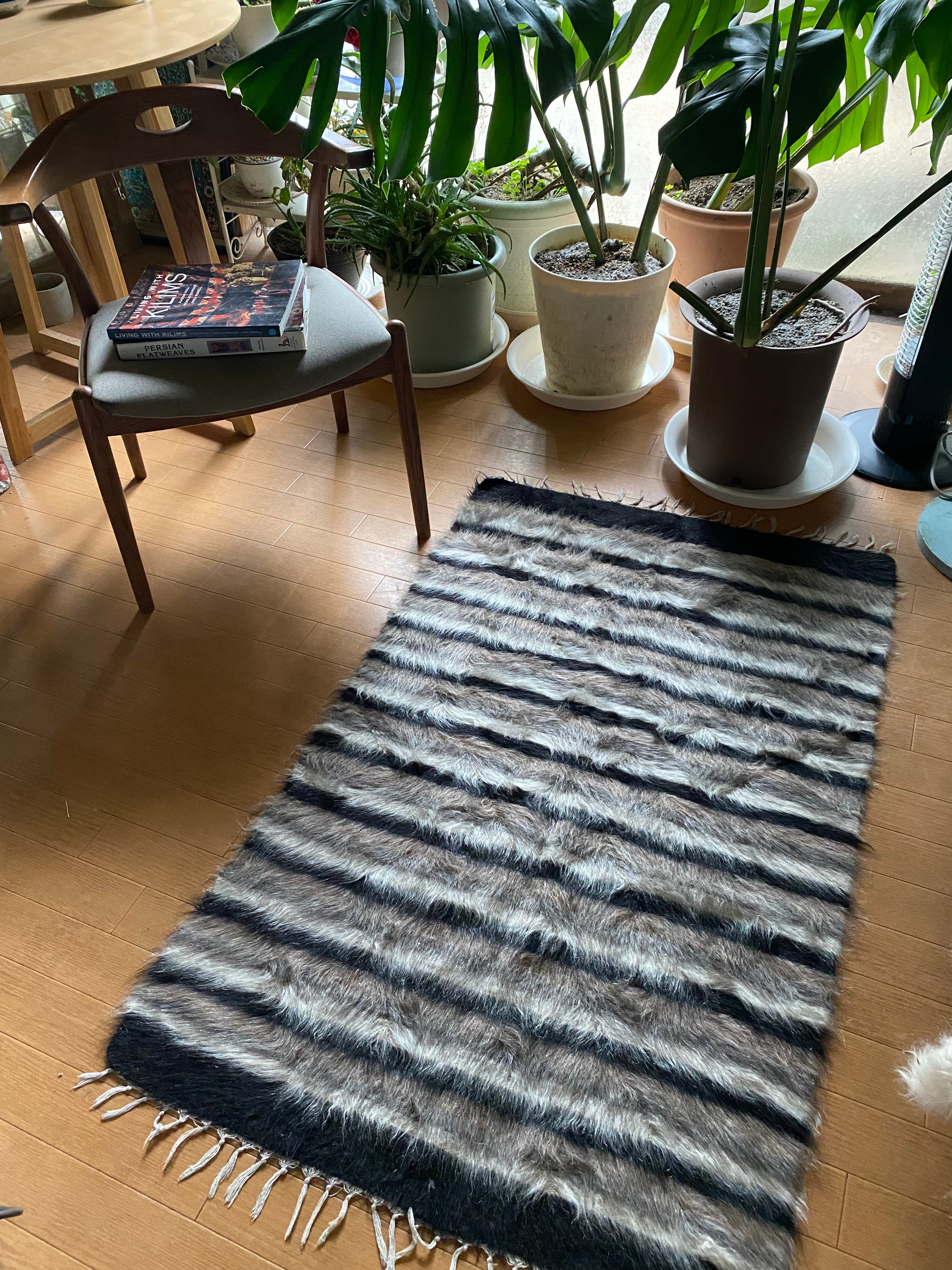 冬は毛がある面で、夏は裏面でキリムとしてお使いいただける優れものです。