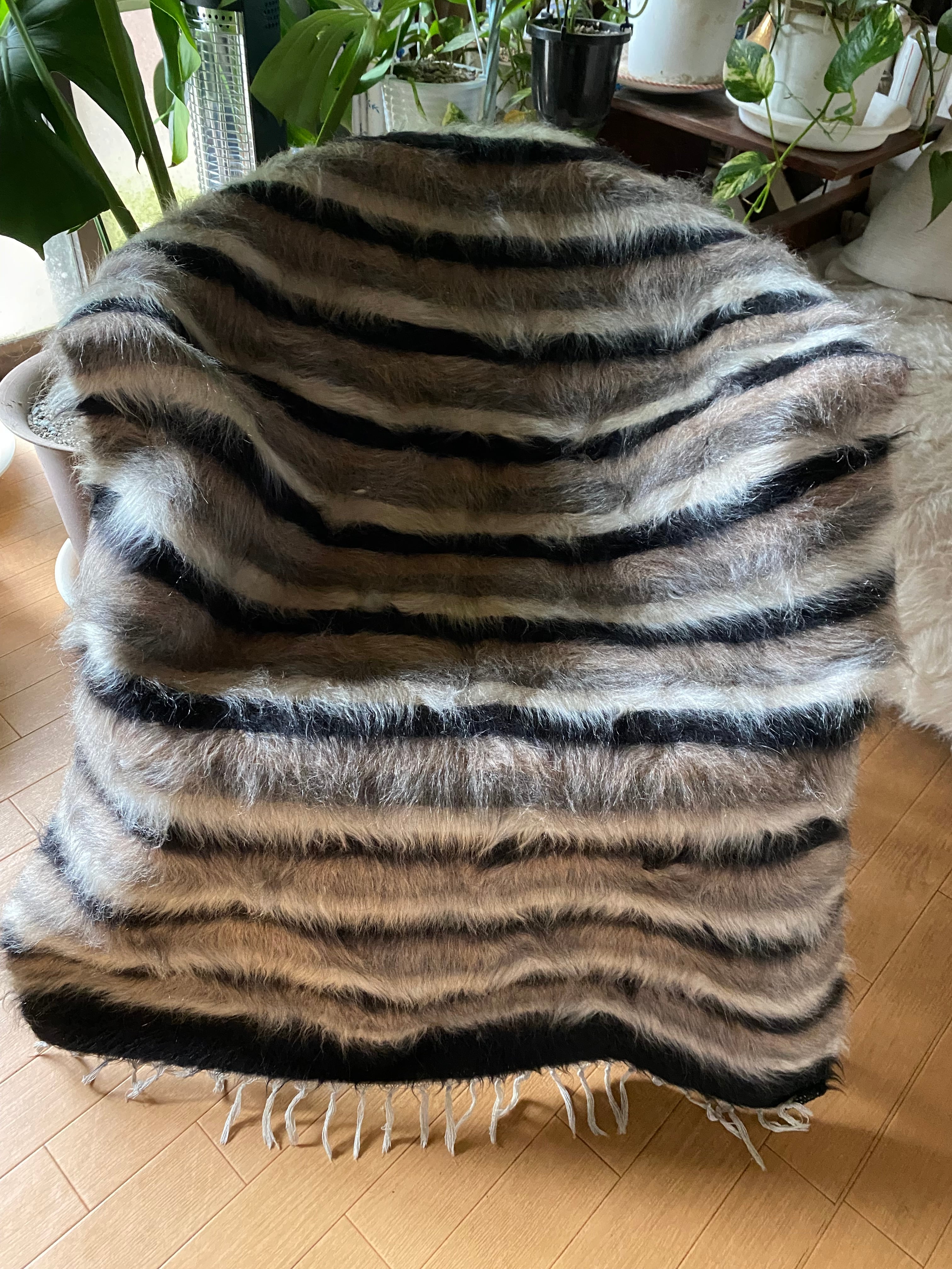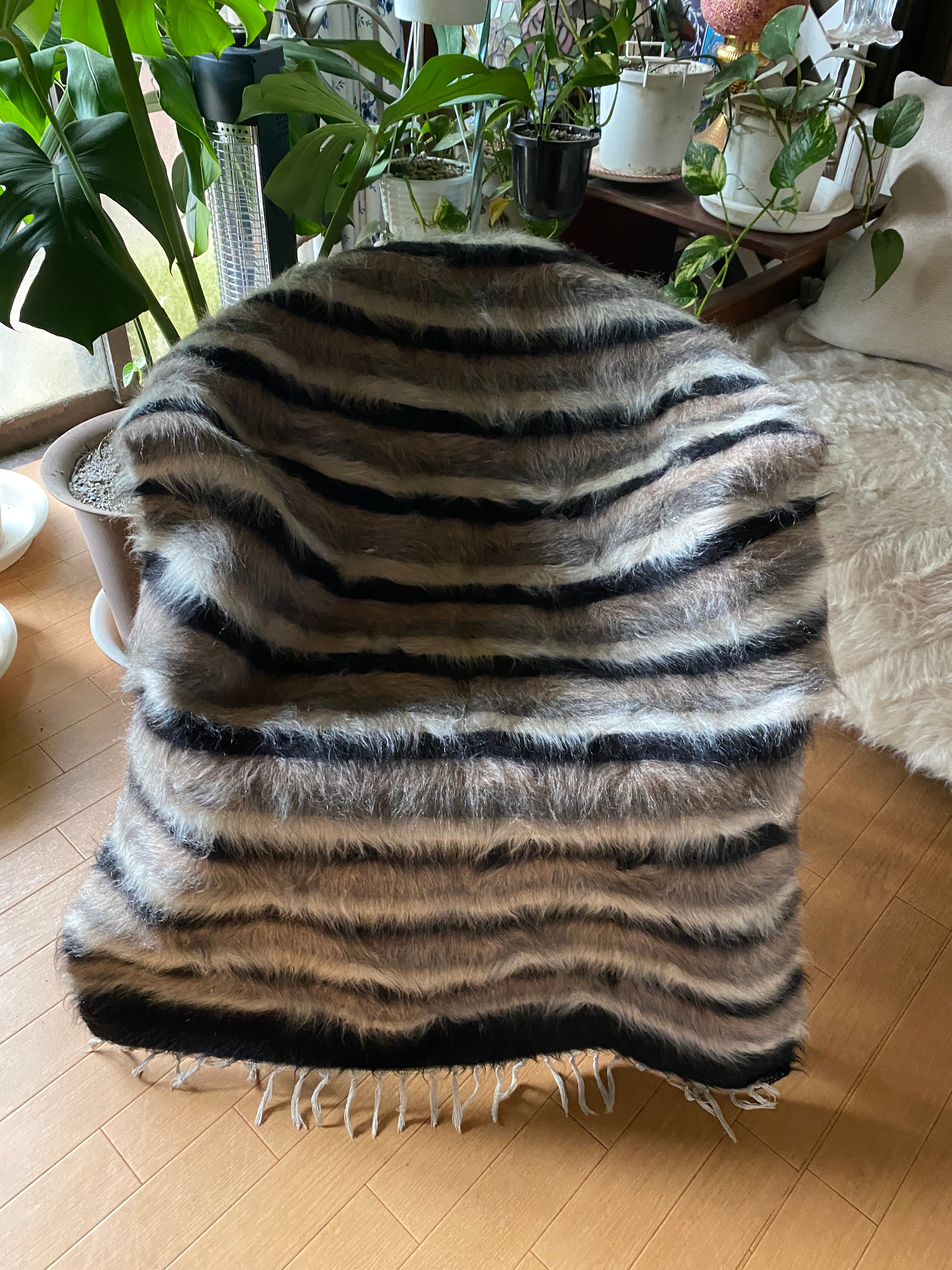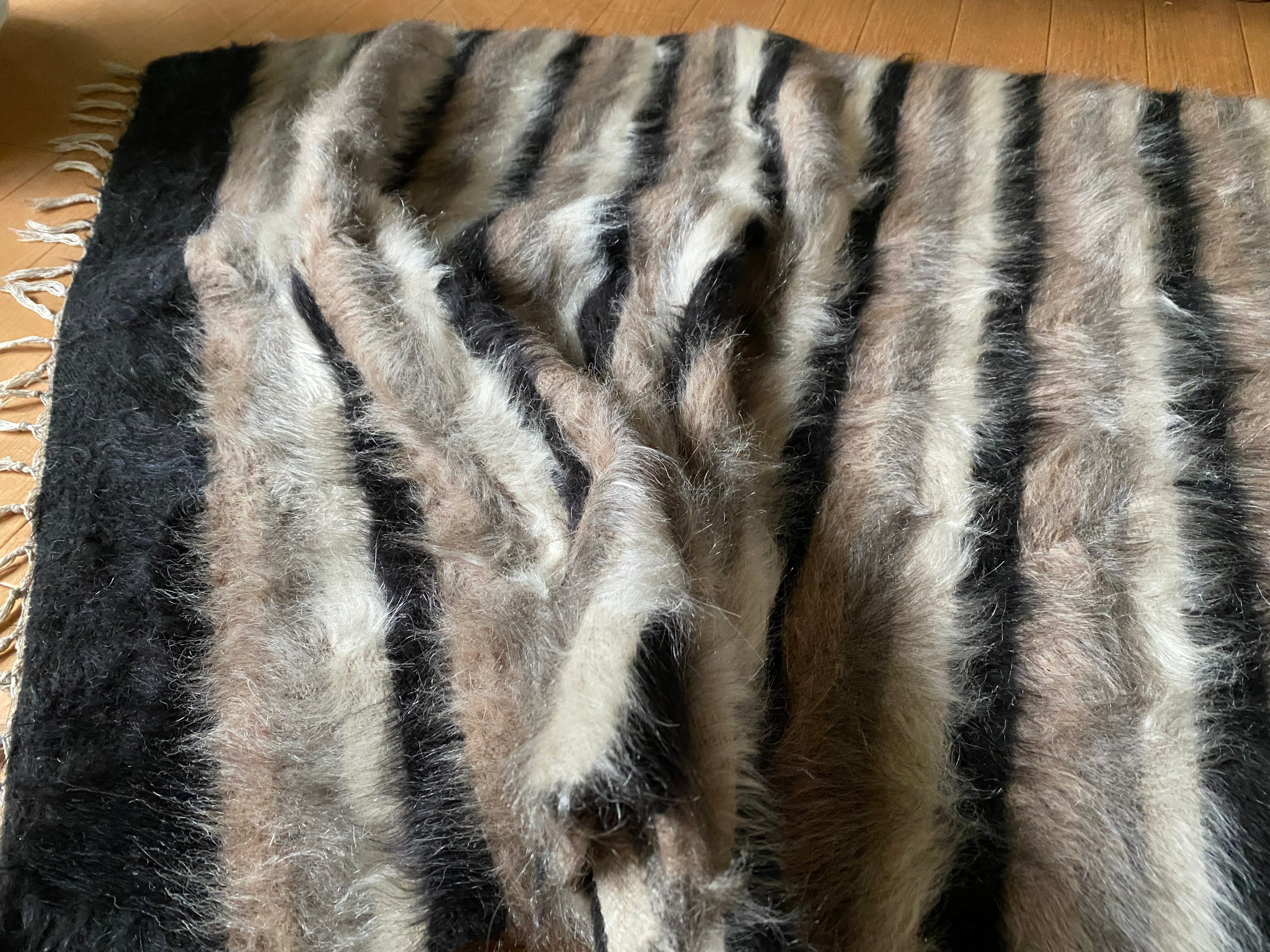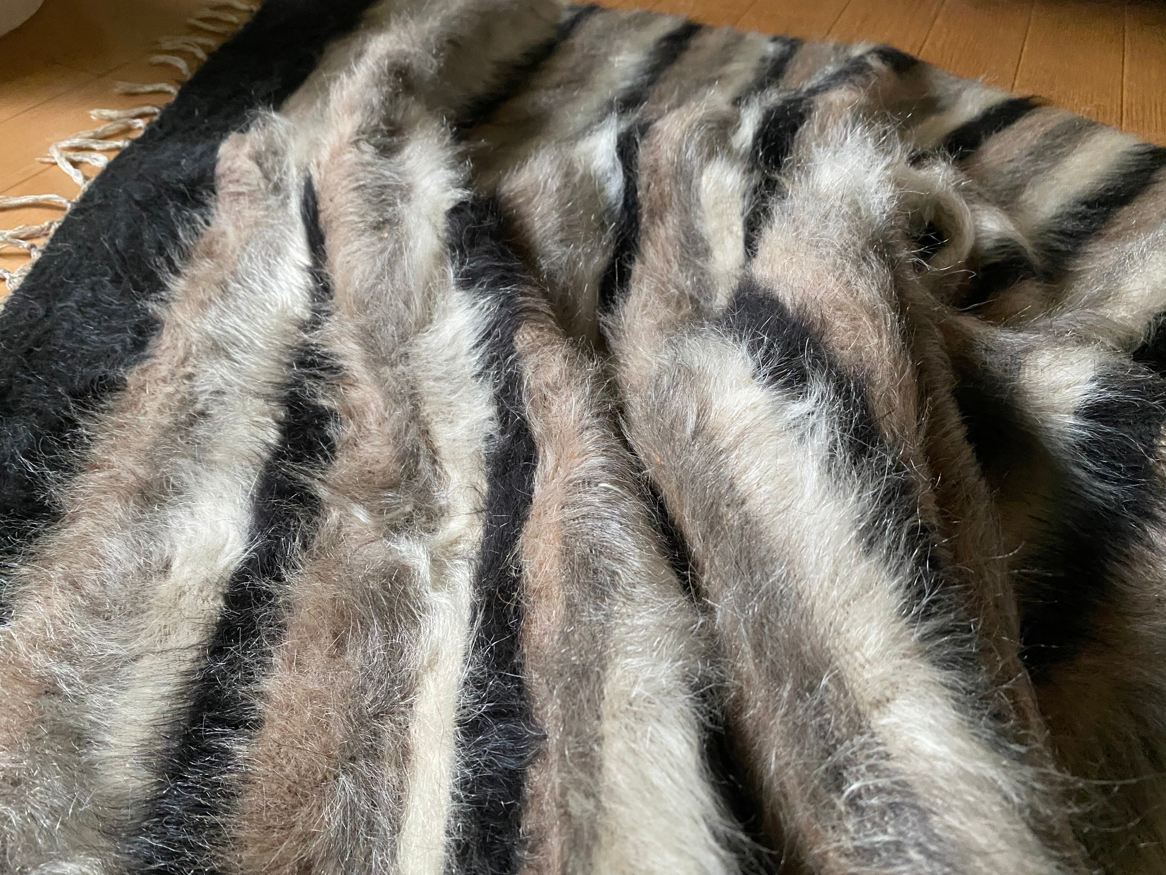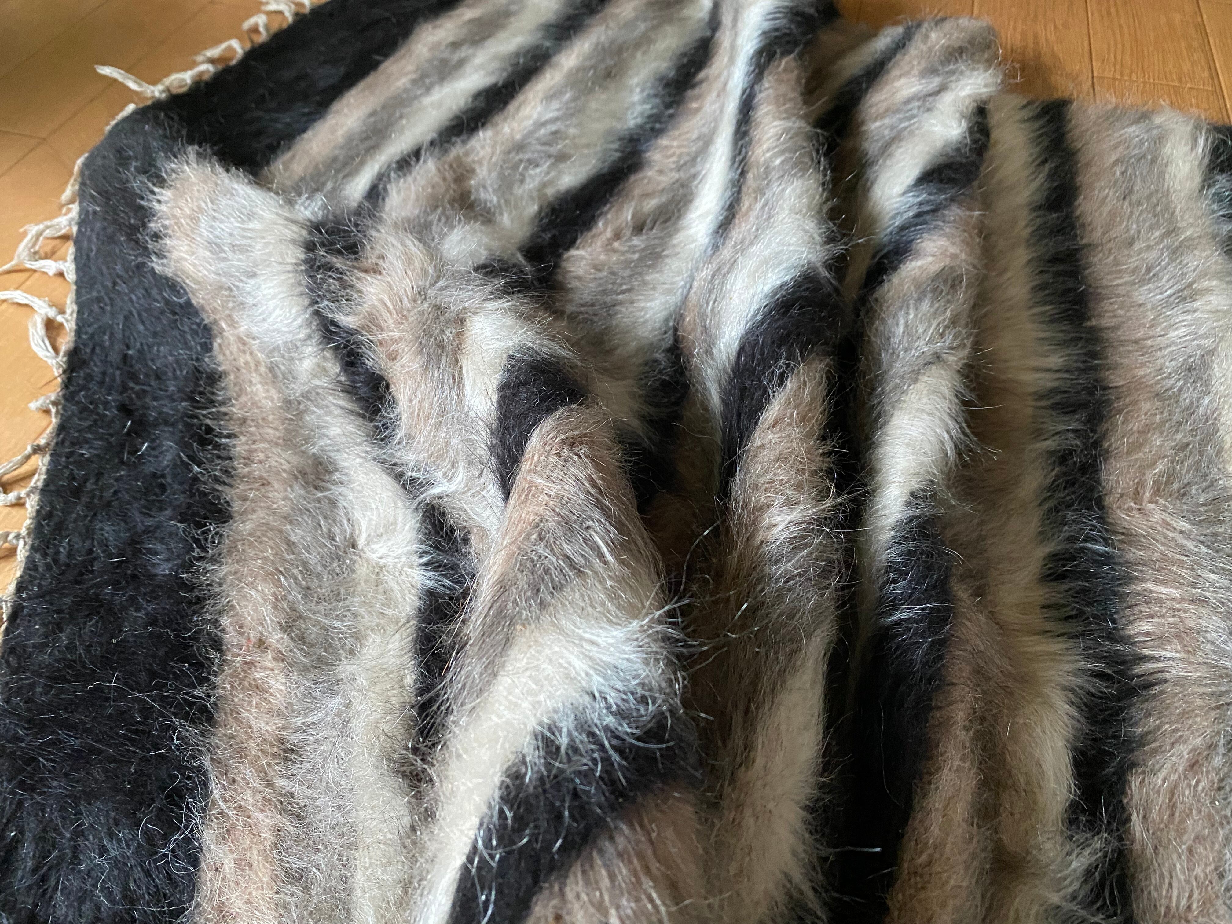 トルコのシイルトだけで織られるアンゴラヤギのモヘアの毛布シイルトバッタニイェ!黒、薄い紫、グレー、白4色楽しめる 初めてご紹介の色柄!唯一無二のシイルトバッタニイを如何でしょうか?お洒落な世界に1枚のヴィンテージシイルトバッタニイェ!インテリアだけでなく車にも