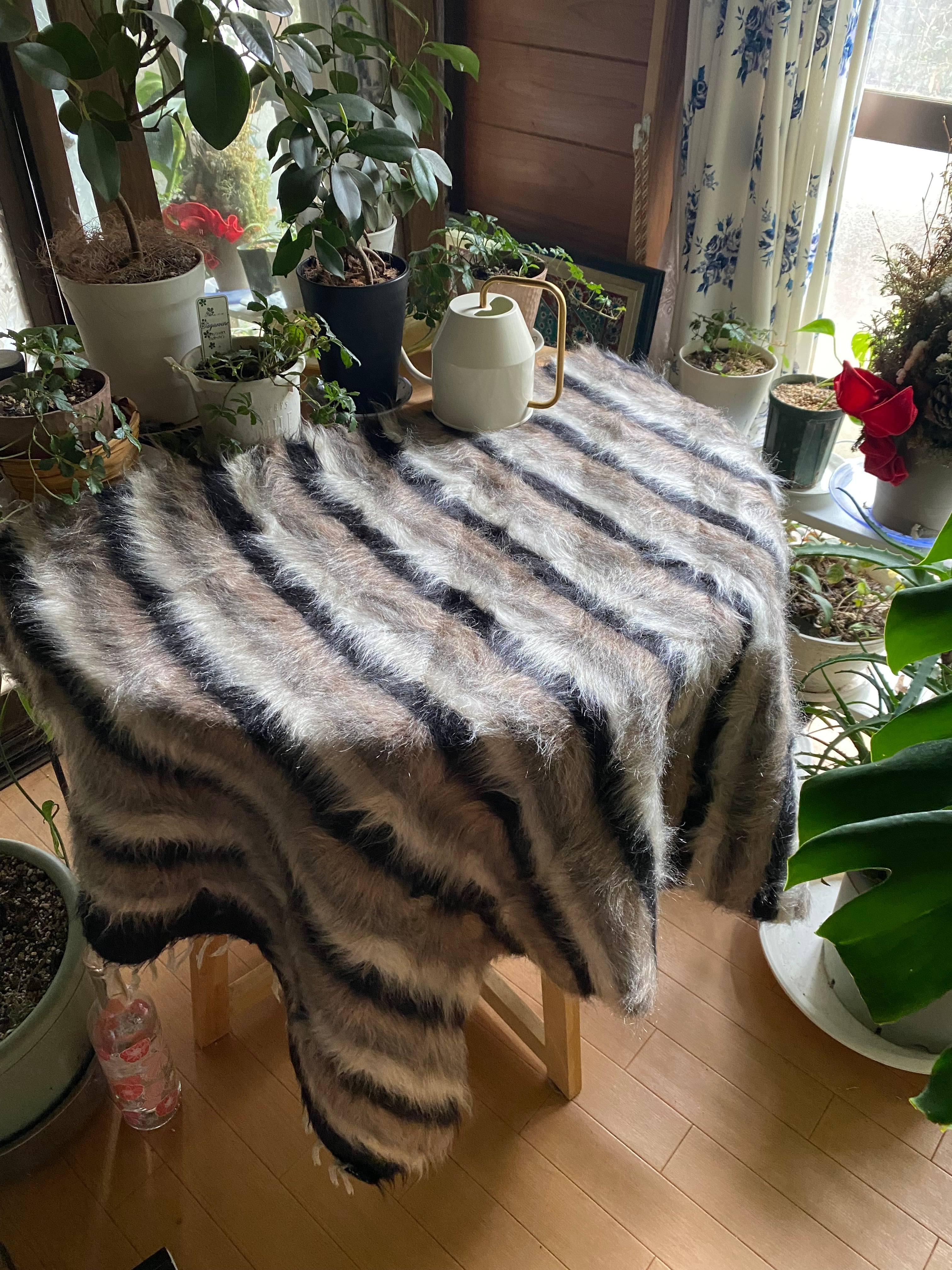 特にアンゴラ山羊からのモヘヤを使って織られているこのシイルトは大変価値も高いもので、艶もあり、素晴らしく温かいです。 自然のアンゴラヤギの毛で織られていますので、独特のくるくるとした感じも可愛く、とてもナチュ ラルな感じです。アンゴラ山羊は18世紀の中ごろまでオスマントルコが飼育を独占していたらしいです。