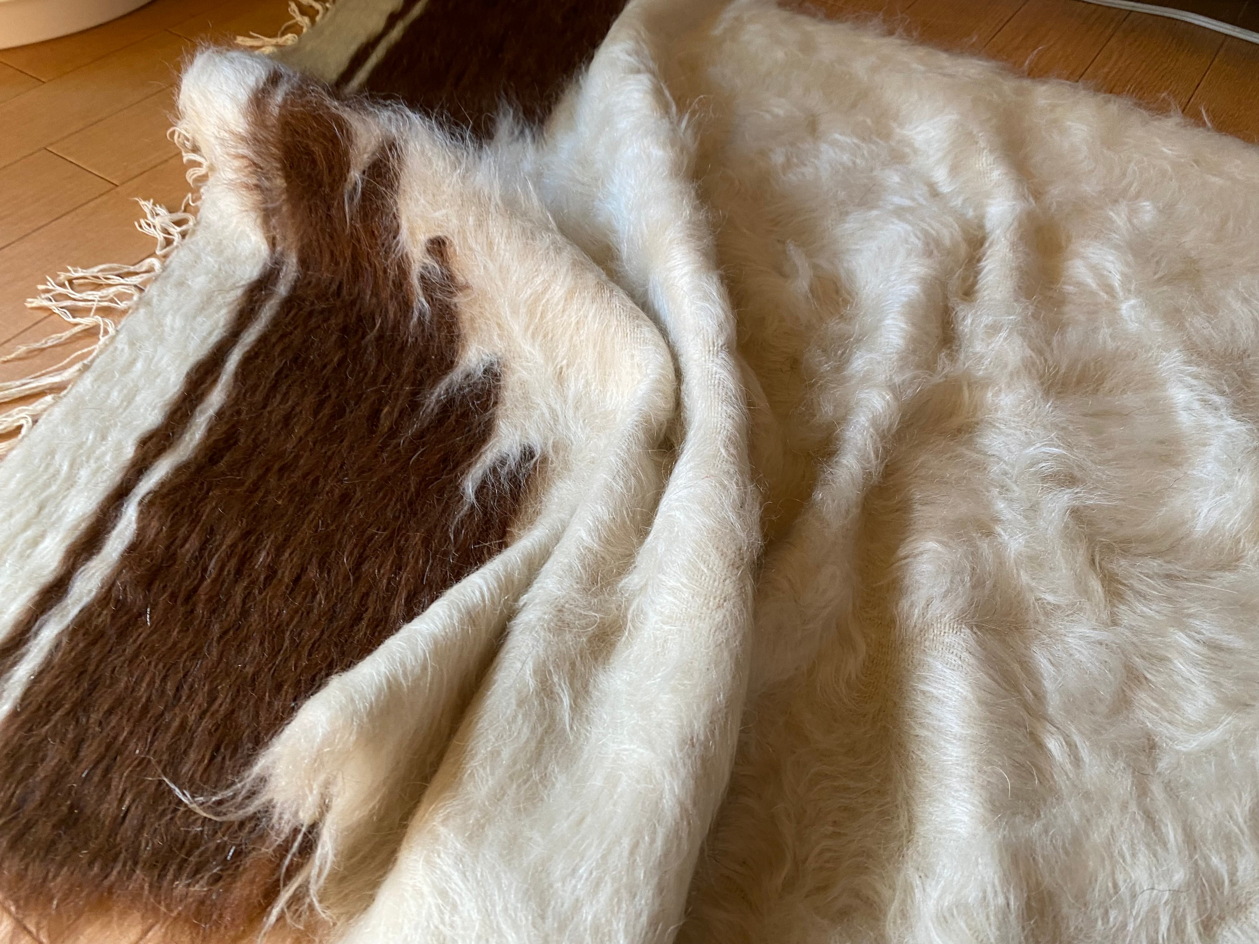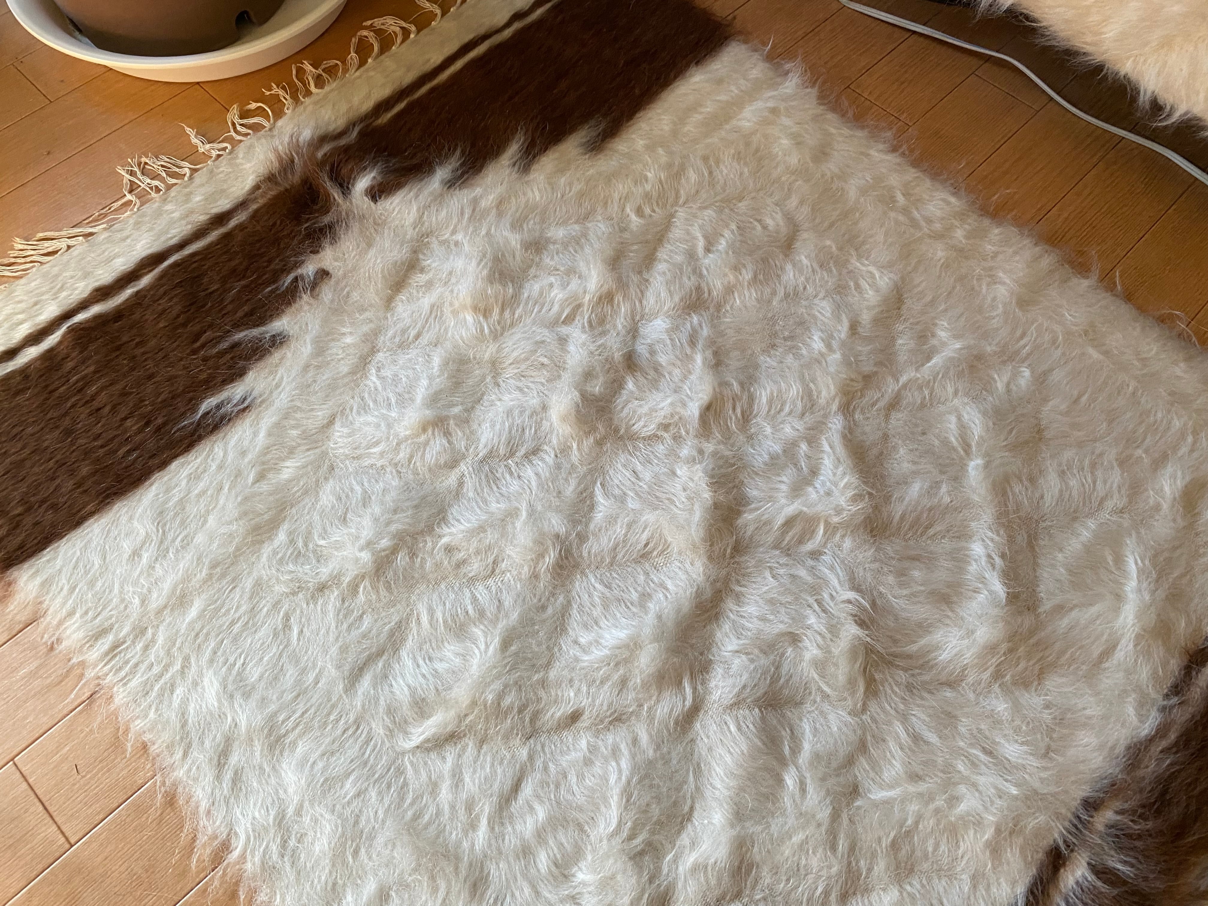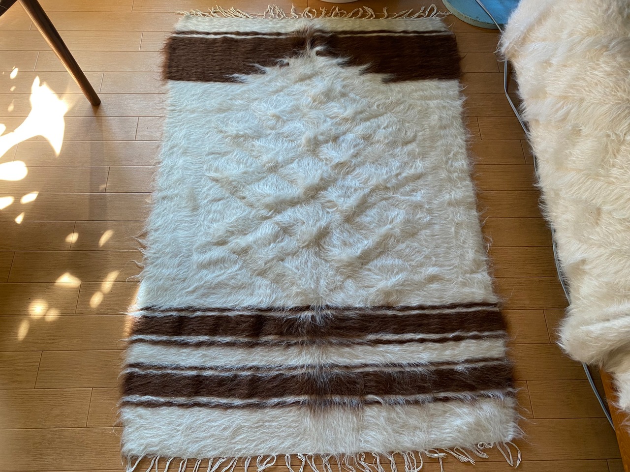 特にアンゴラ山羊からのモヘヤを使って織られているこのシイルトは大変価値も高いもので、艶もあり、素晴らしく温かいです。 自然のアンゴラヤギの毛で織られていますので、独特のくるくるとした感じも可愛く、とてもナチュ ラルな感じです。アンゴラ山羊は18世紀の中ごろまでオスマントルコが飼育を独占していたらしいです。