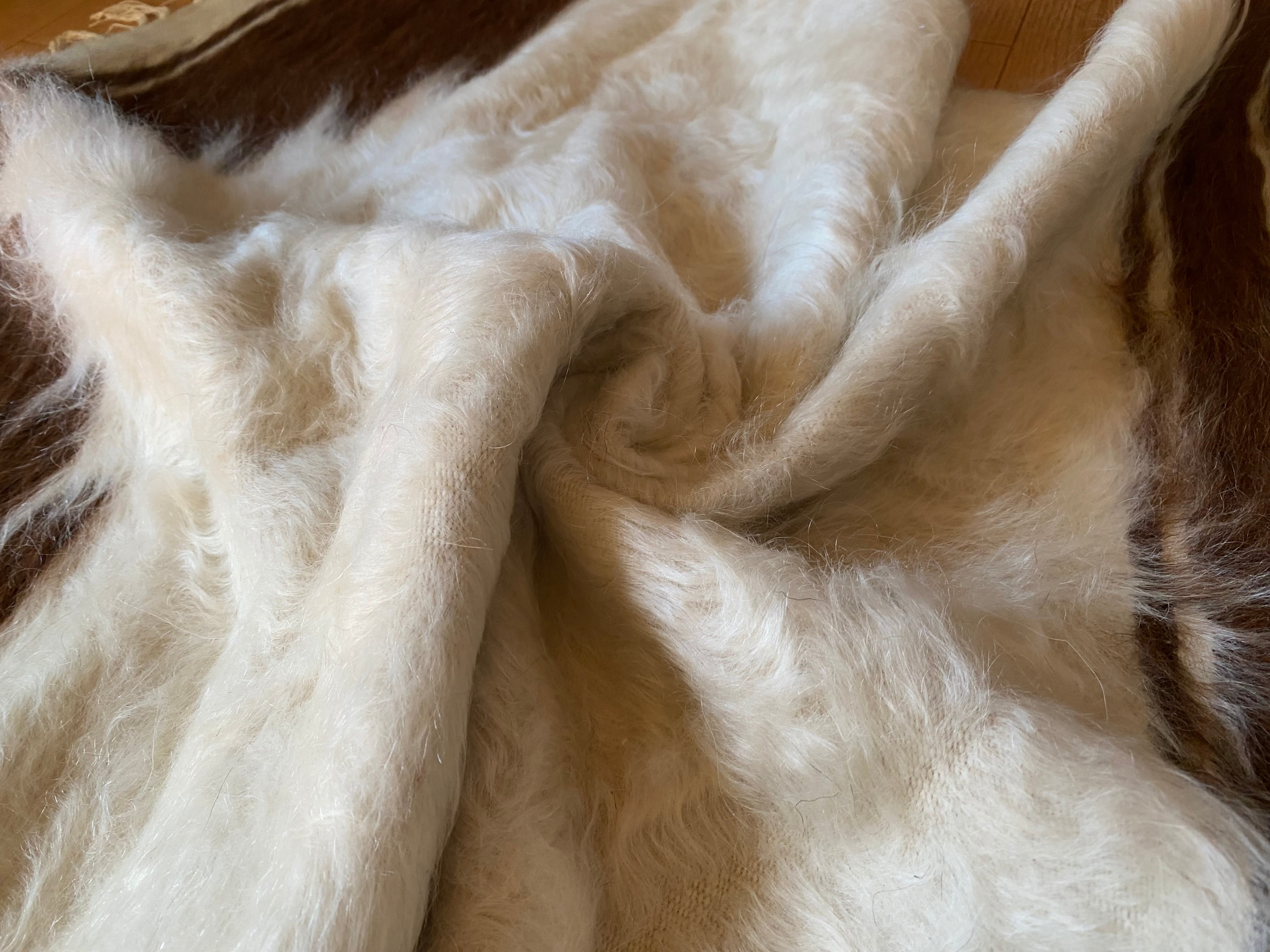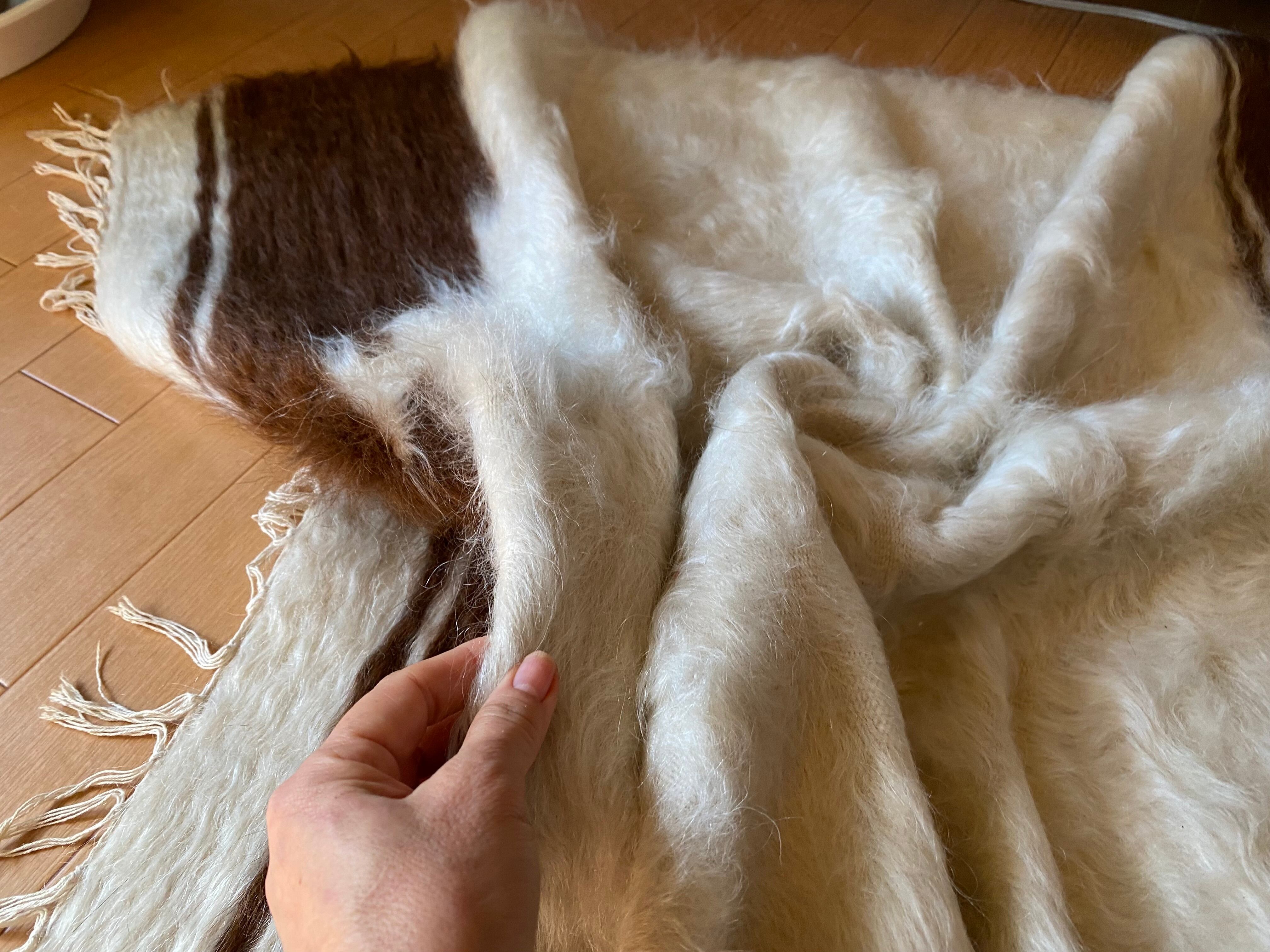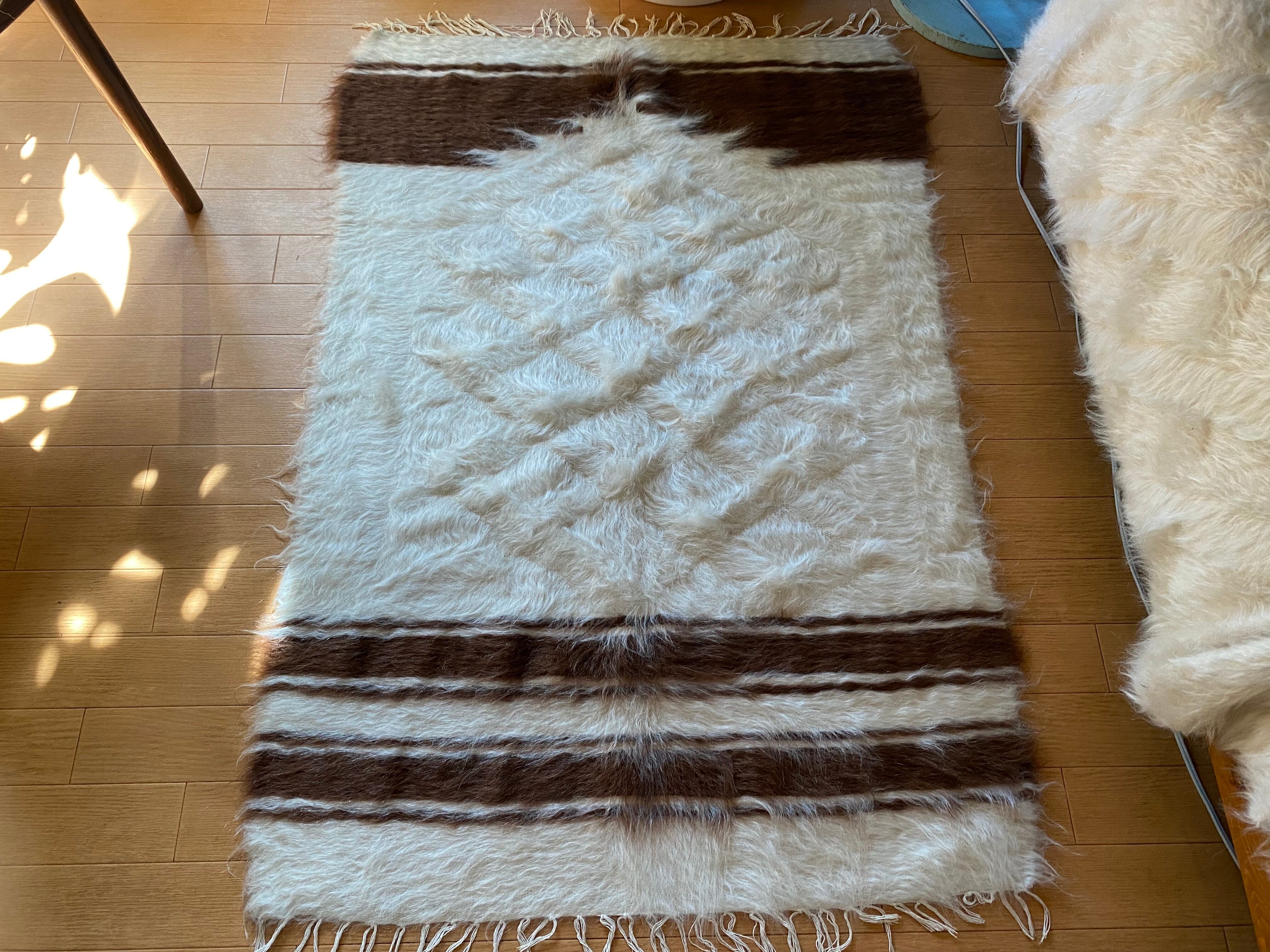 特にアンゴラ山羊からのモヘヤを使って織られているこのシイルトは大変価値も高いもので、艶もあり、素晴らしく温かいです。 自然のアンゴラヤギの毛で織られていますので、独特のくるくるとした感じも可愛く、とてもナチュ ラルな感じです。アンゴラ山羊は18世紀の中ごろまでオスマントルコが飼育を独占していたらしいです。