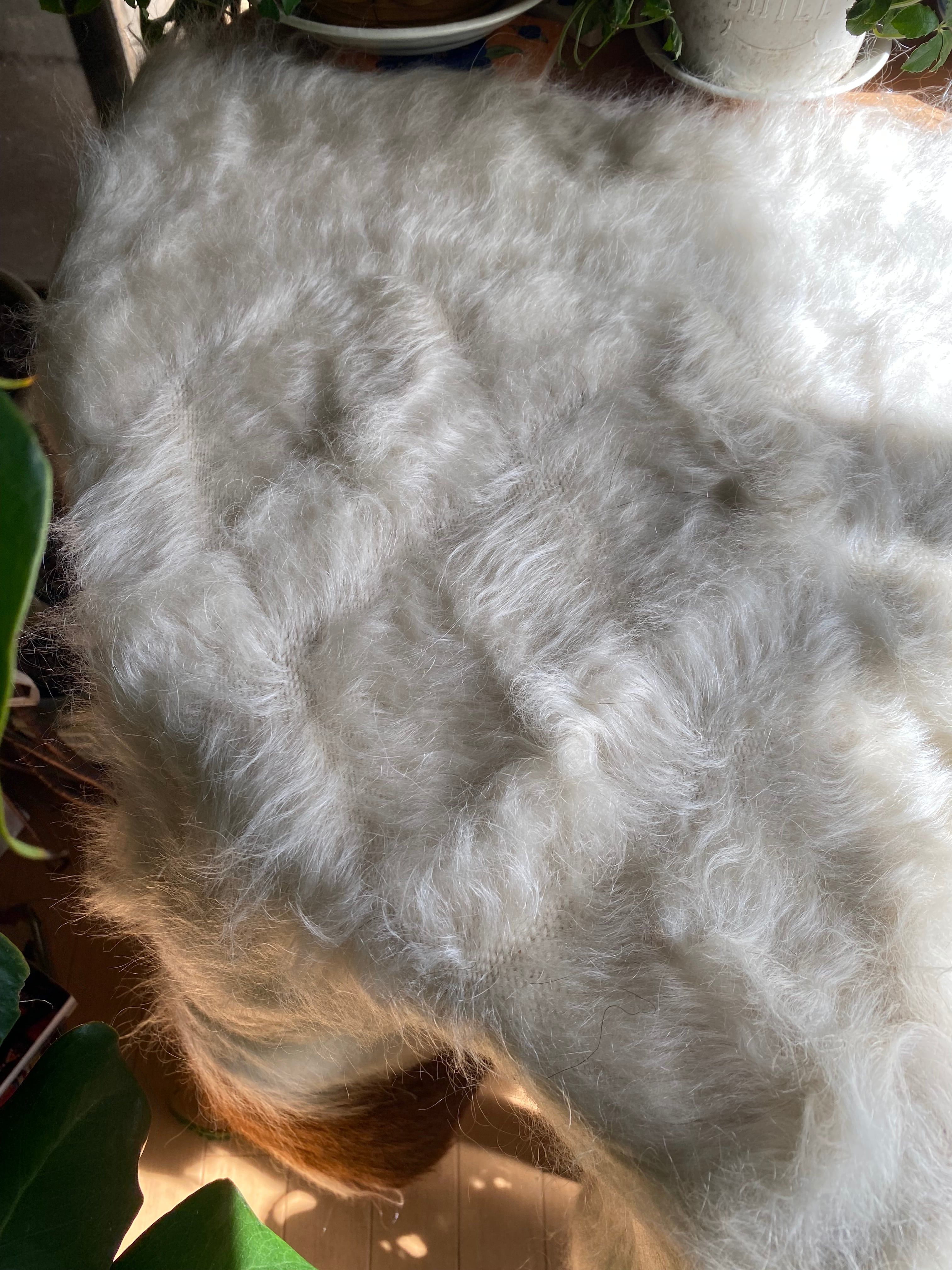 貴重な古い時代の極上のアンゴラヤギのモヘアを使ったモフモフのシイルトバッタニイェになります。