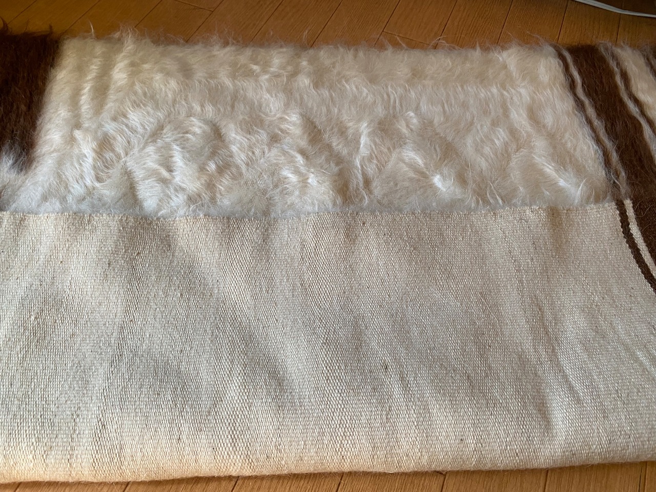 遊牧民によって動物の毛を紡いで織られているため、特に山羊の毛は多少ちくちく感はございます。